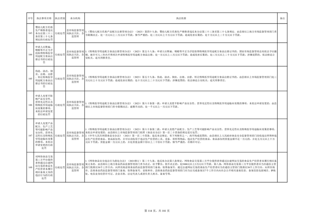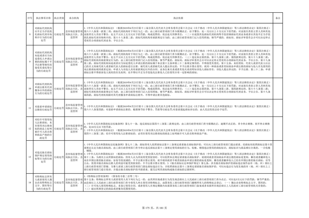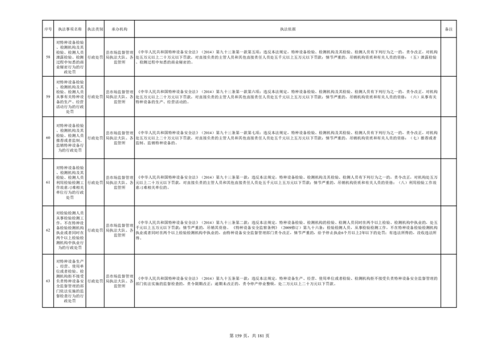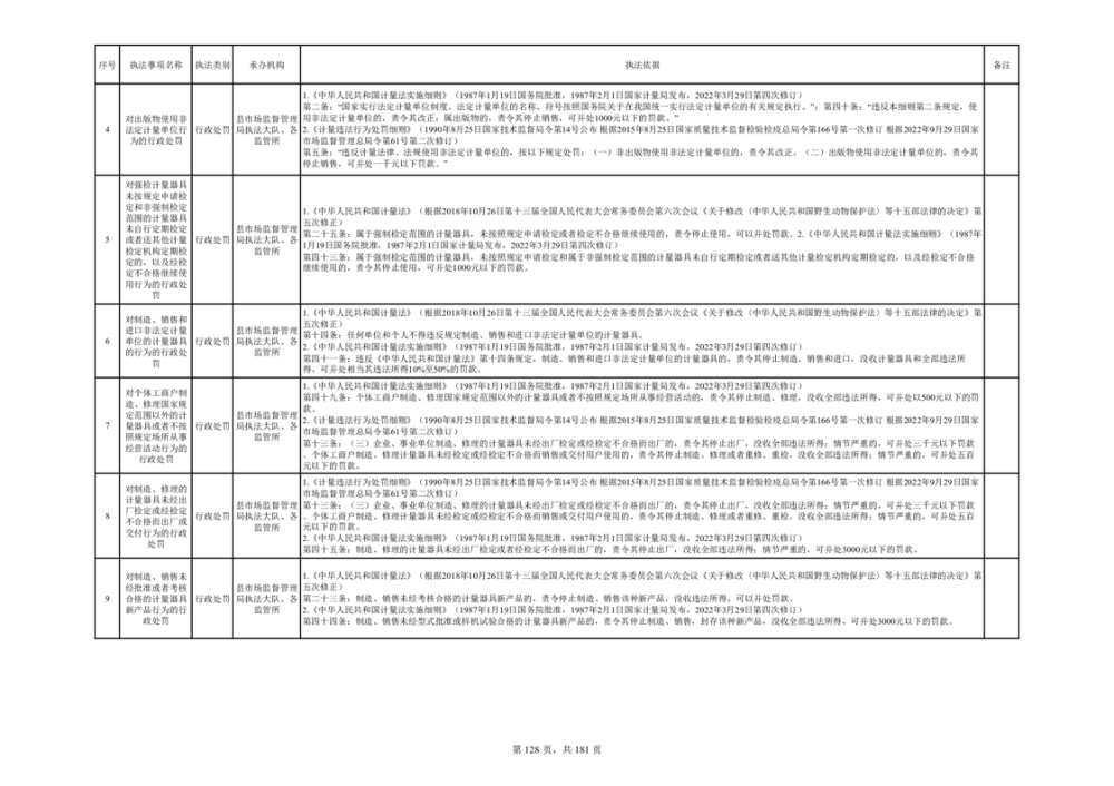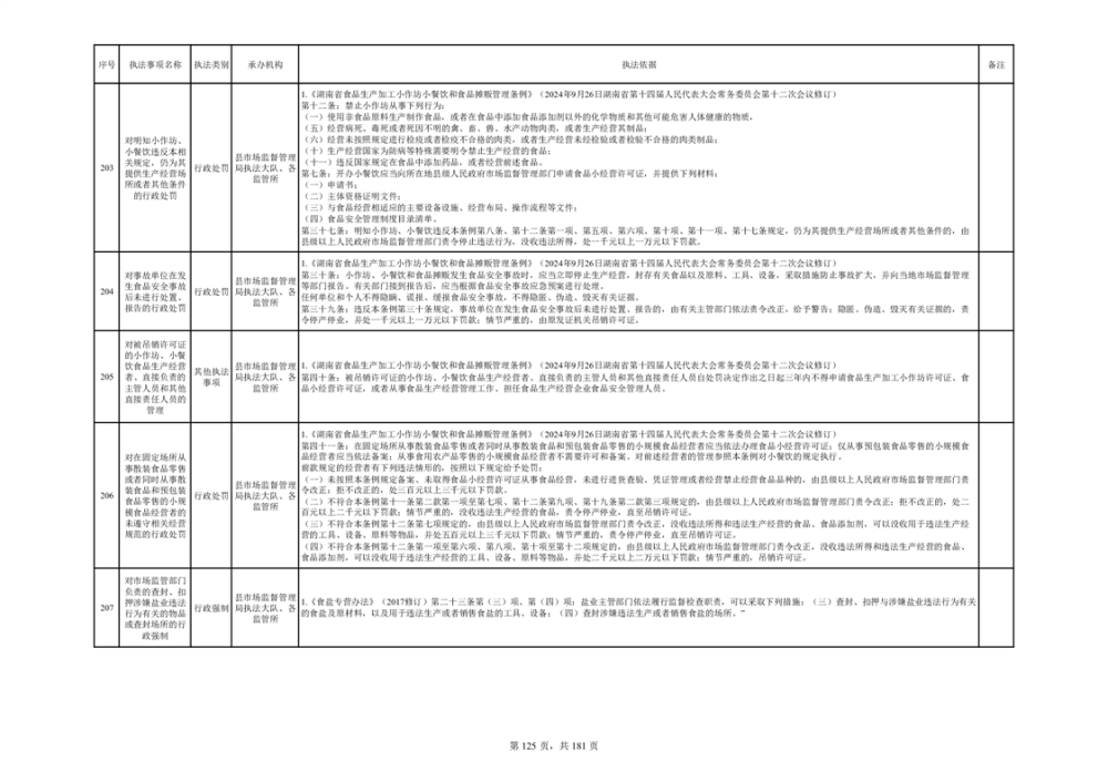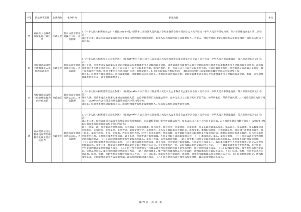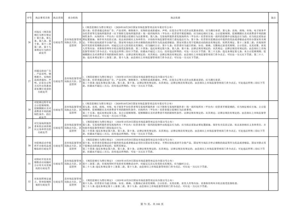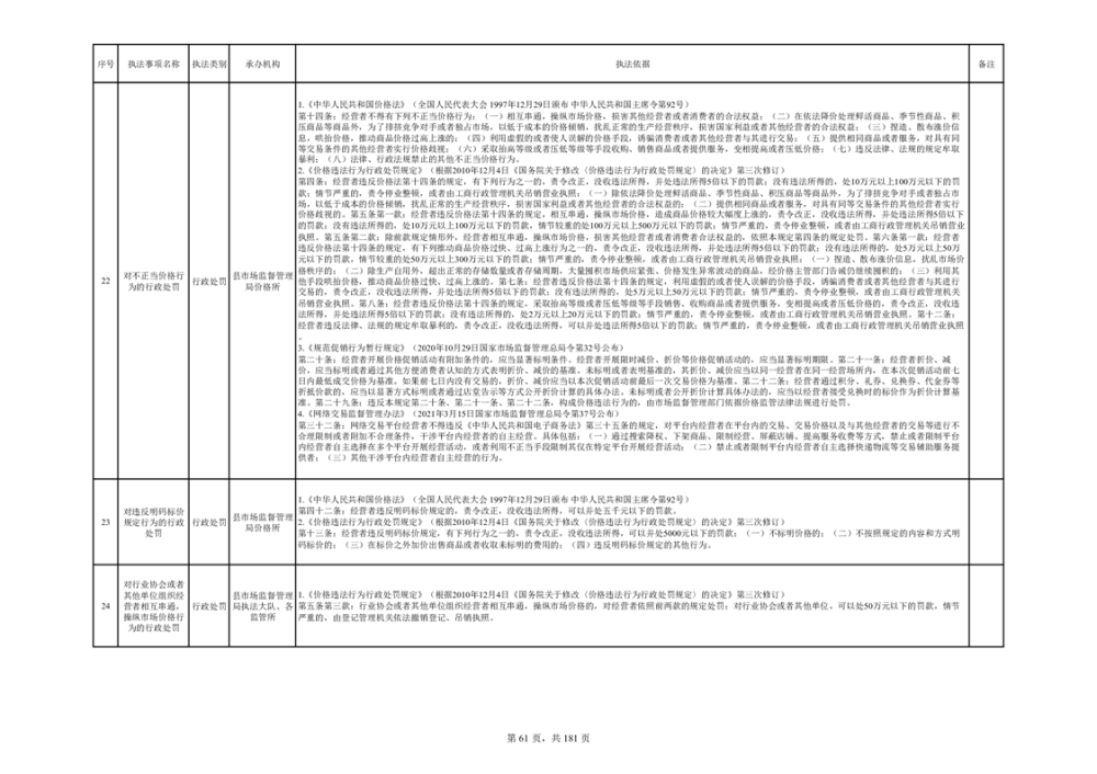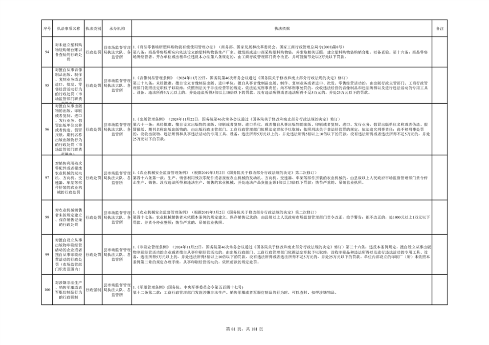 湘阴县市场监督管理局行政执法事项目录