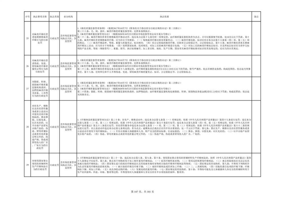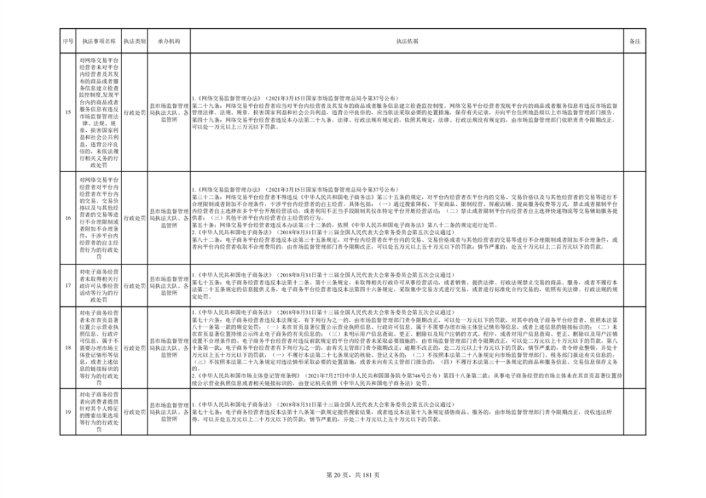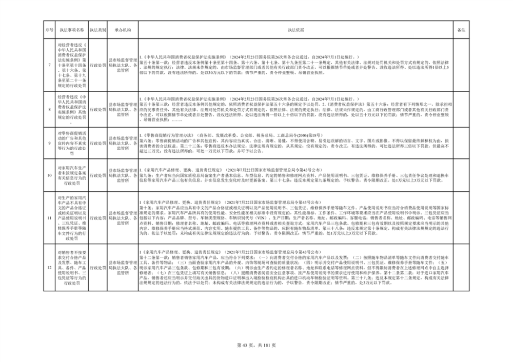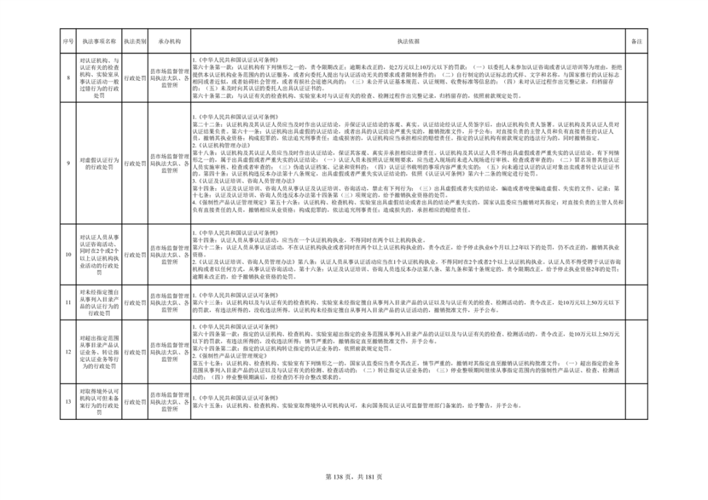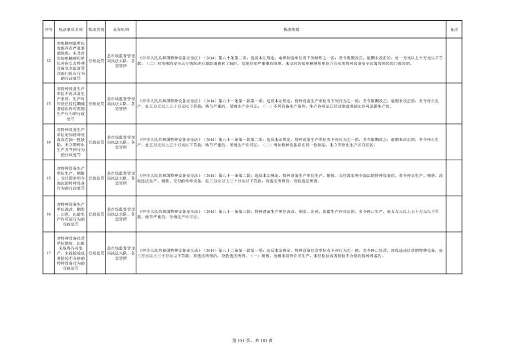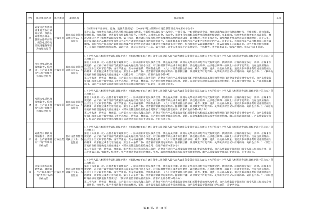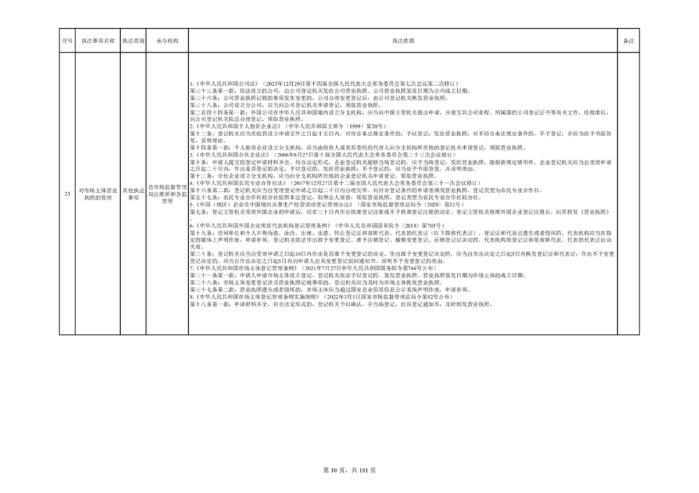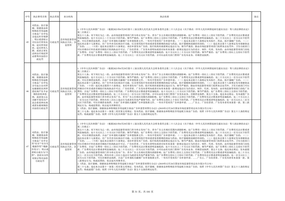 湘阴县市场监督管理局行政执法事项目录