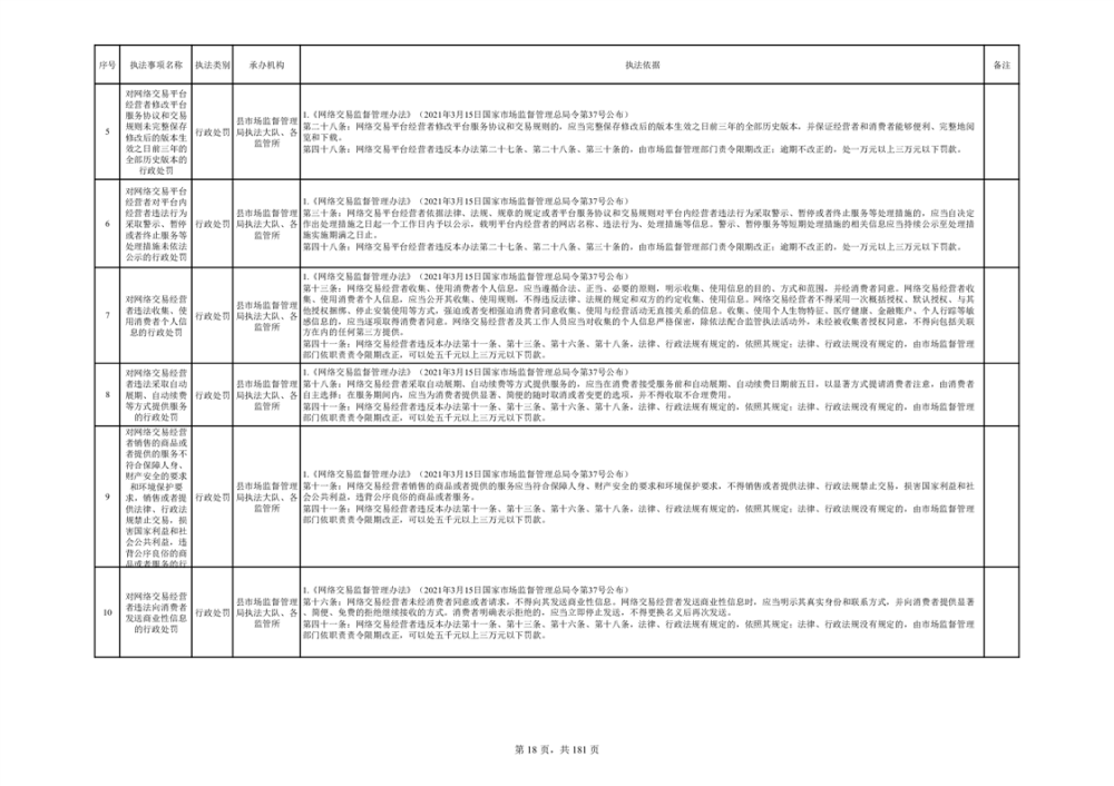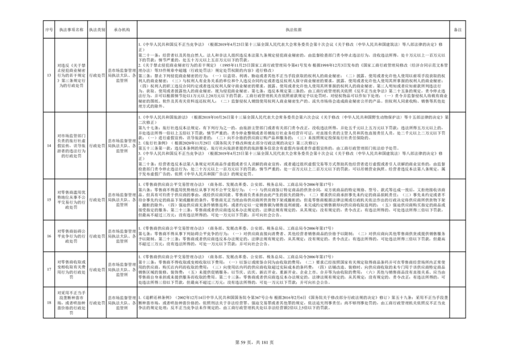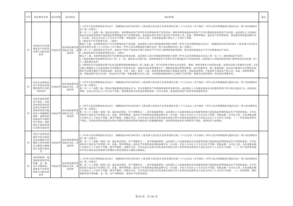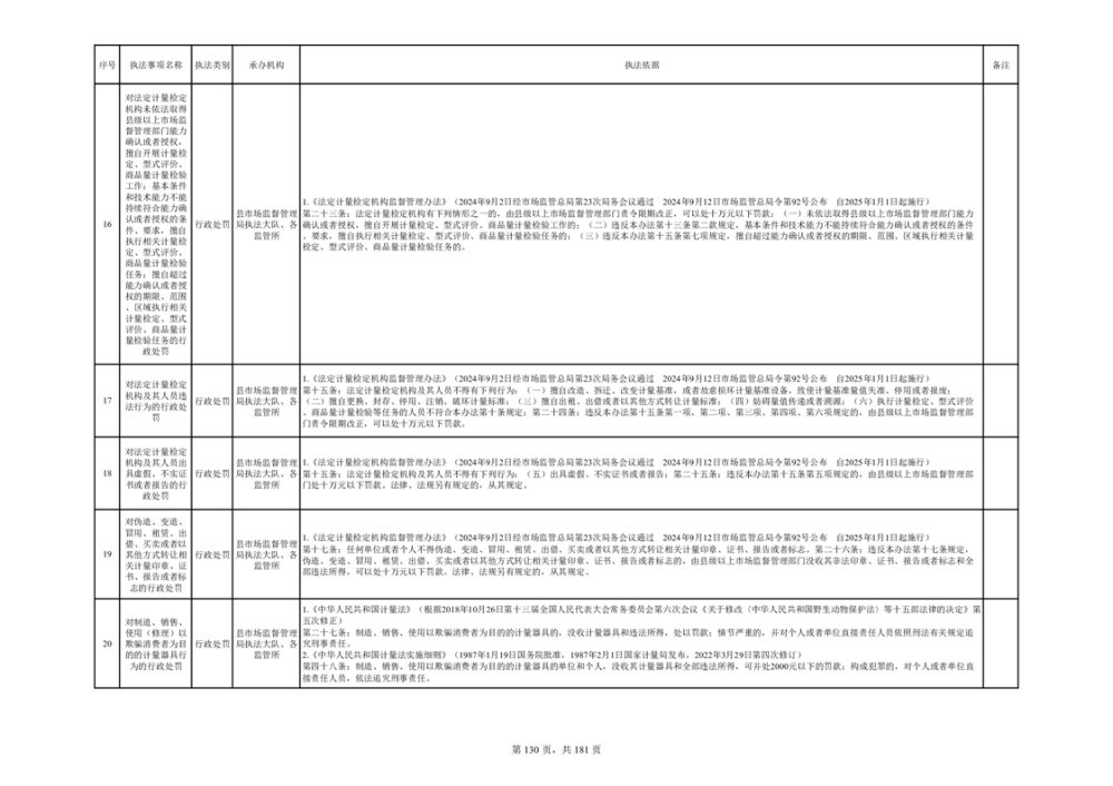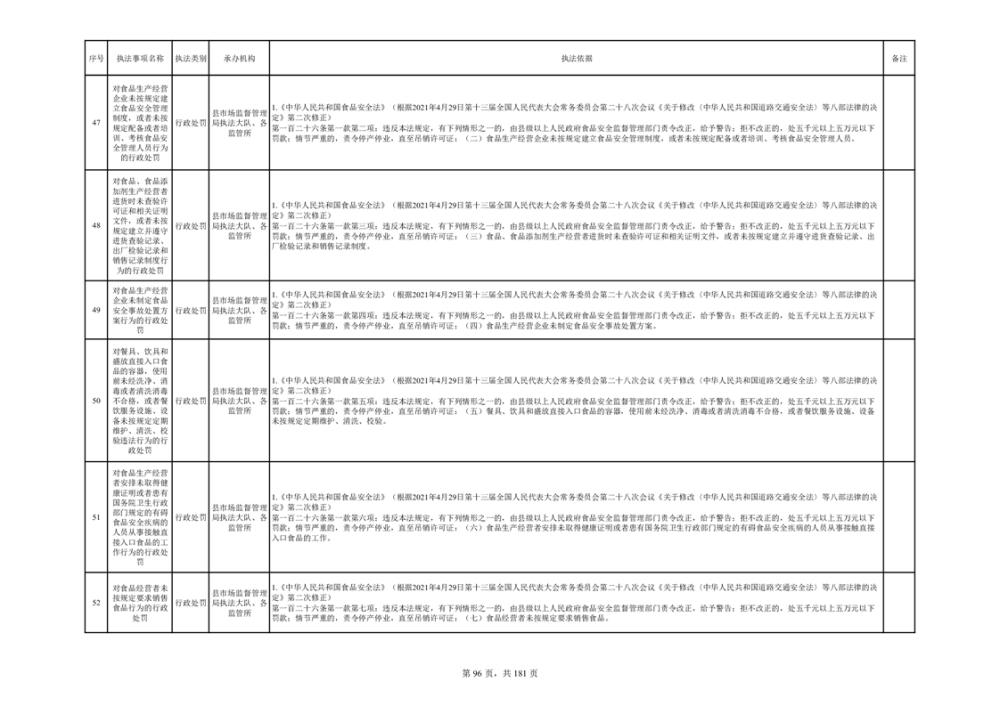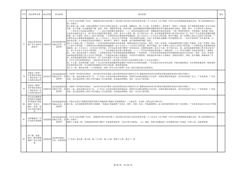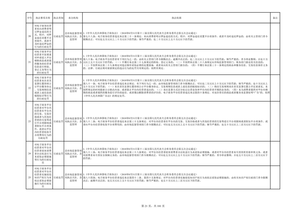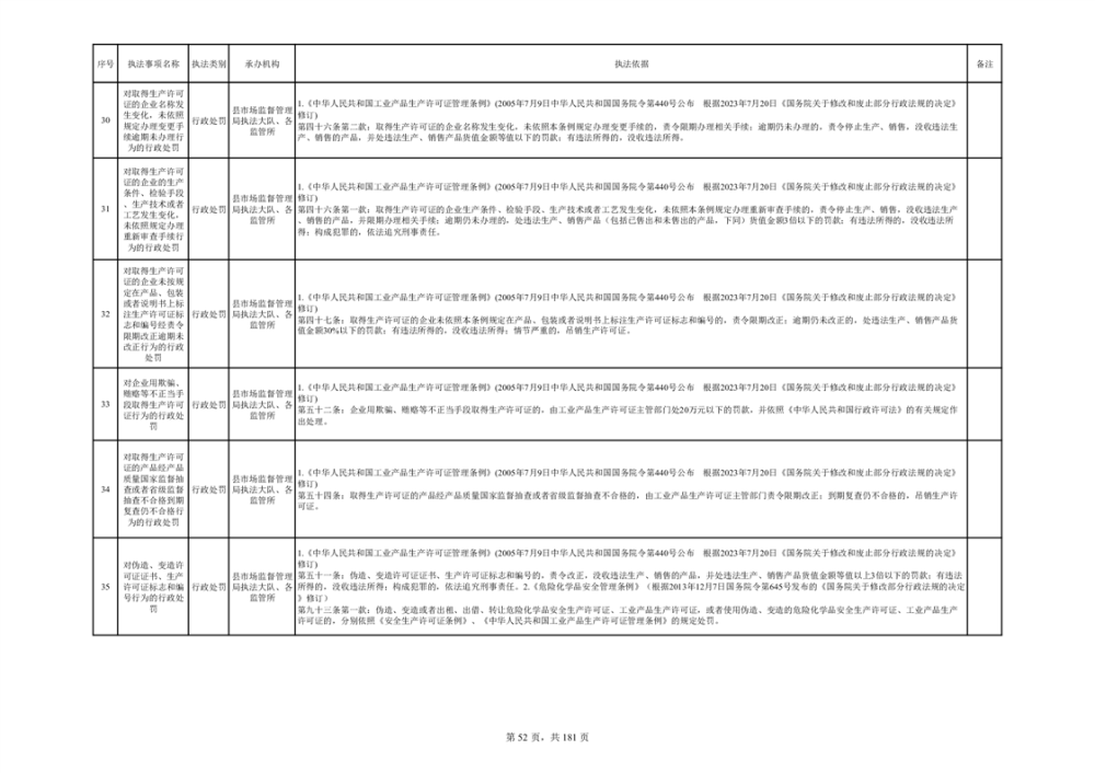 湘阴县市场监督管理局行政执法事项目录