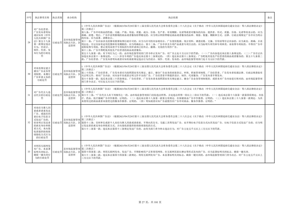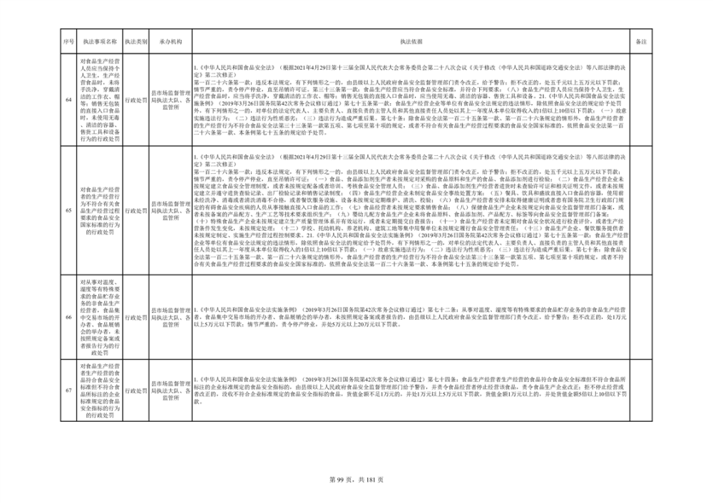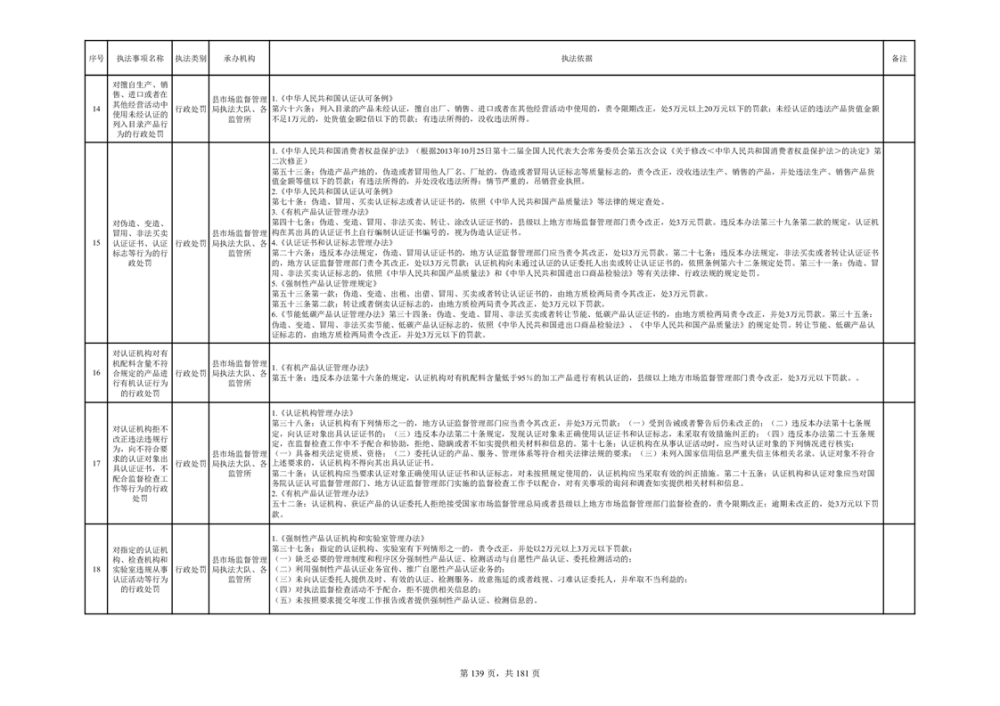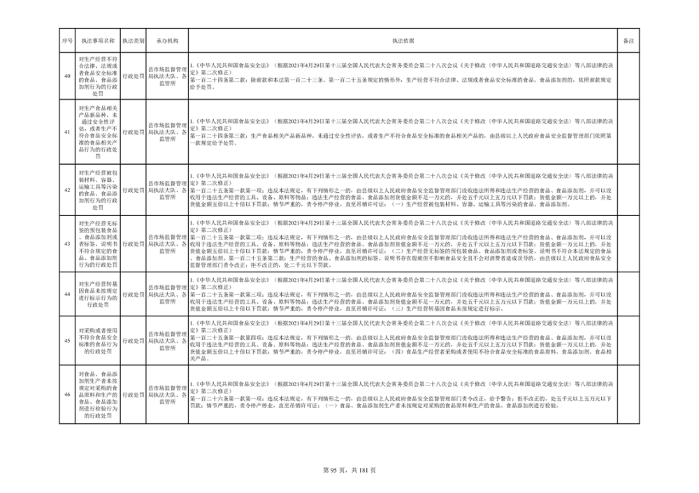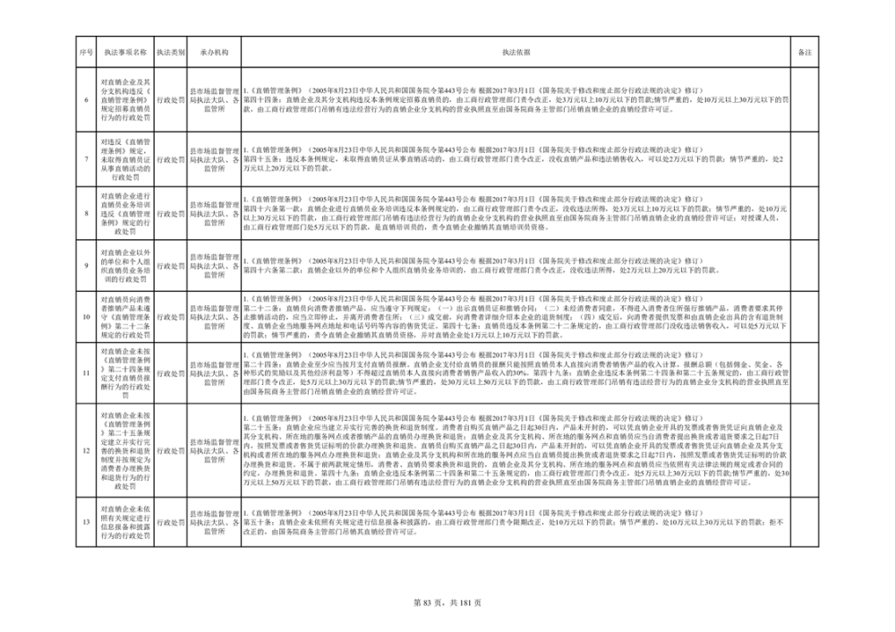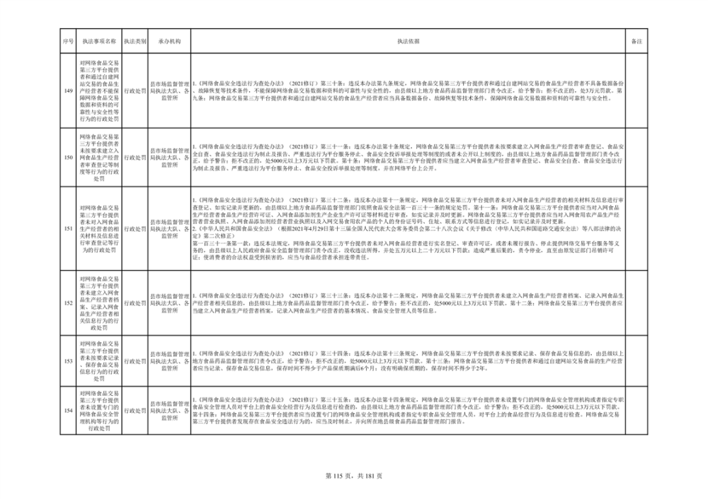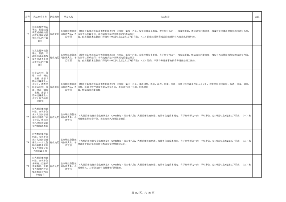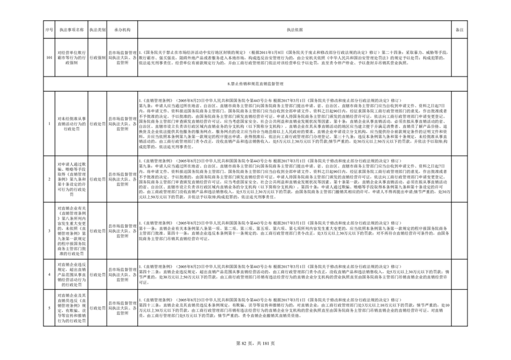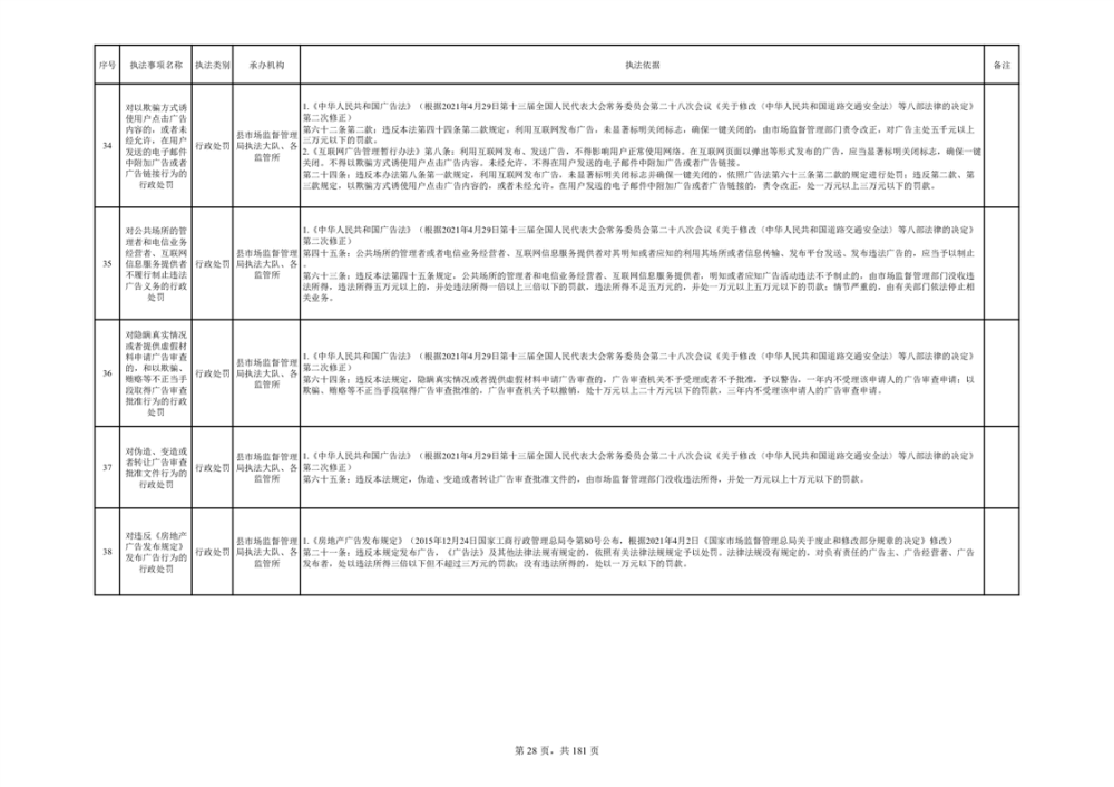 湘阴县市场监督管理局行政执法事项目录