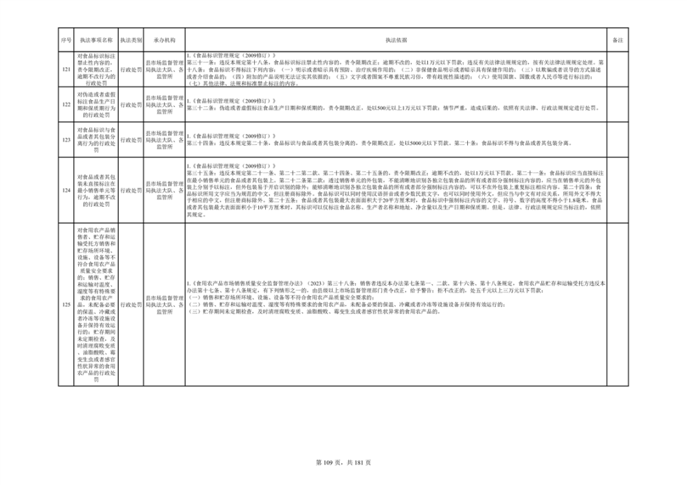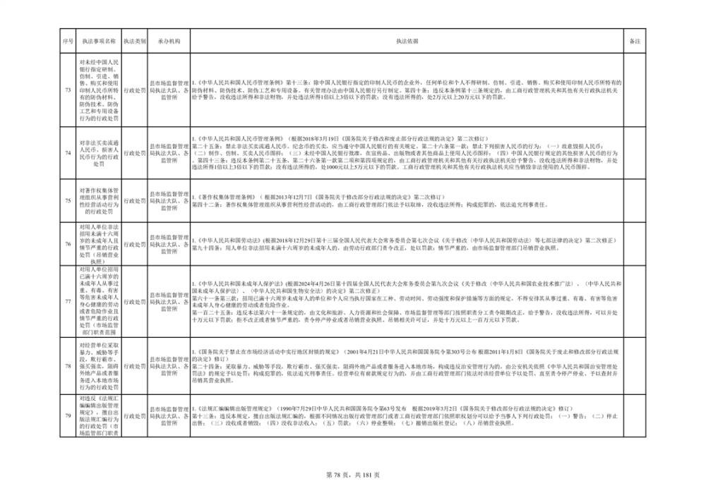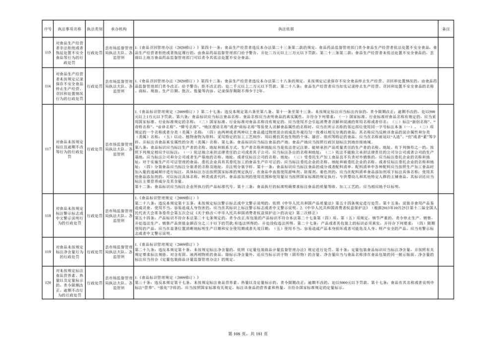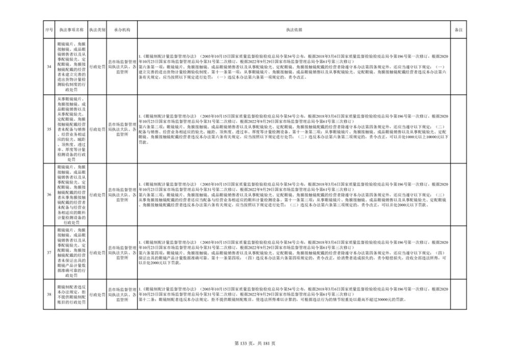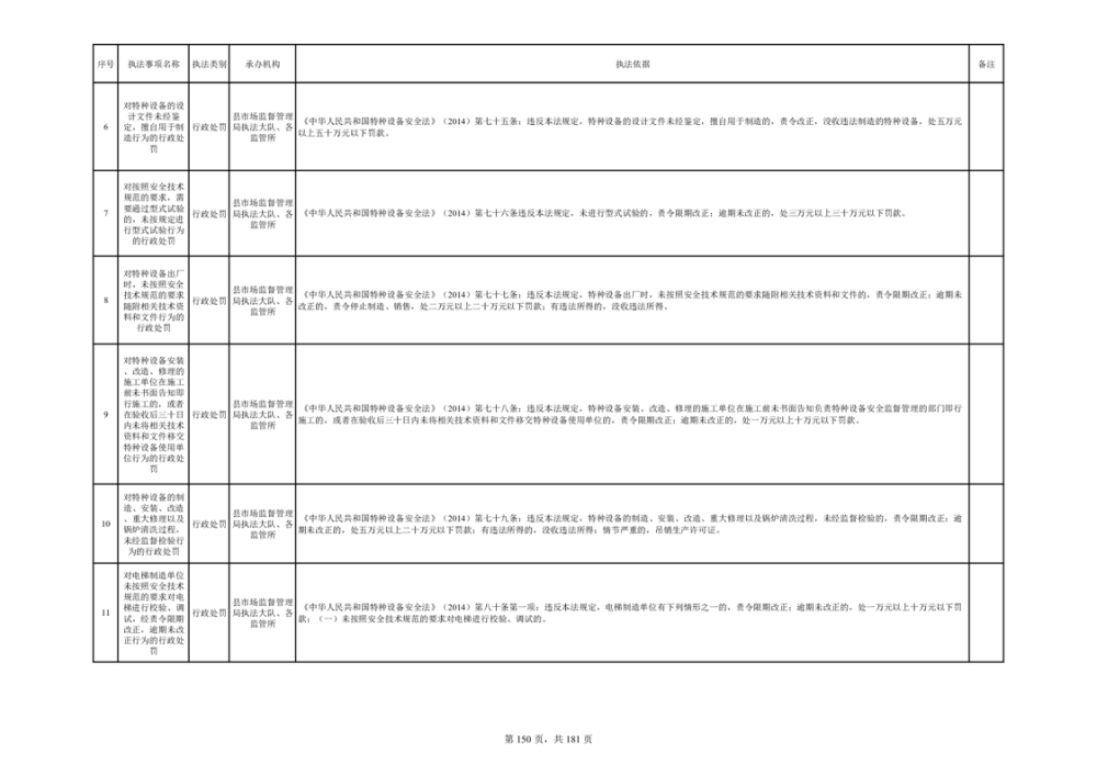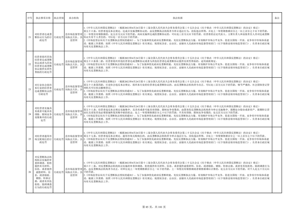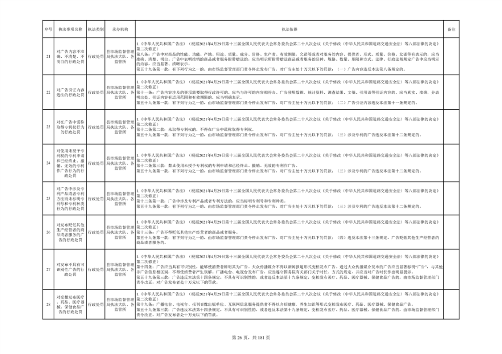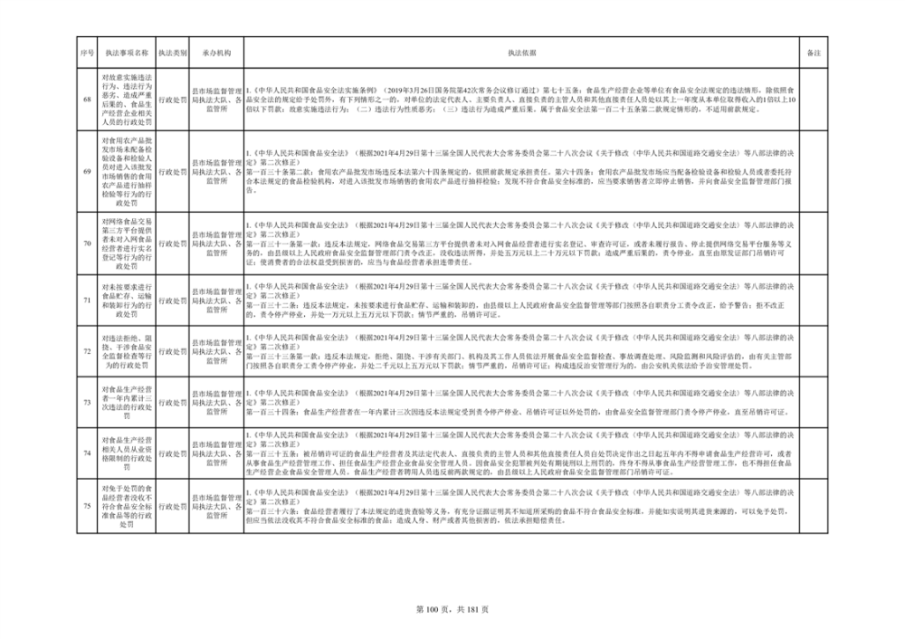 湘阴县市场监督管理局行政执法事项目录