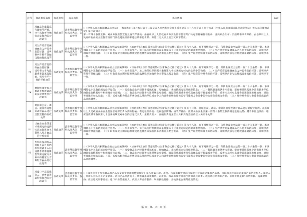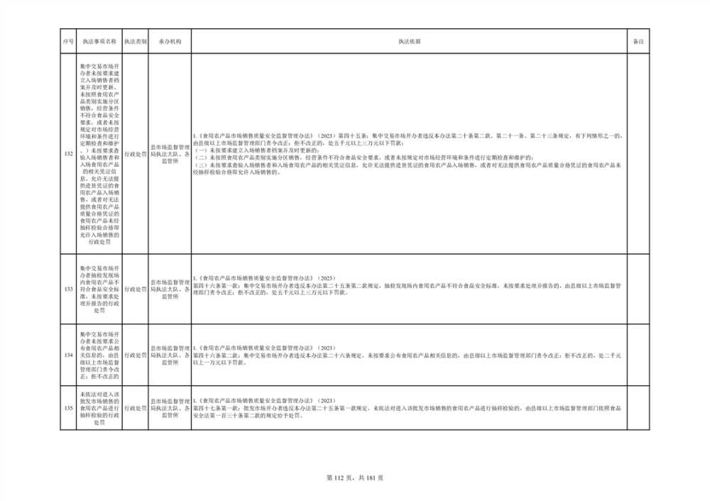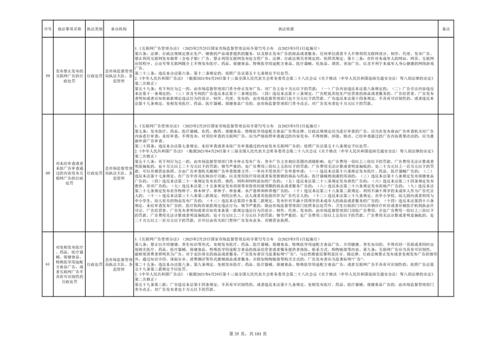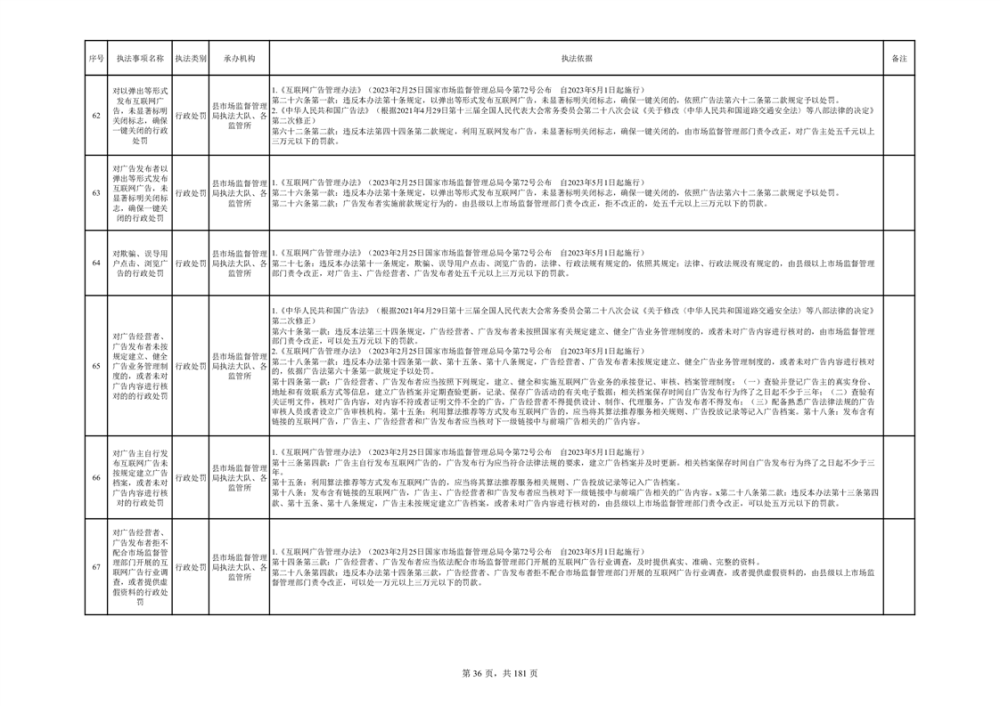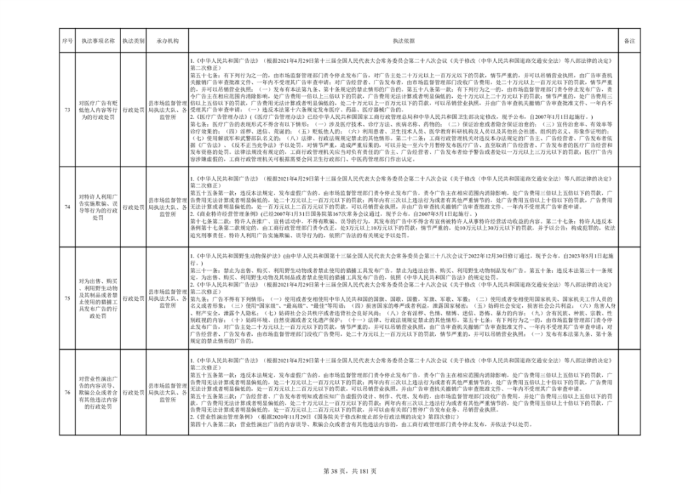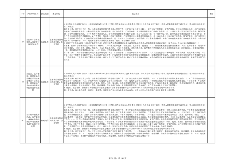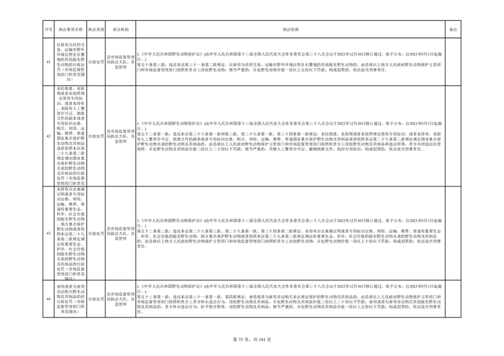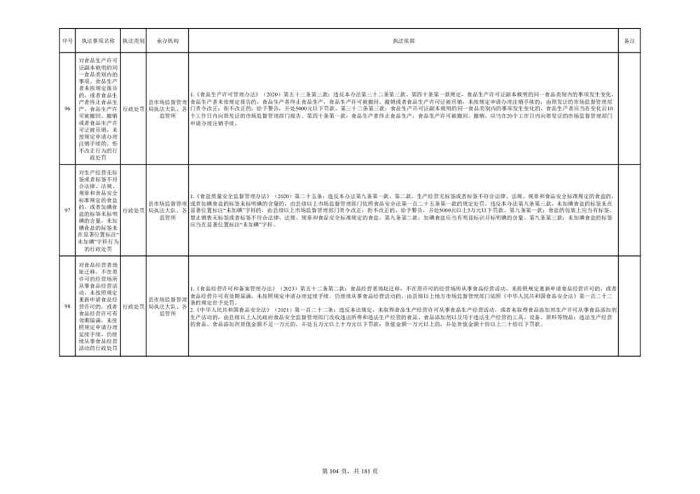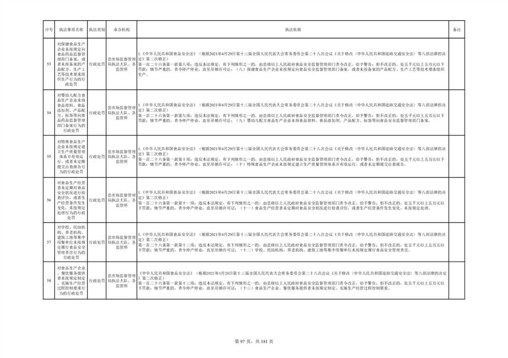 湘阴县市场监督管理局行政执法事项目录