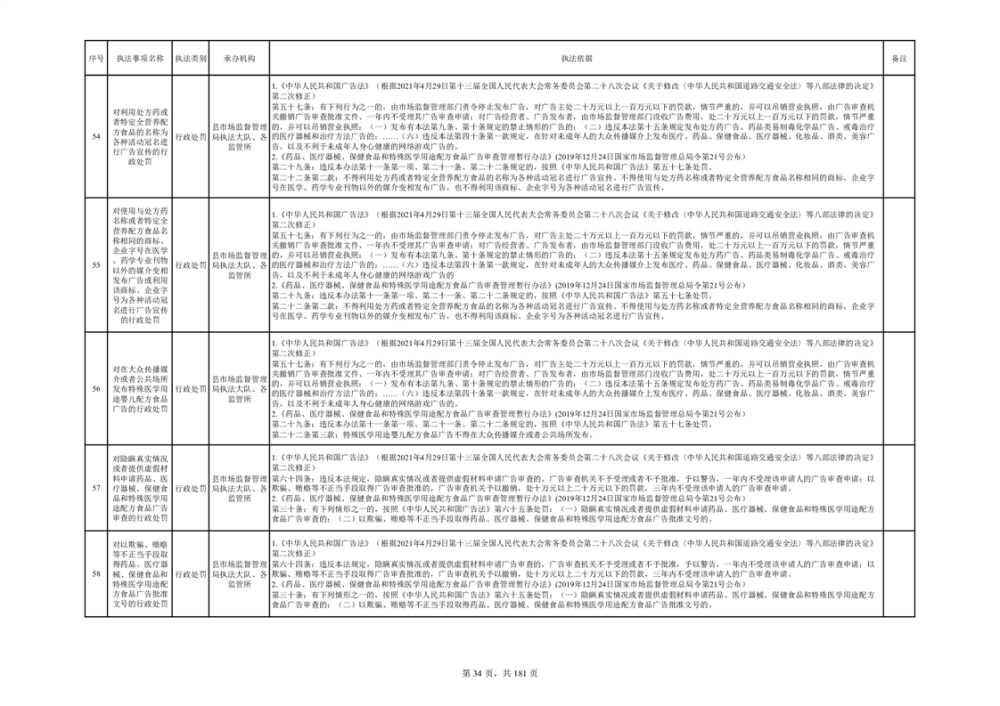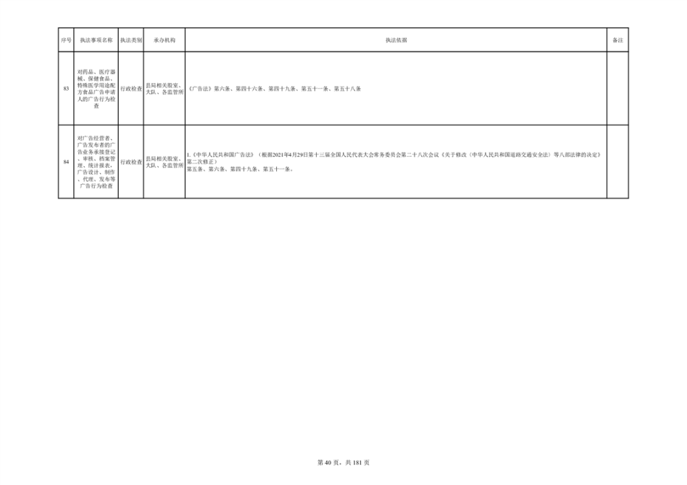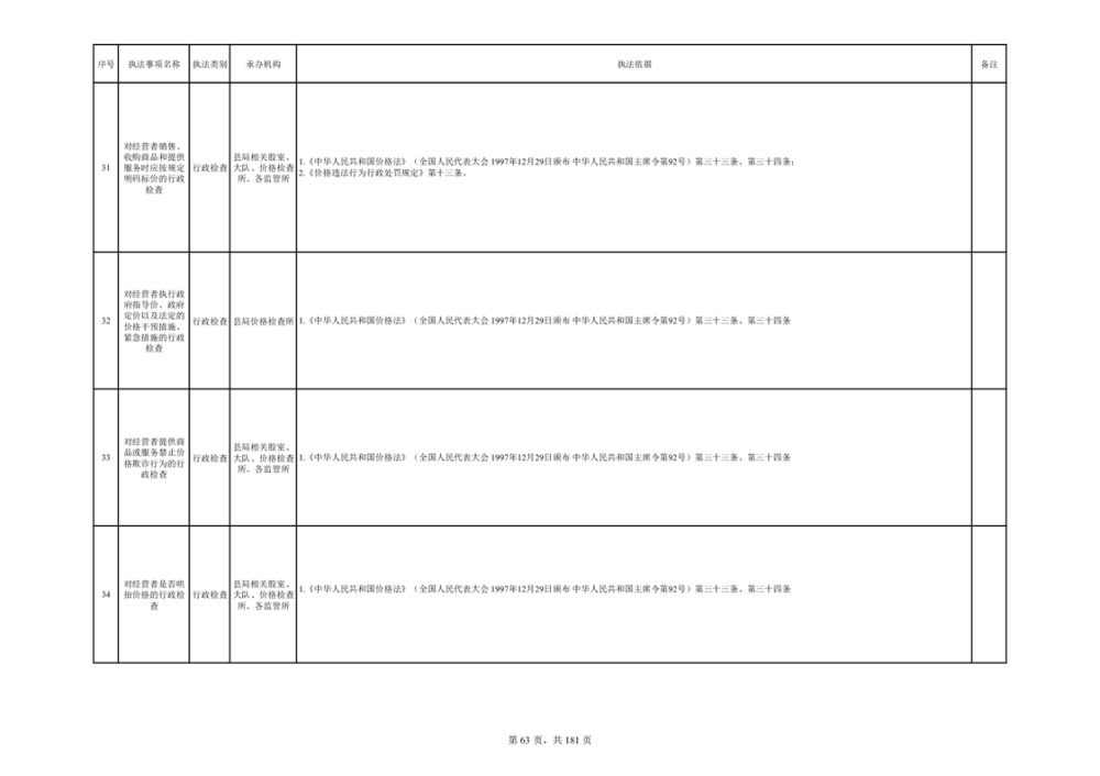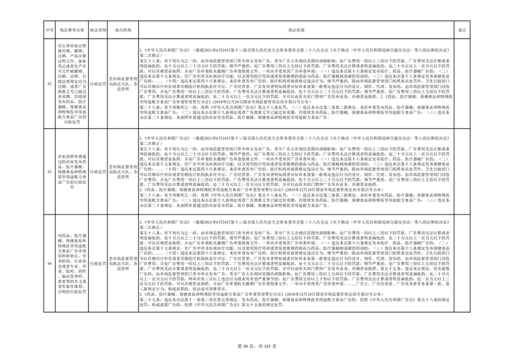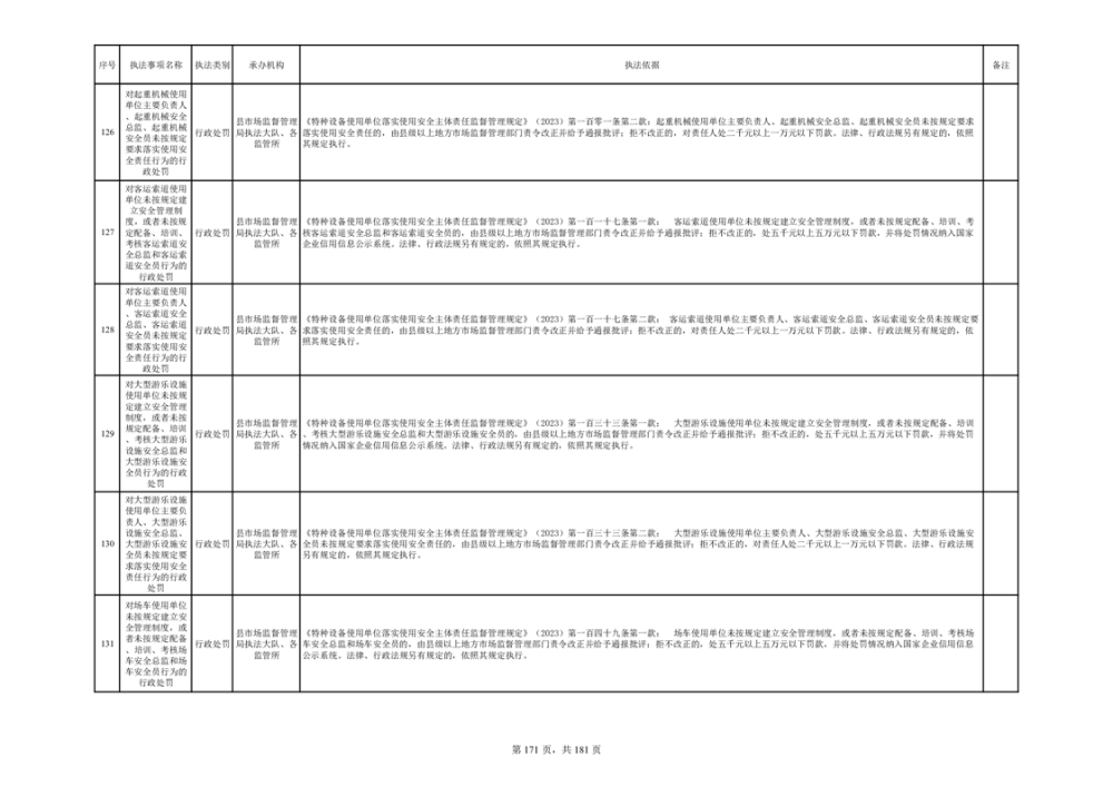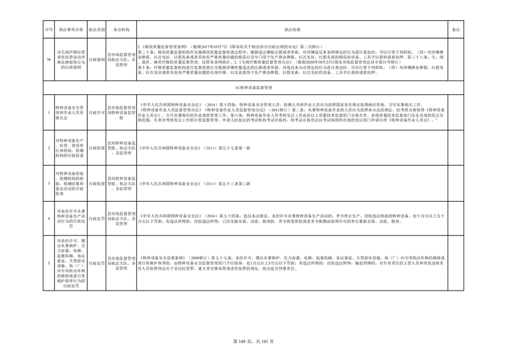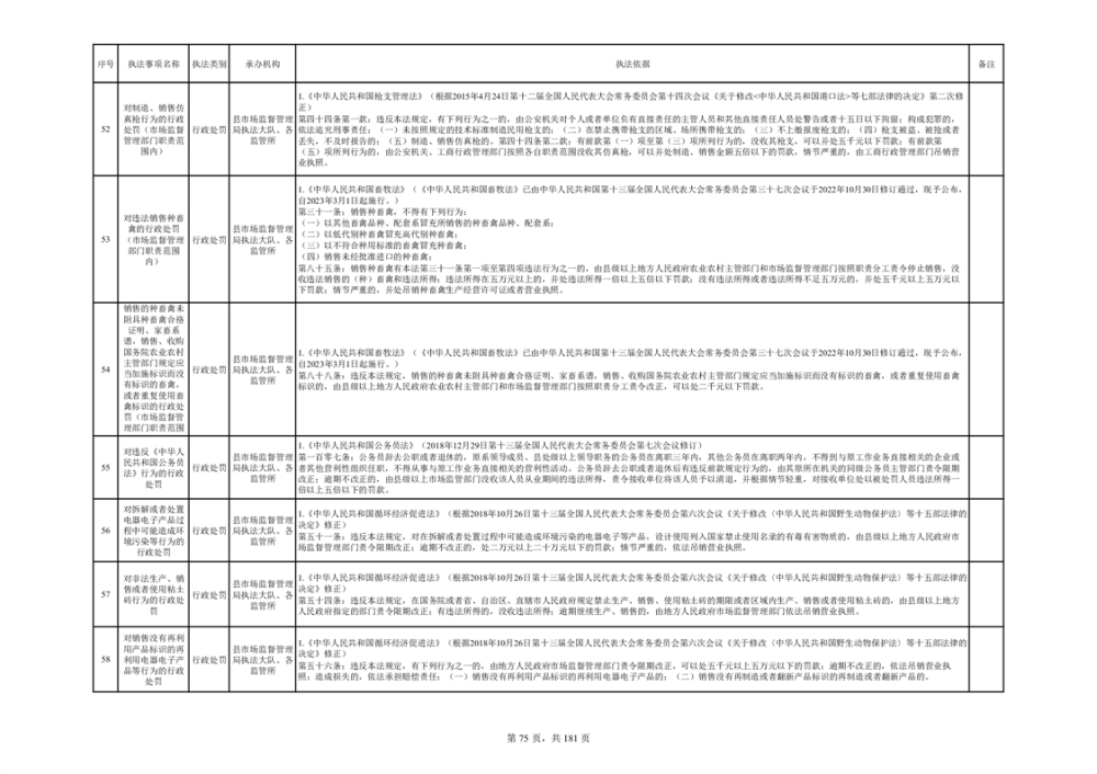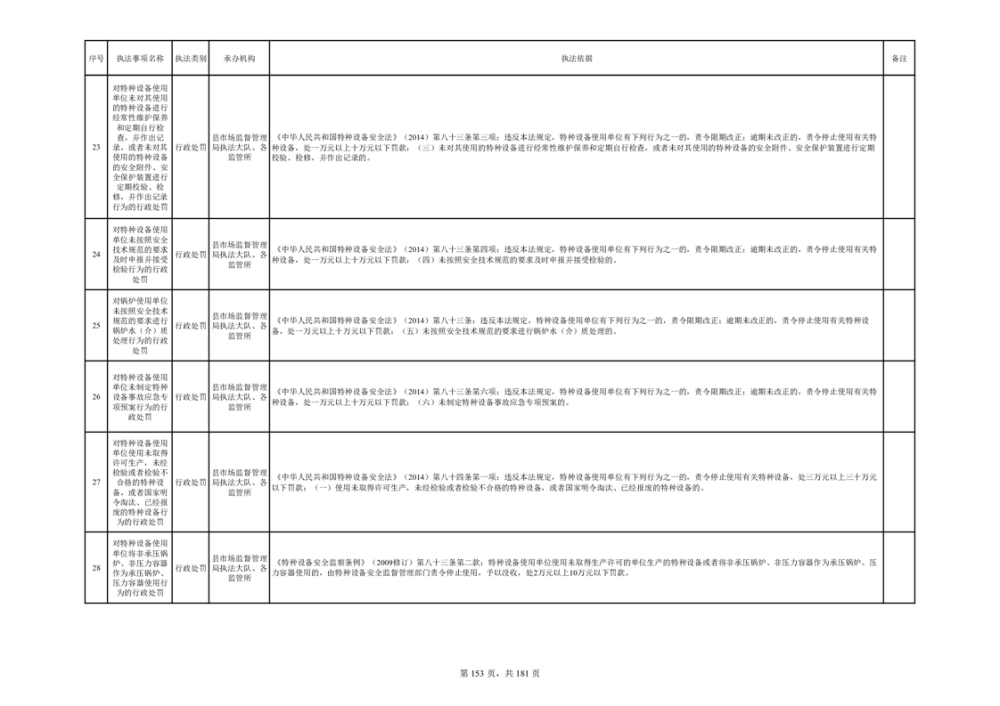 湘阴县市场监督管理局行政执法事项目录