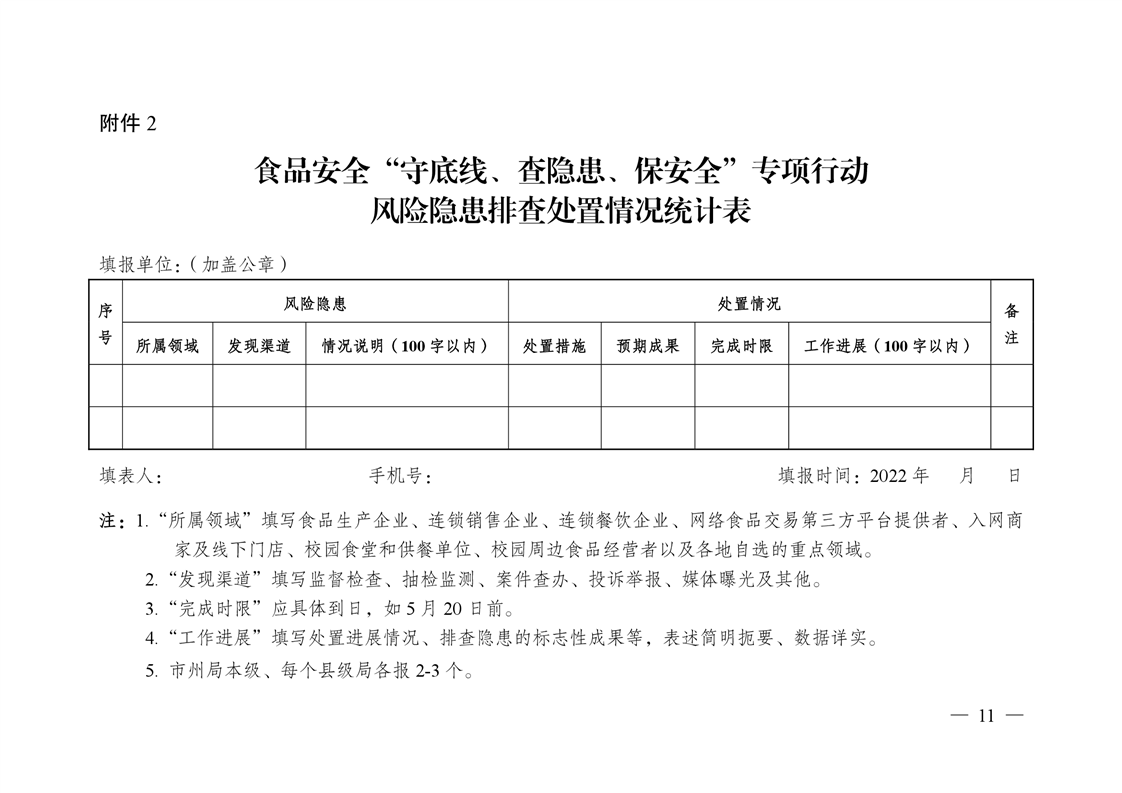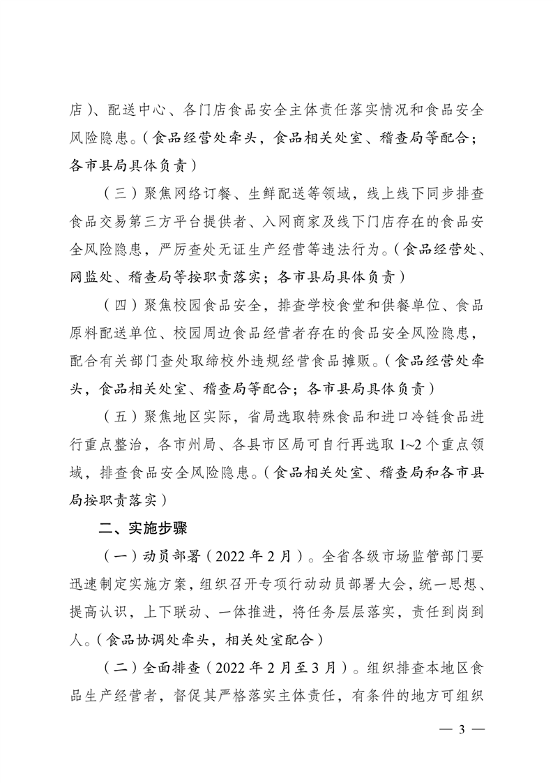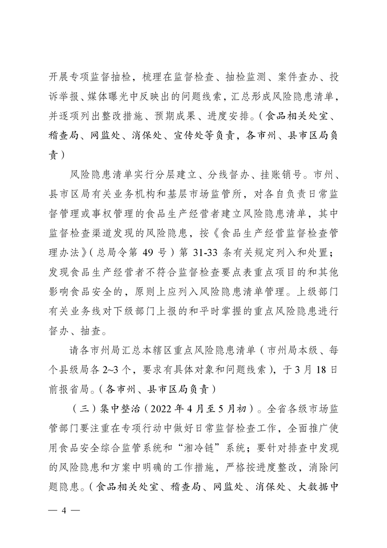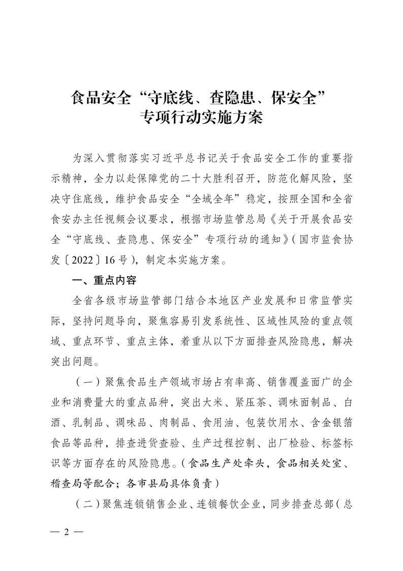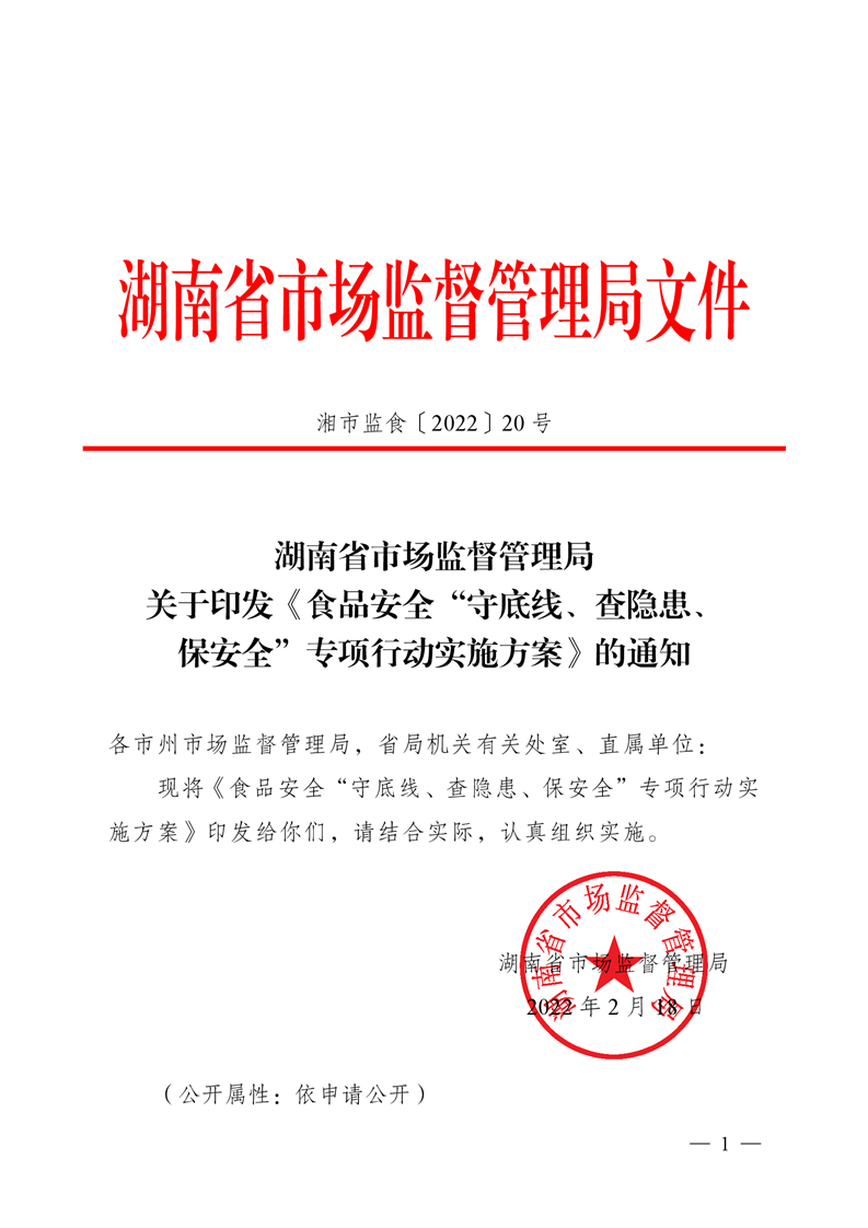 湘市监食〔2022〕20号 关于印发《食品安全“守底线、查隐患、保安全”专项行动实施方案》的通知