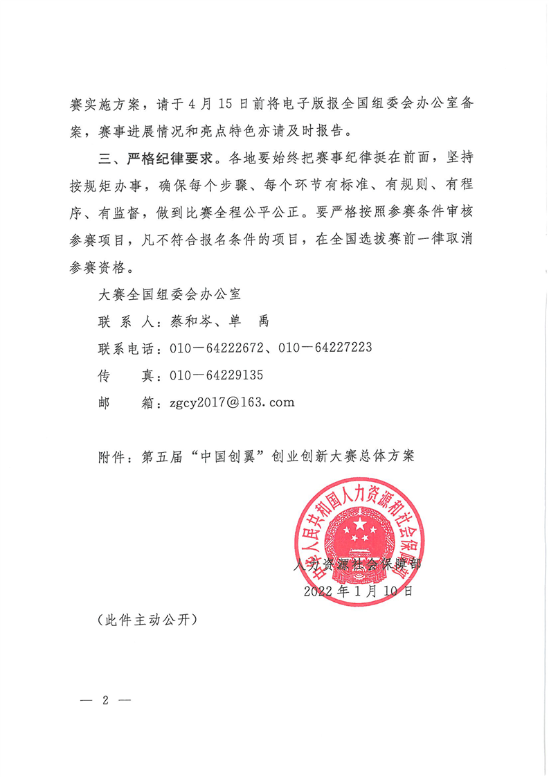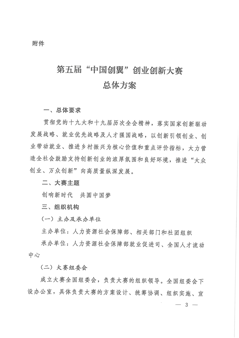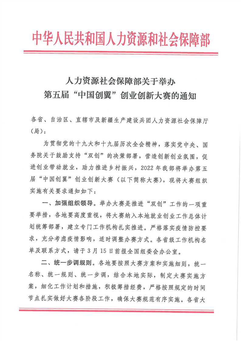 人社部关于举办第五届“中国创翼”创业创新大赛的通知