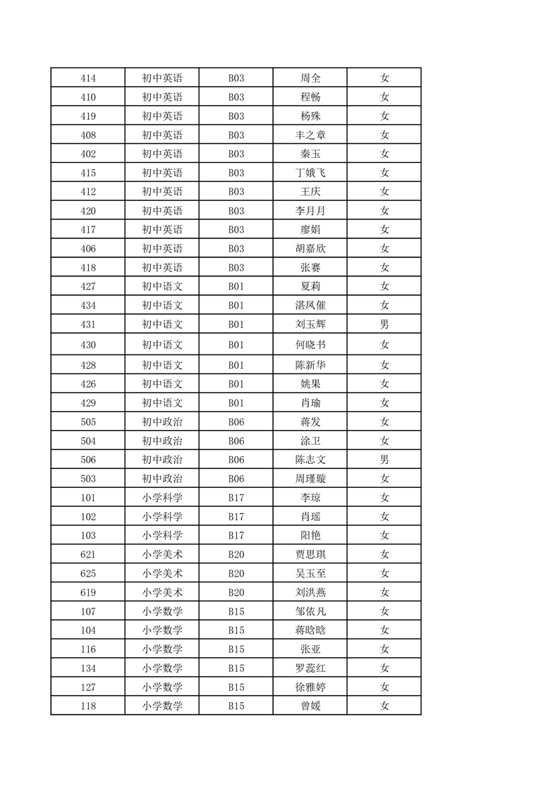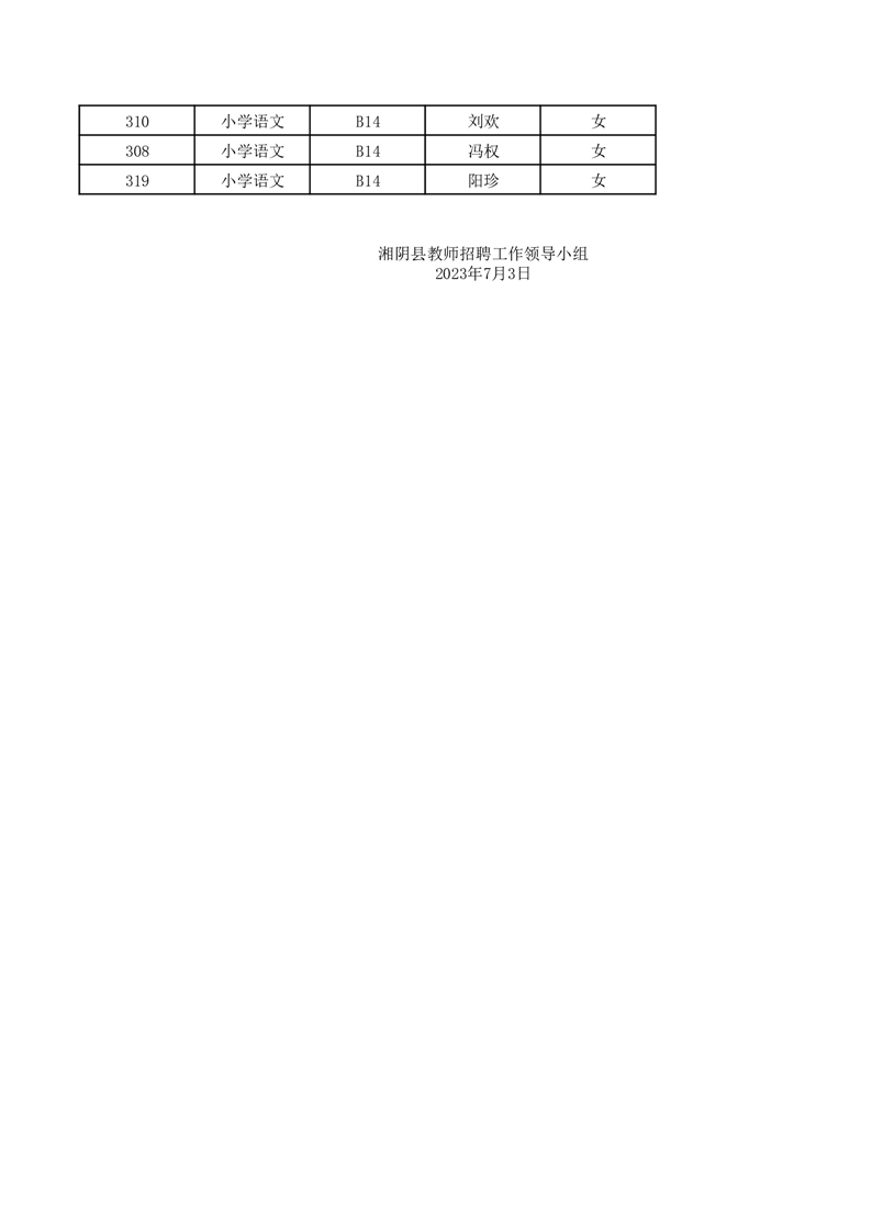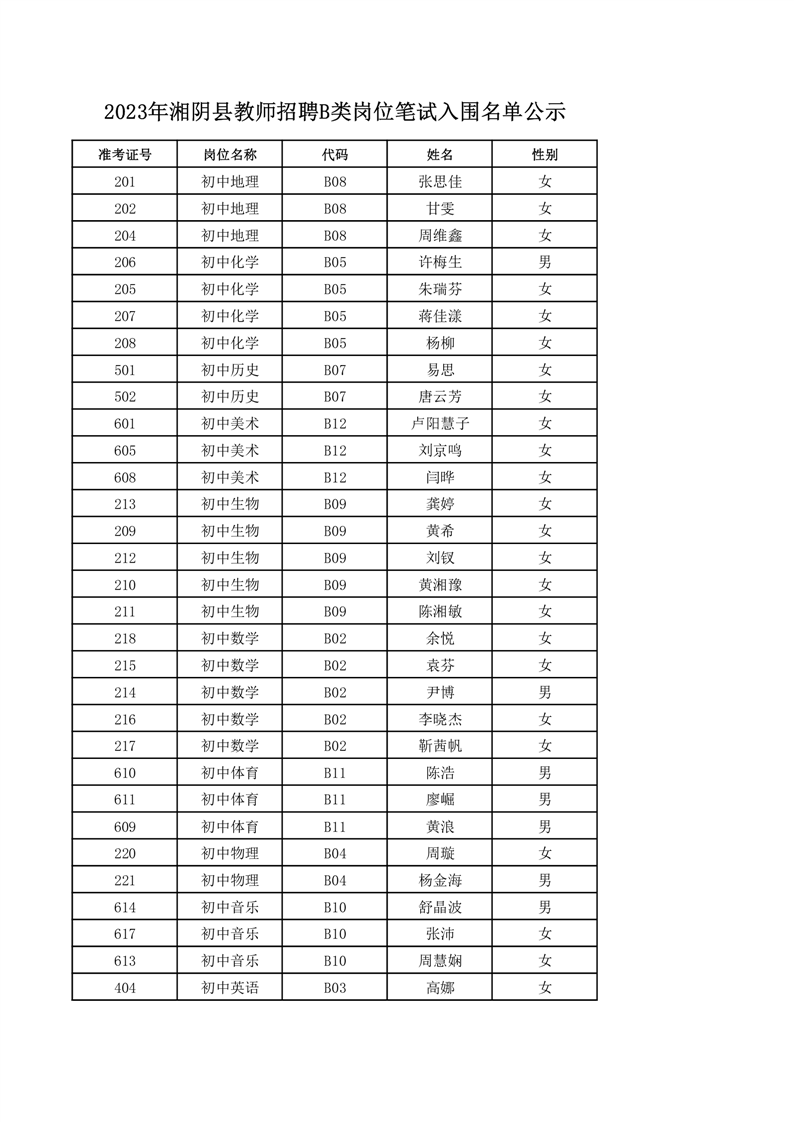 2023年湘阴县教师招聘B类岗位笔试入围名单公示