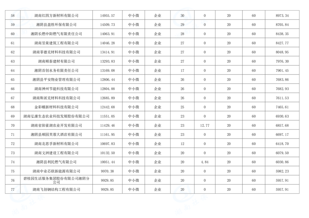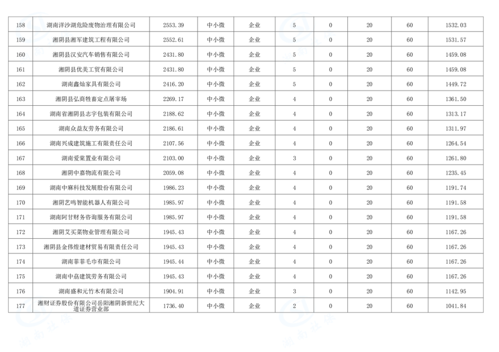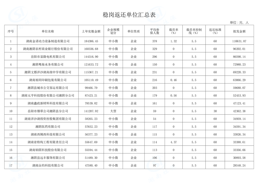 湘阴县2025年度9月稳岗返还补贴名单公示