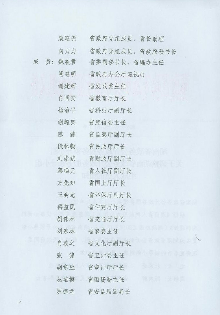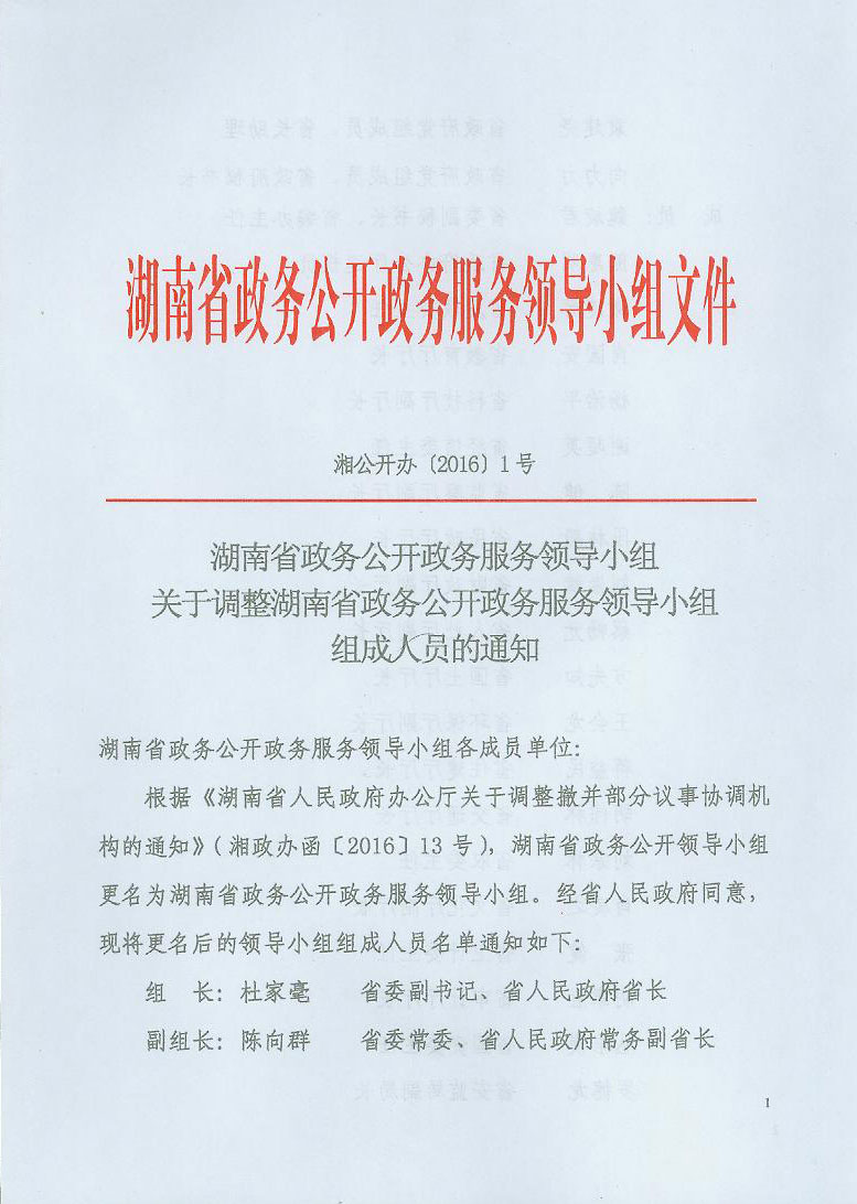 湖南省政务公开政务服务领导小组关于调整湖南省政务公开政务服务领导小组组成人员的通知
