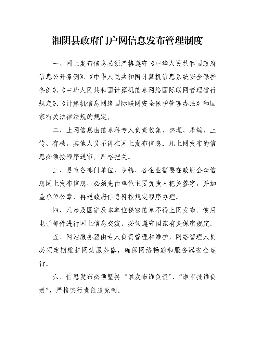 湘阴县政府门户网信息发布管理制度