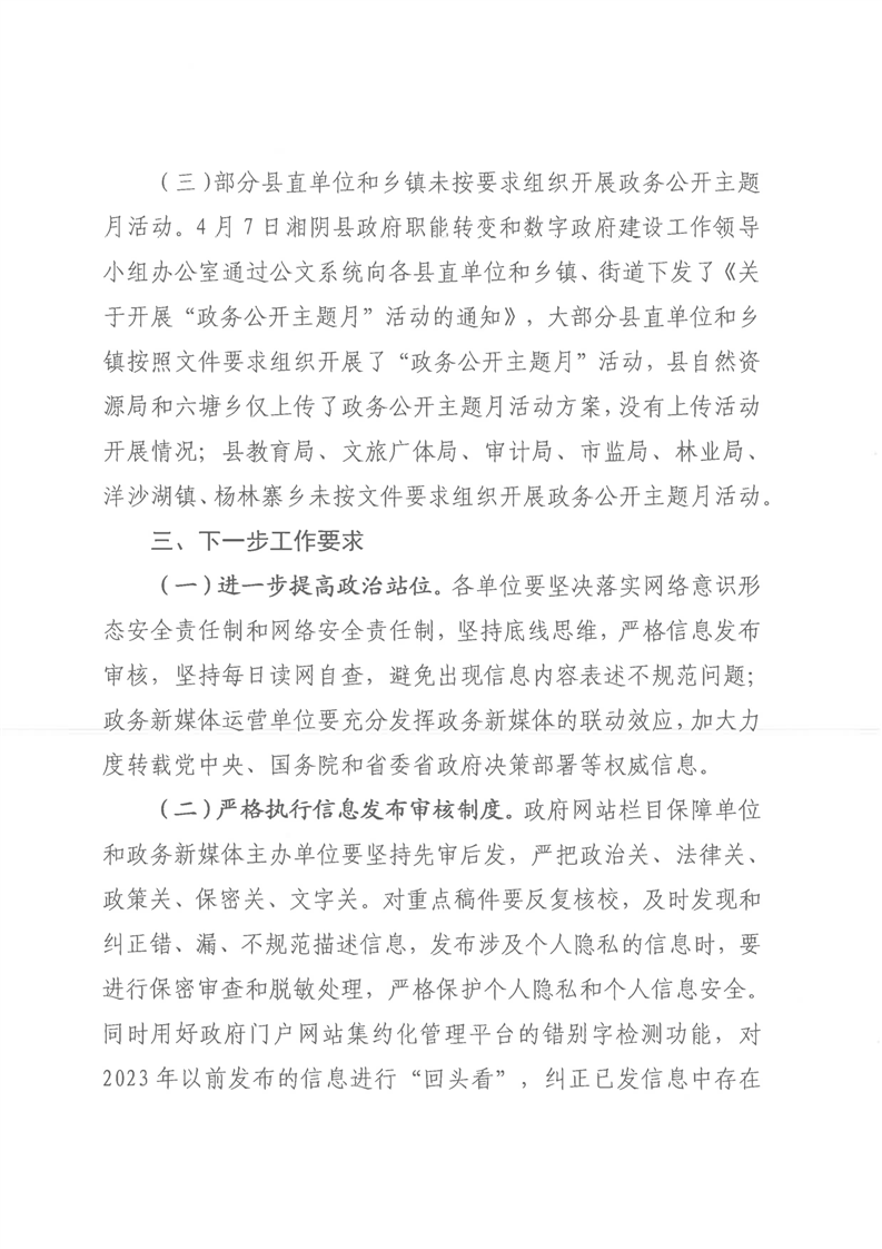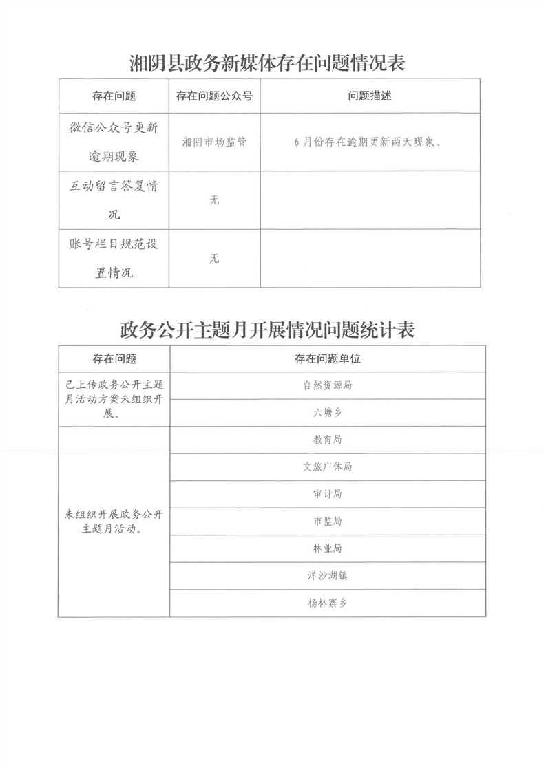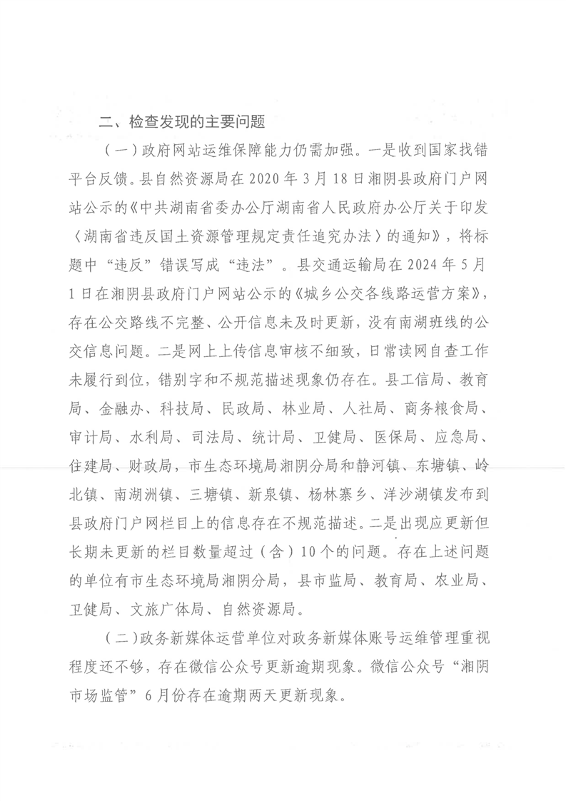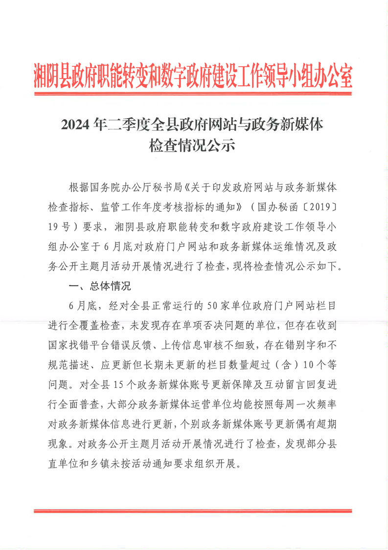 湘阴县2024年二季度全县政府网站与政务新媒体检查情况公示