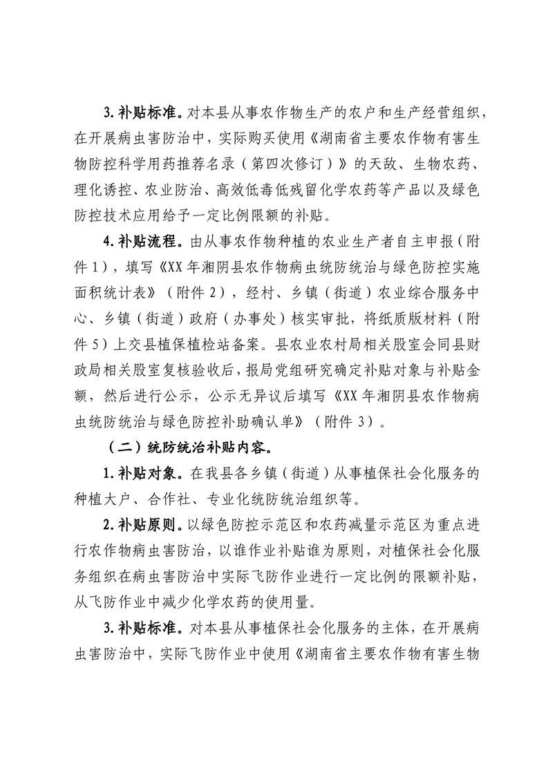 关于印发《湘阴县绿色防控与统防统治资金补贴实施方案》的通知