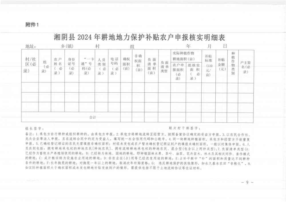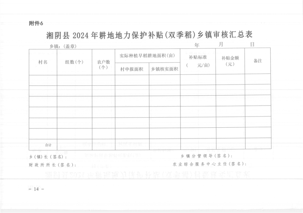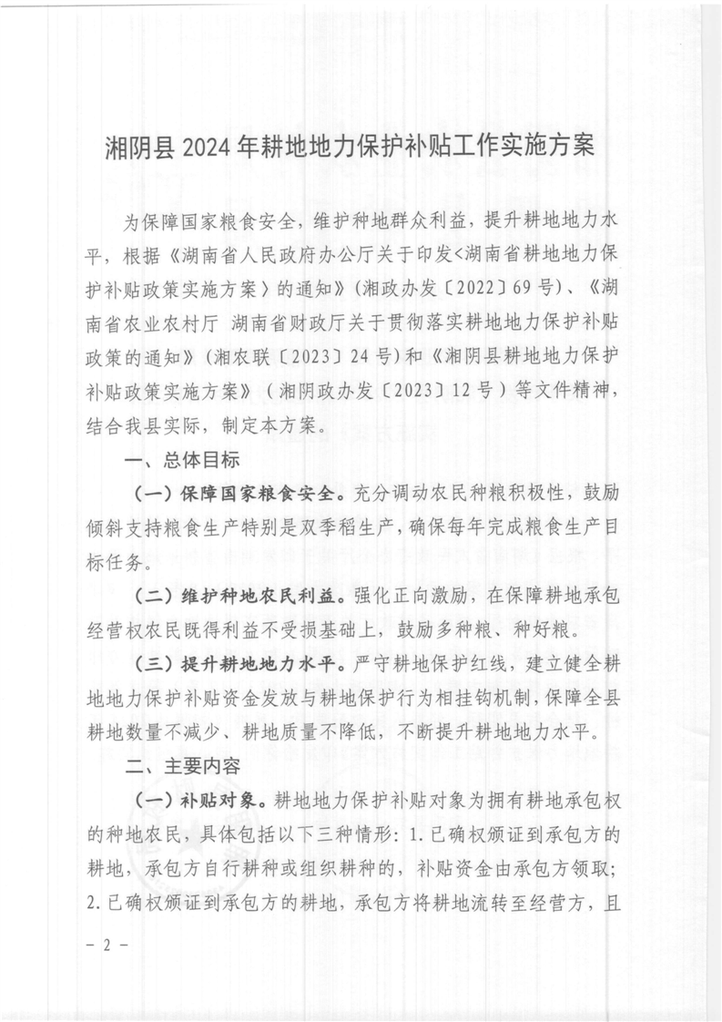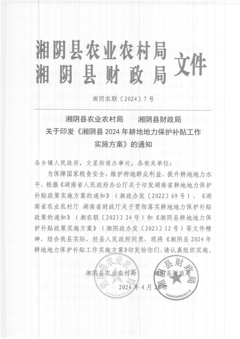 关于印发《湘阴县2024年耕地地力保护补贴工作实施方案》的通知