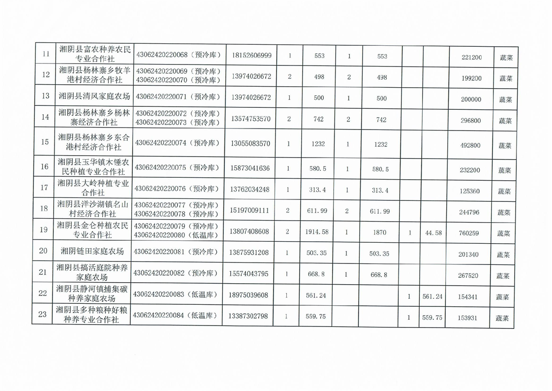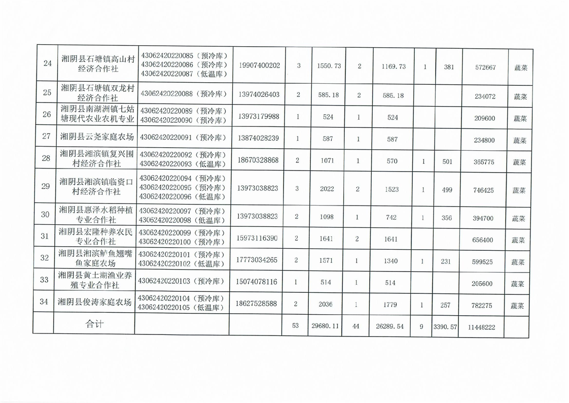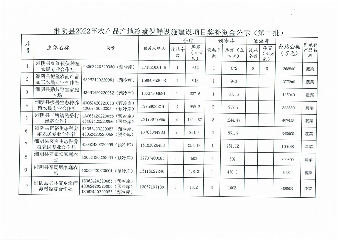 关于2022年湘阴县农产品产地冷藏保鲜设施建设项目奖补资金公示(第二批)