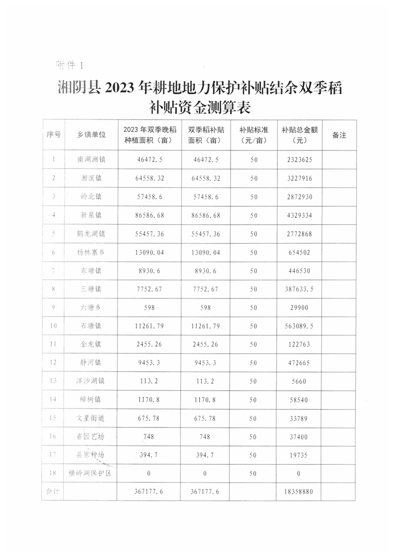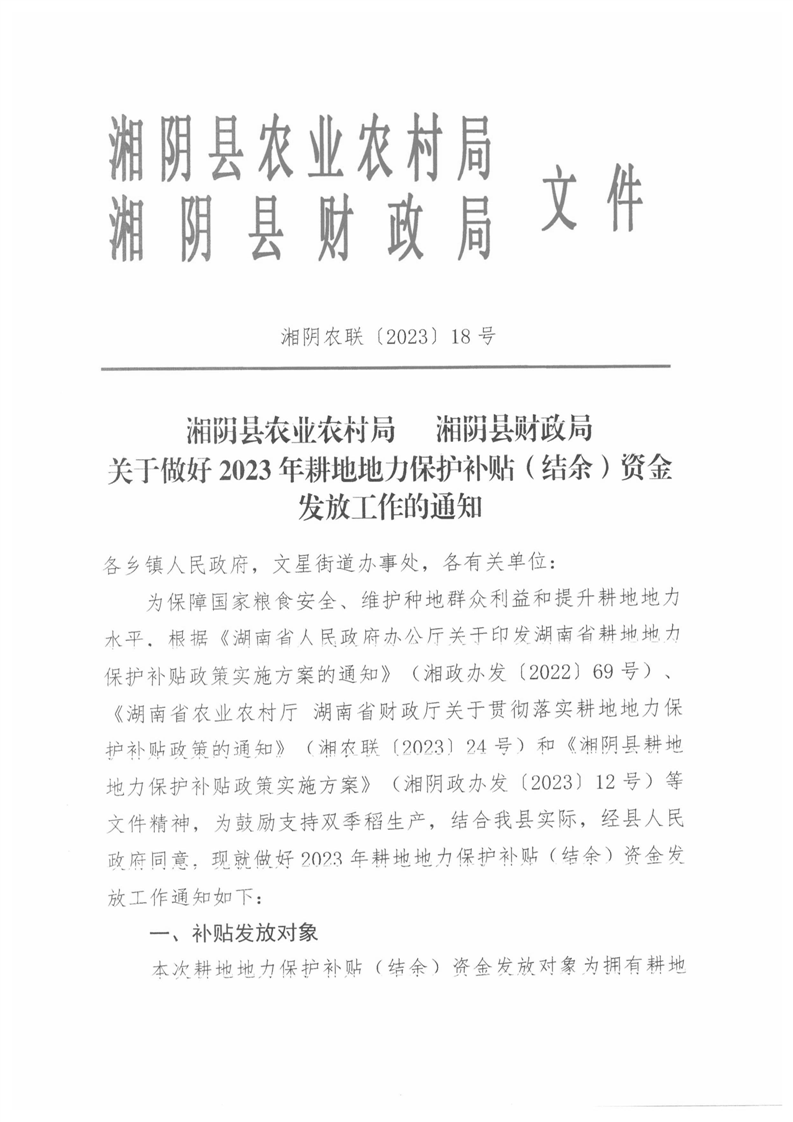 关于做好2023年耕地地力保护补贴(结余)资金发放工作的通知