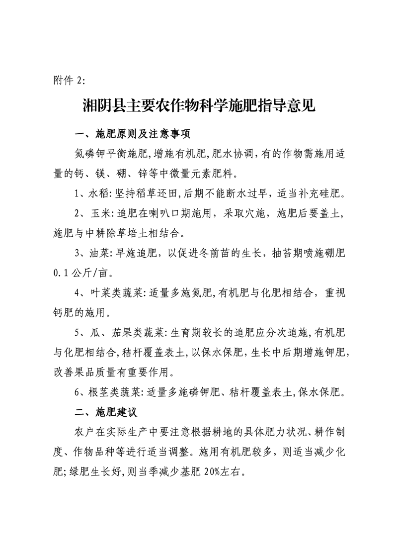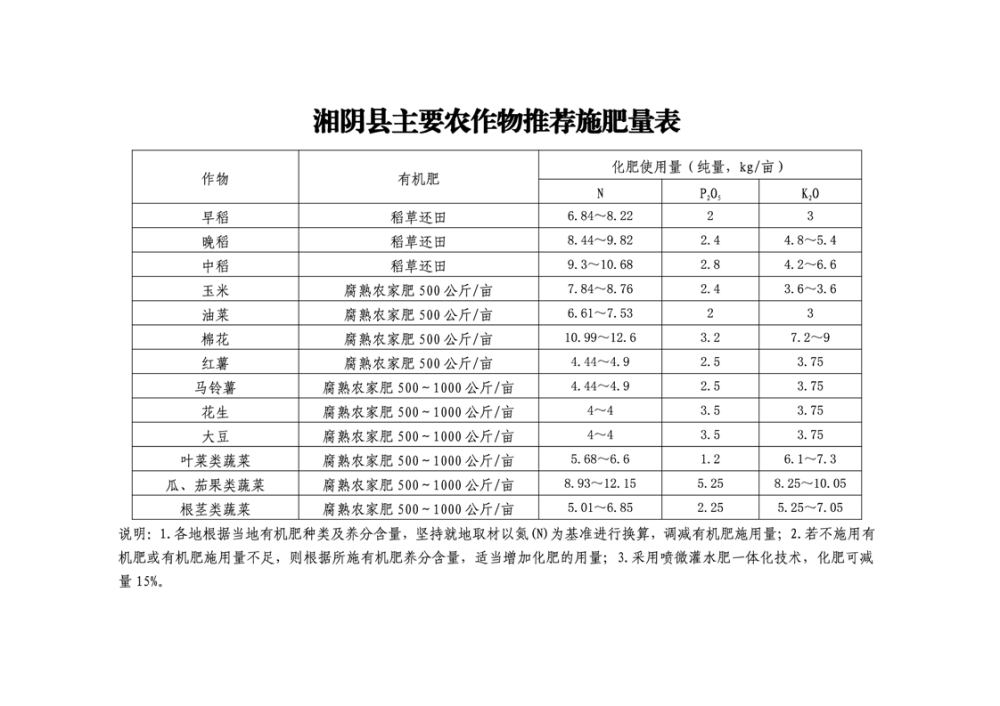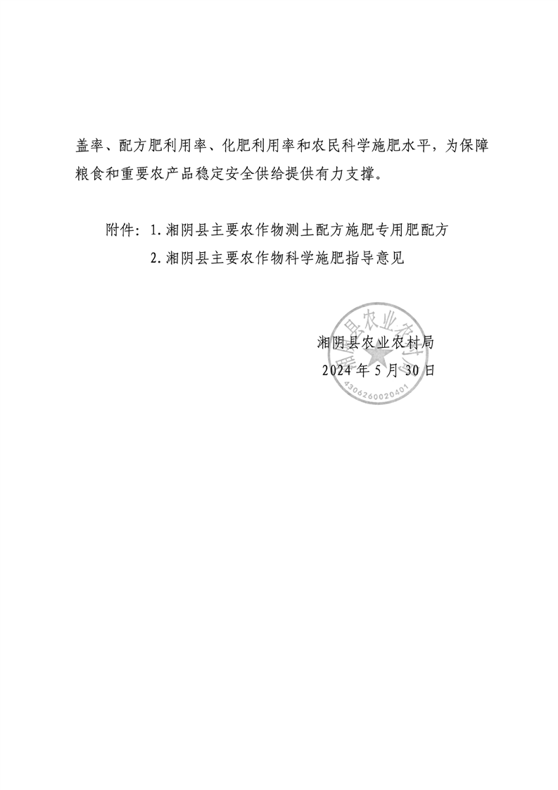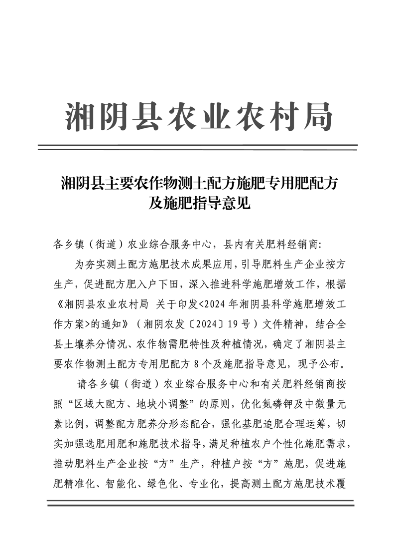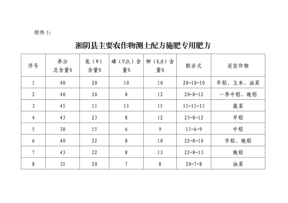 湘阴县主要农作物测土配方施肥专用肥配方及施肥指导意见