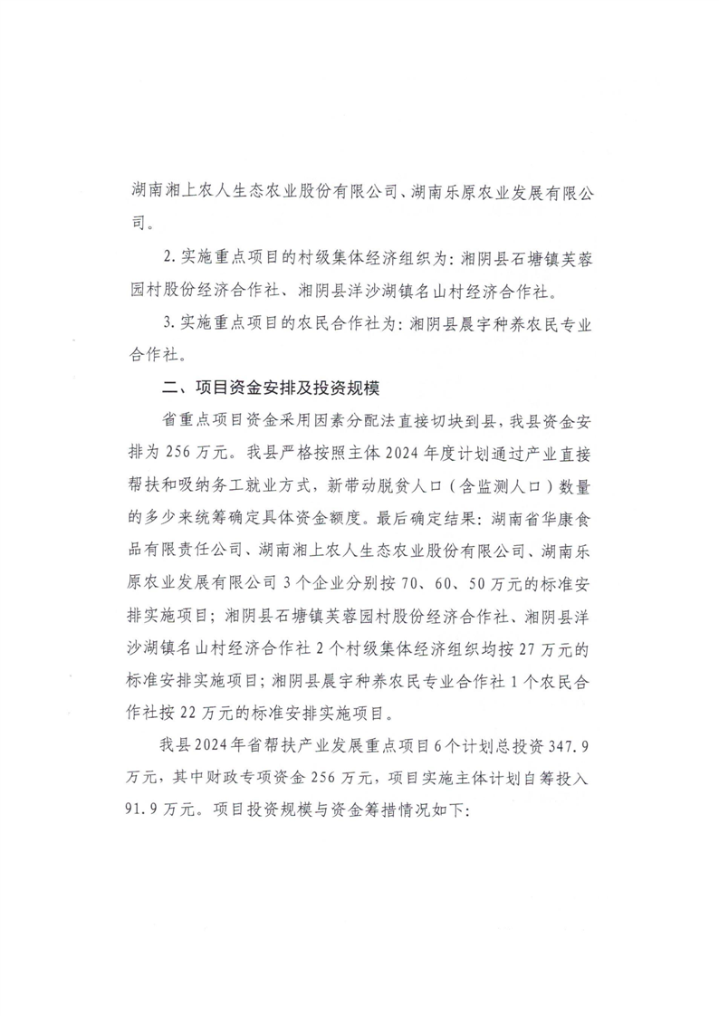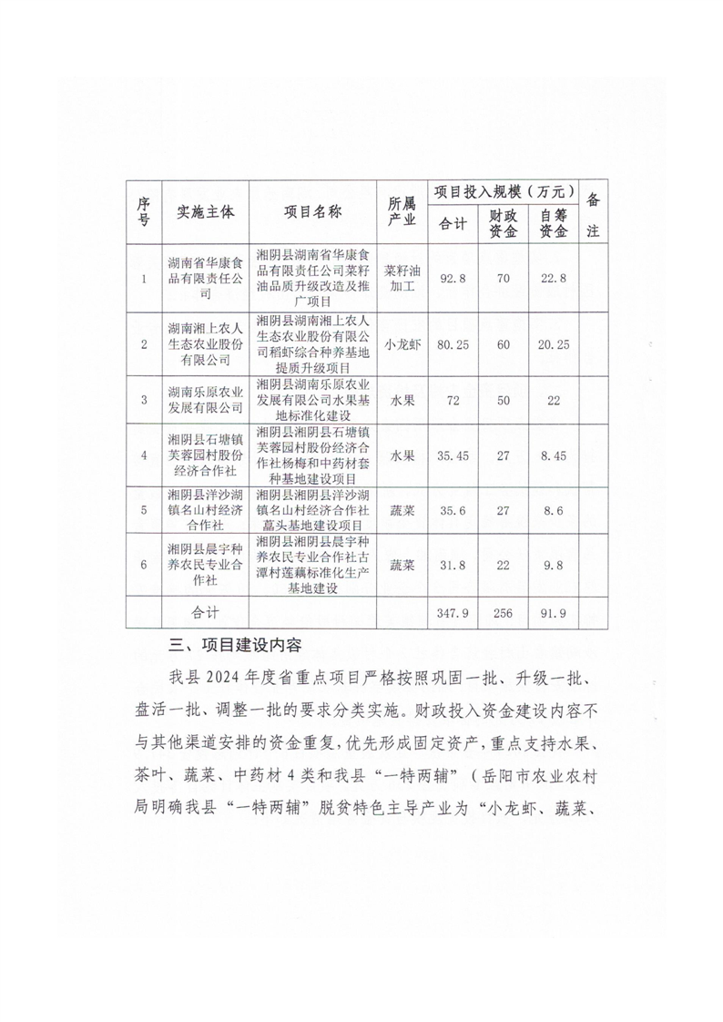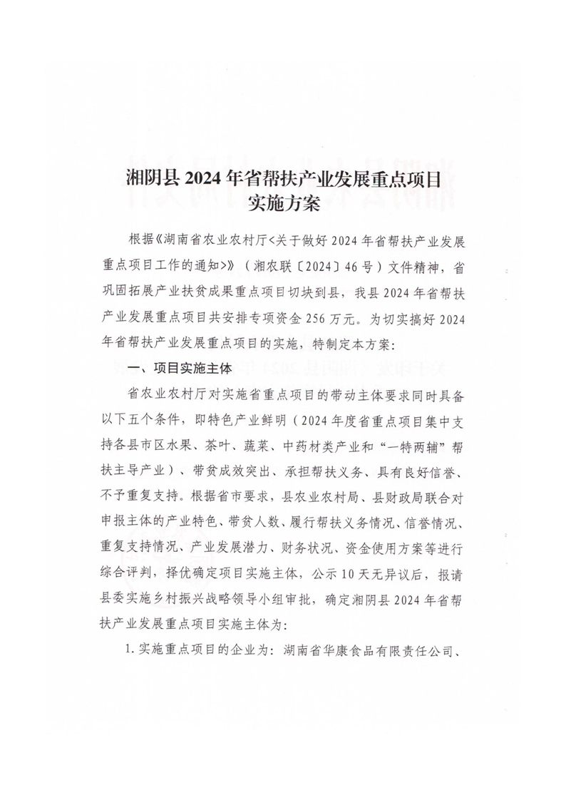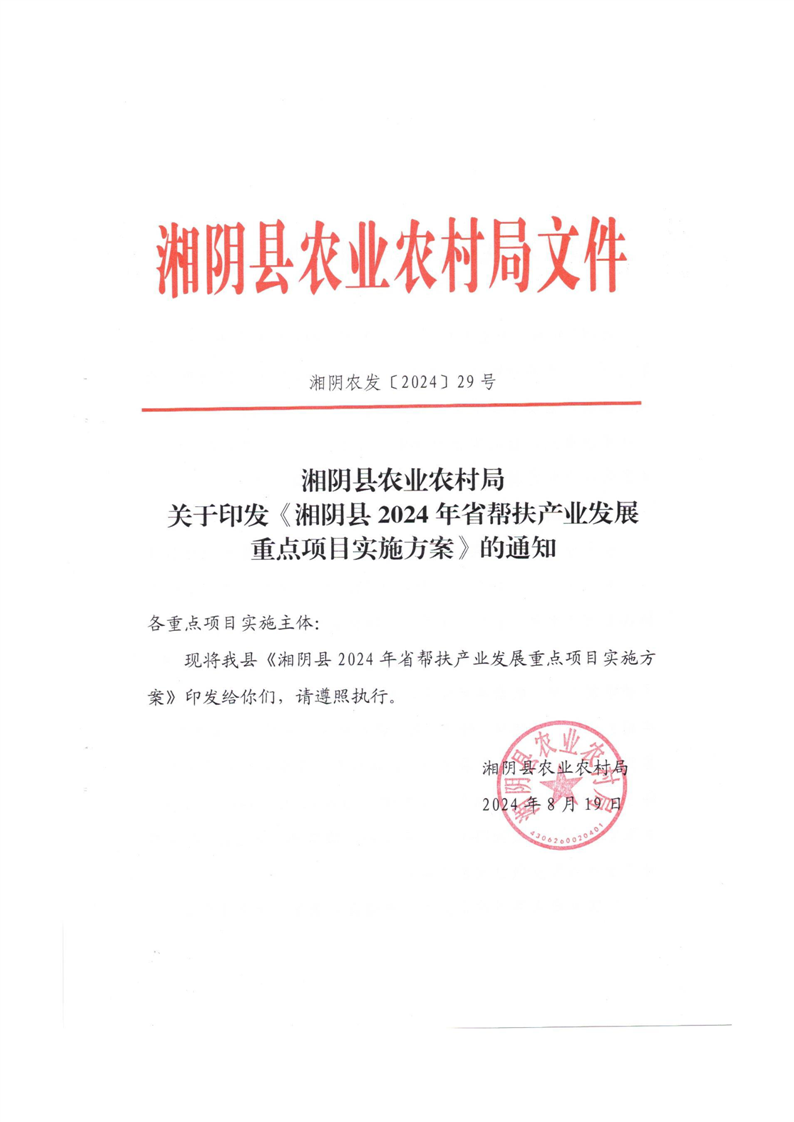 关于印发《湘阴县2024年省帮扶产业发展重点项目实施方案》的通知