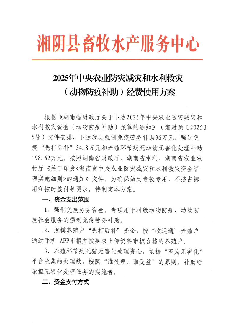 2025年中央农业防灾减灾和水利救灾(动物防疫补助)经费使用方案