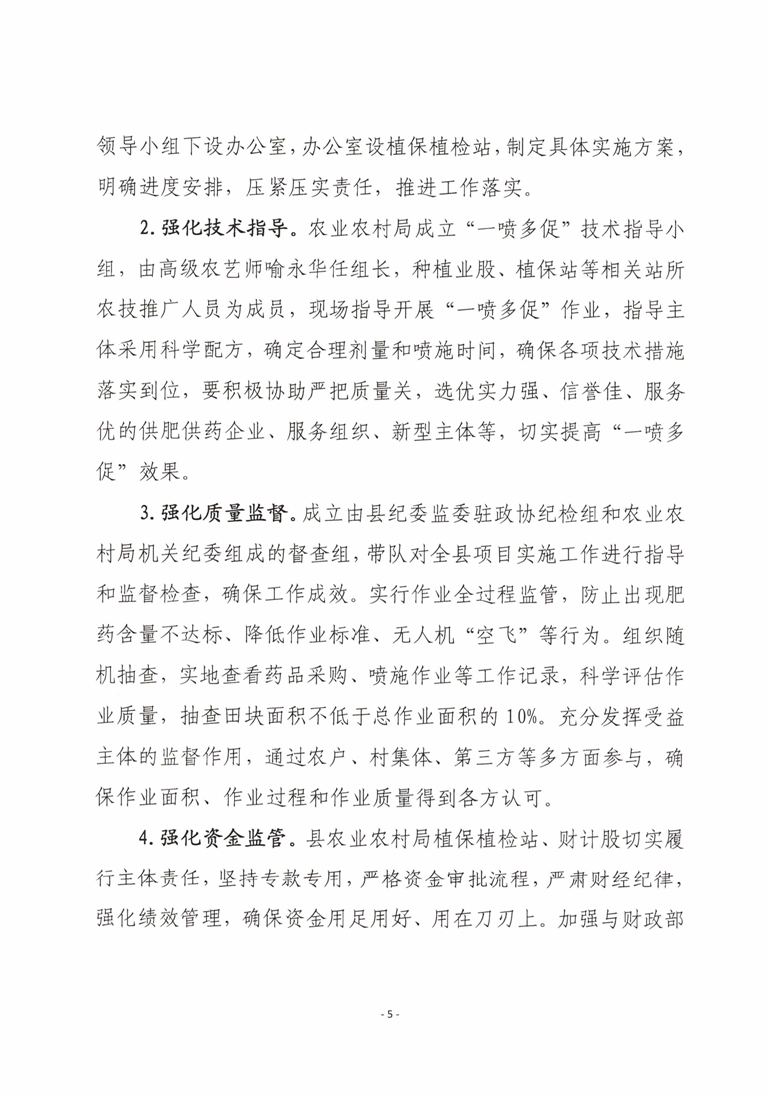 坚持“因地制宜、分类施策、精选药肥、科学喷施”原则,聚焦我县晚稻主产区,重点针对二化螟、稻飞虱、稻纵卷叶螟、纹枯病、稻瘟病等重大病虫害和高温干旱、寒露风等自然灾害,因地制宜实施晚稻“一喷多促”作业面积5.17万亩,最大限度减少灾害损失,力争实现大面积稳产增产。