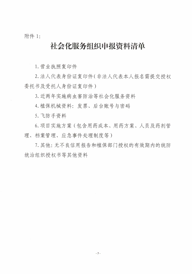 7.其他:无不良信用报告和植保部门授权的有效期内的统防统治组织授权书等其他资料