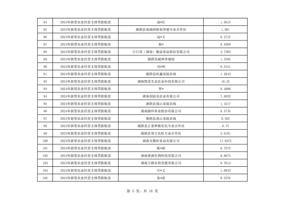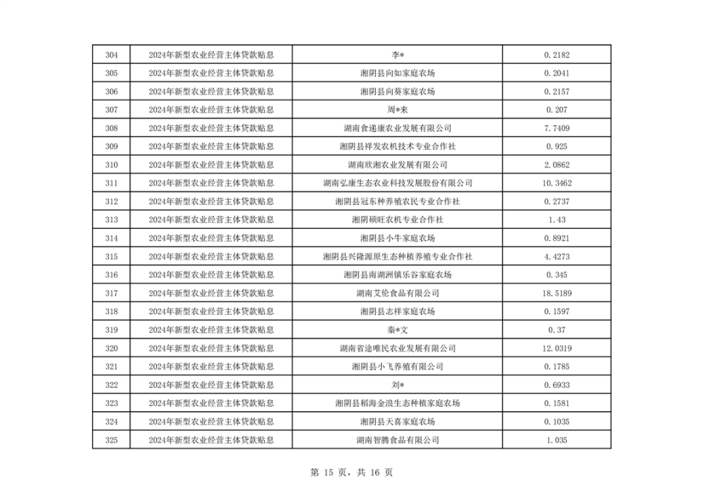 关于湘阴县2024年度新型农业经营主体贷款贴息资金安排的公示