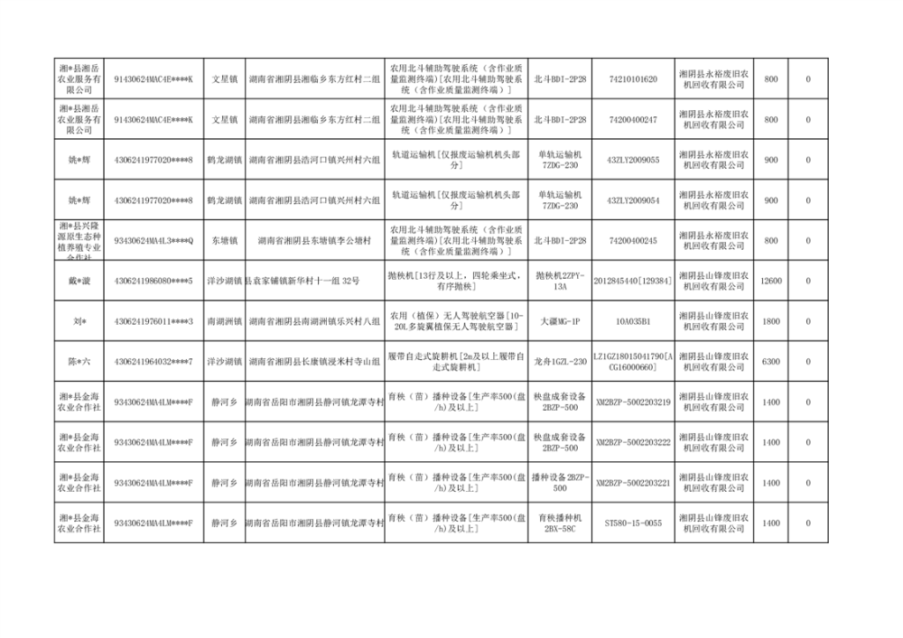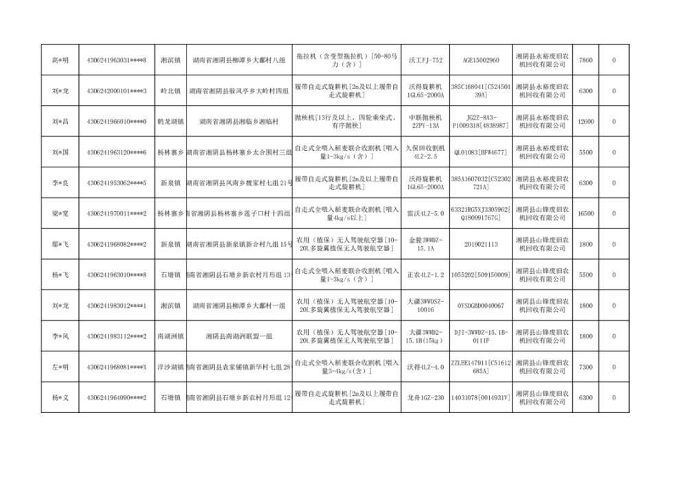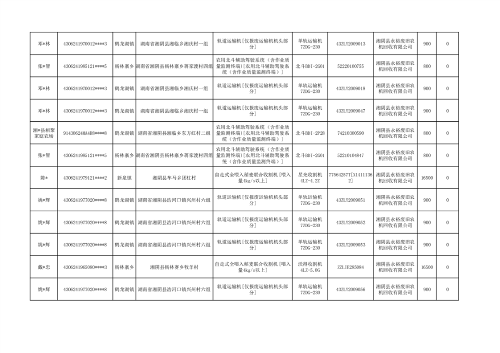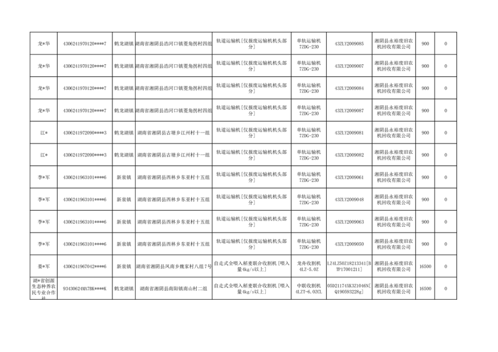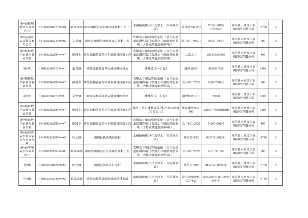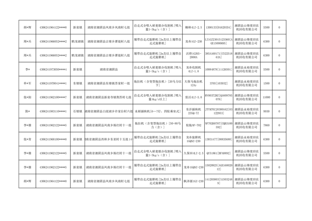 2024年湘阴县农机报废补贴资金公示(第四批)