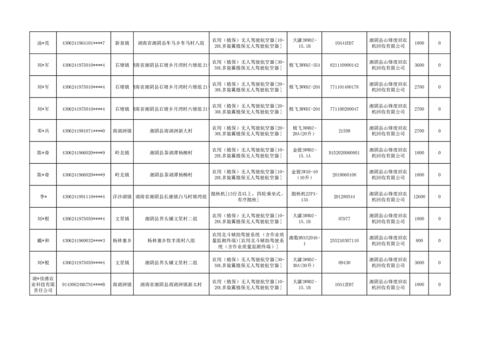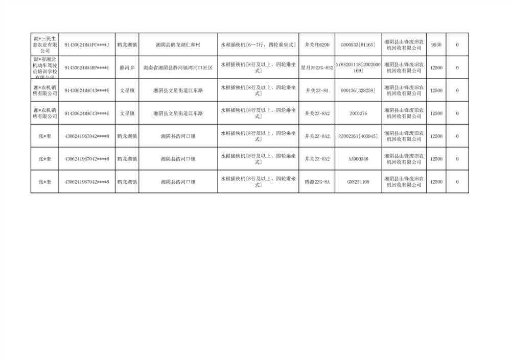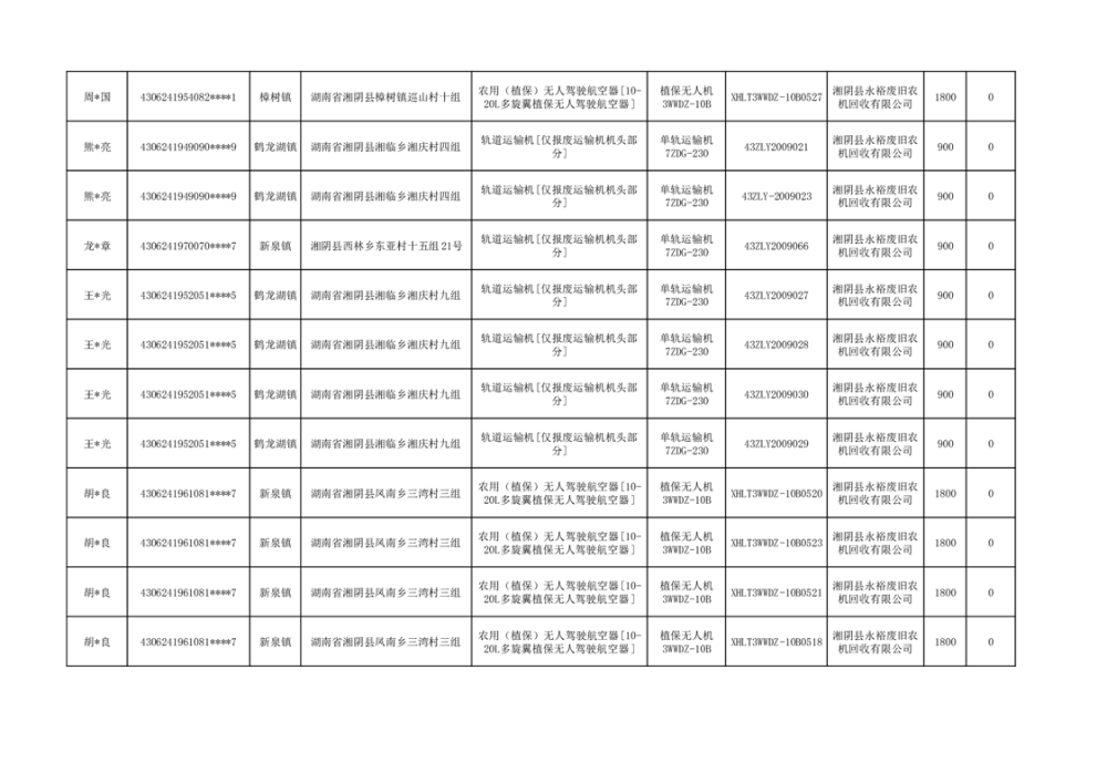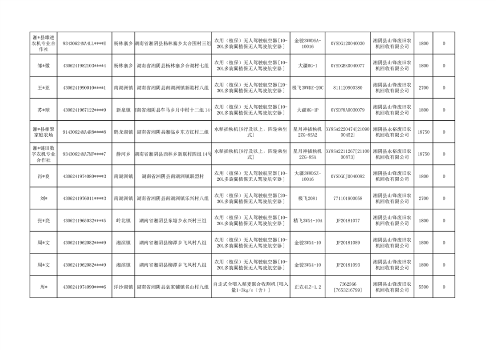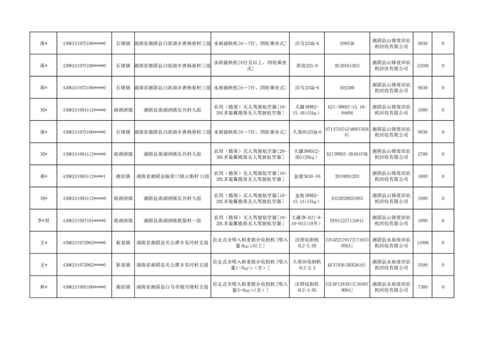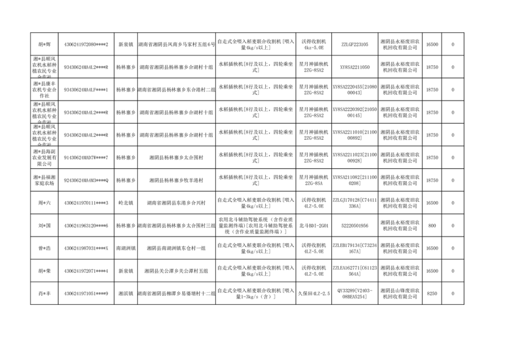 2024年湘阴县农机报废补贴资金公示(第四批)