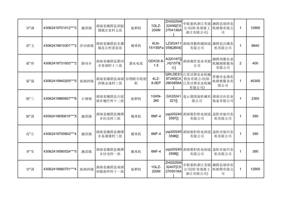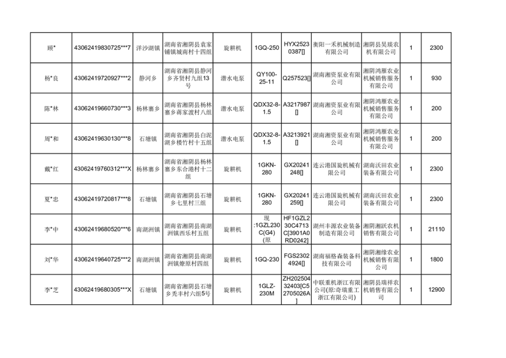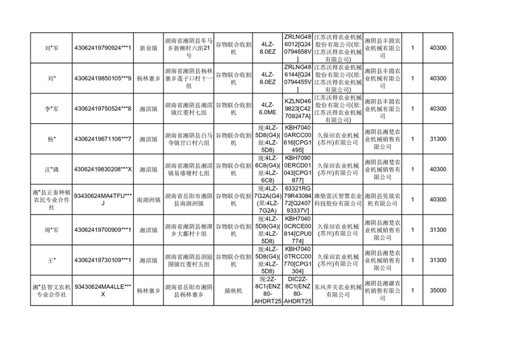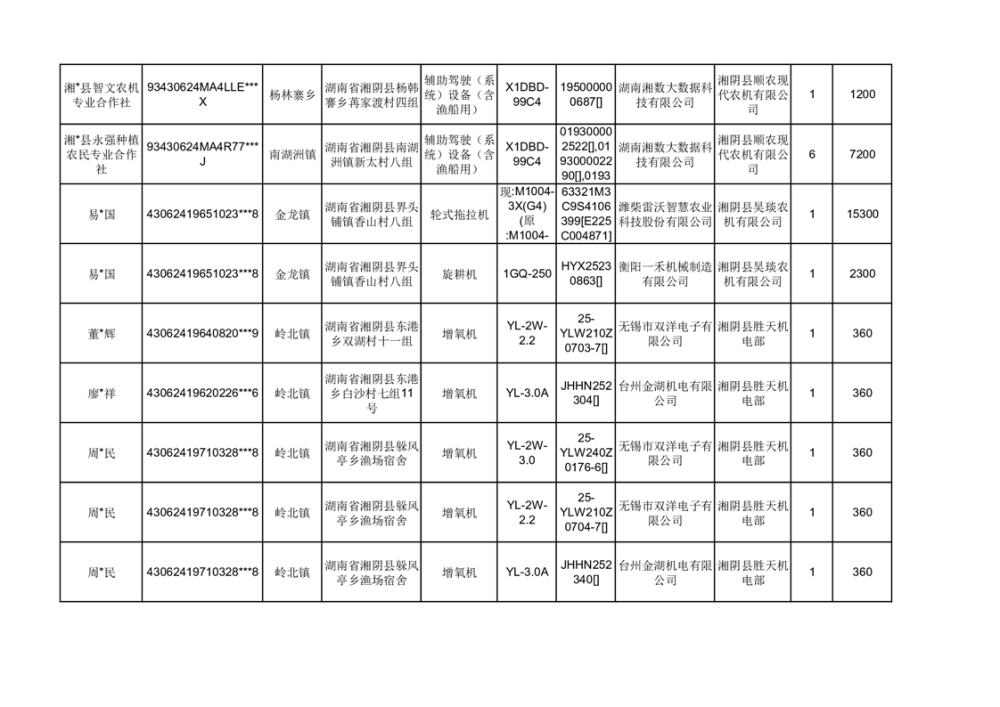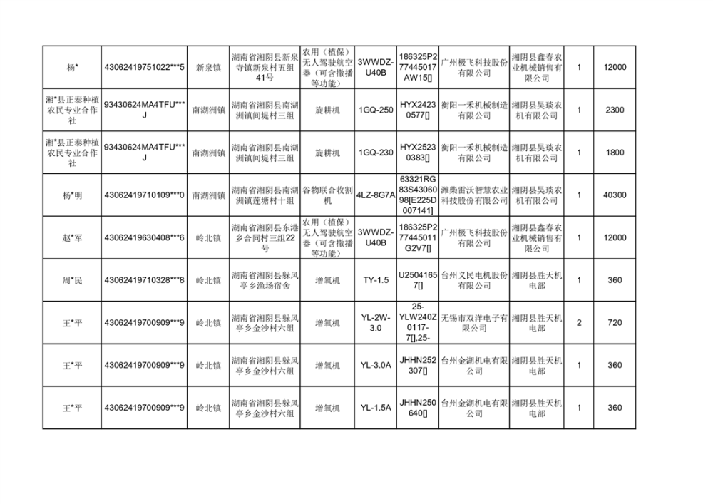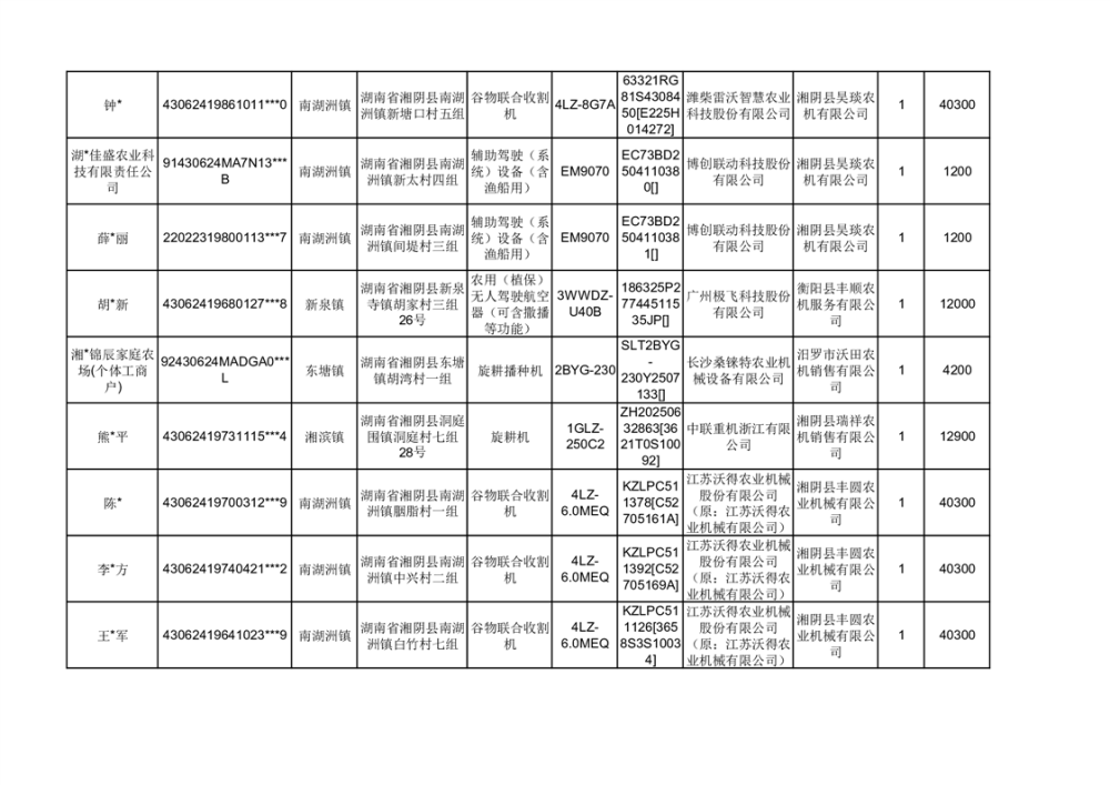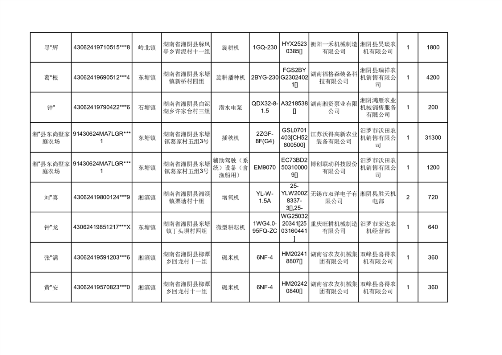 2025年湘阴县农机购置补贴资金公示(第二批)