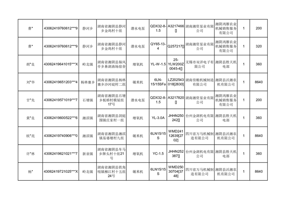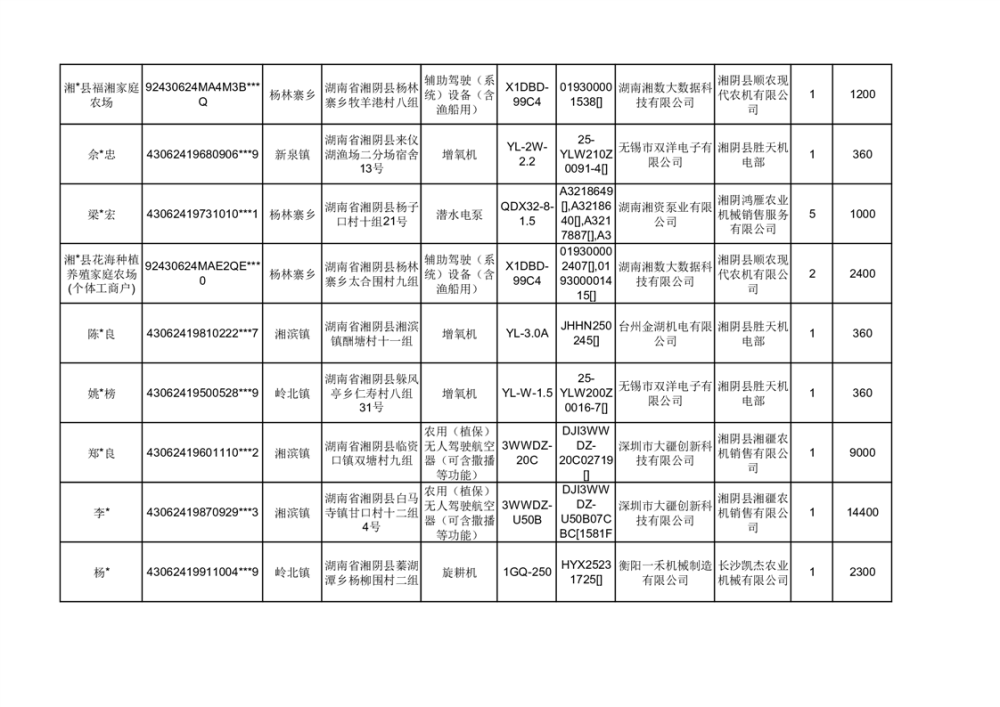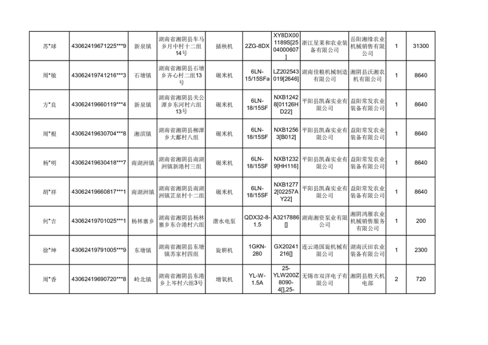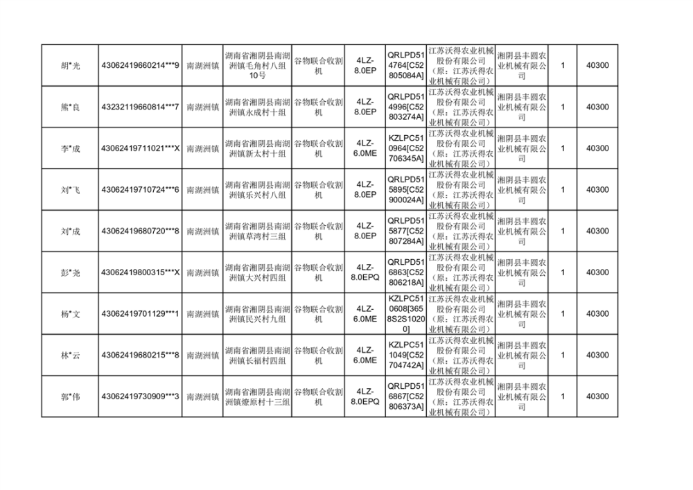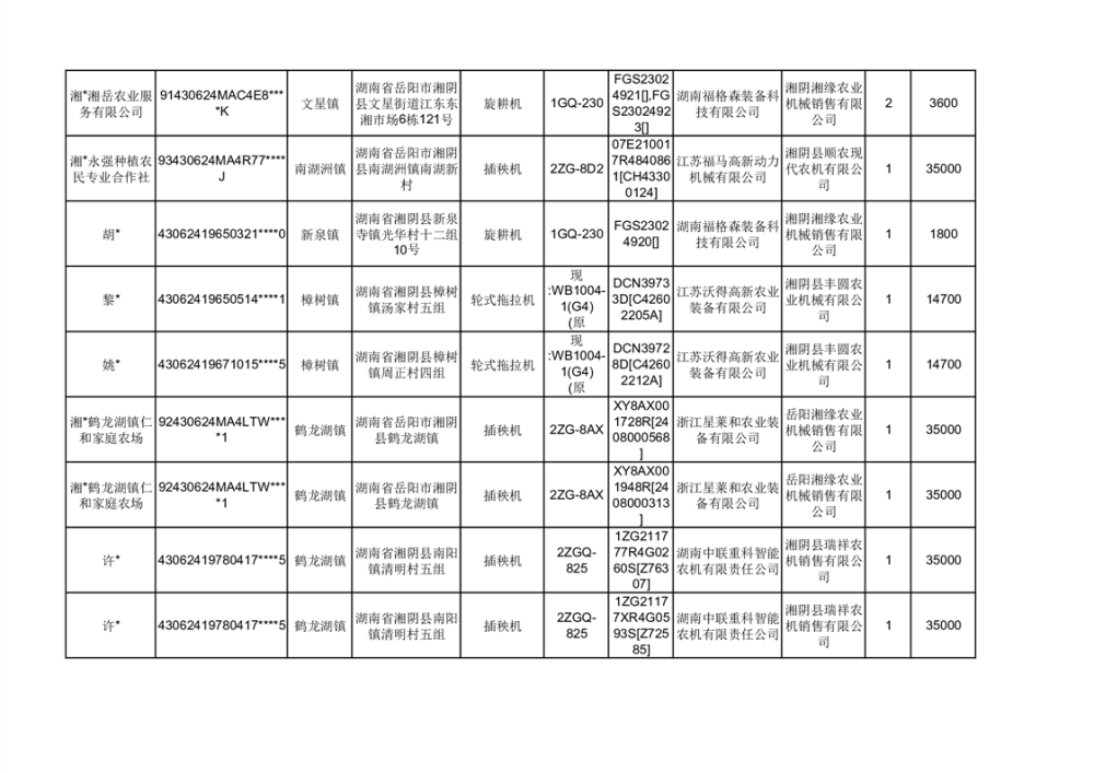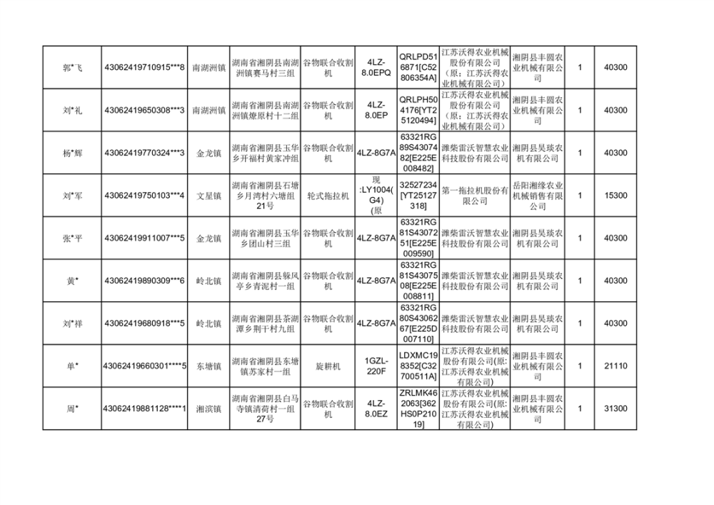 2025年湘阴县农机购置补贴资金公示(第二批)