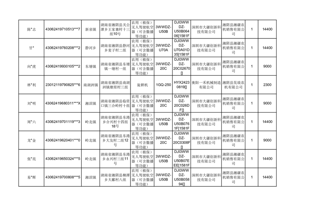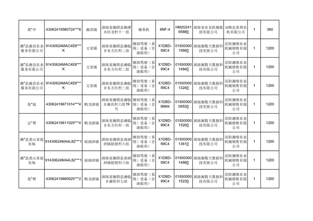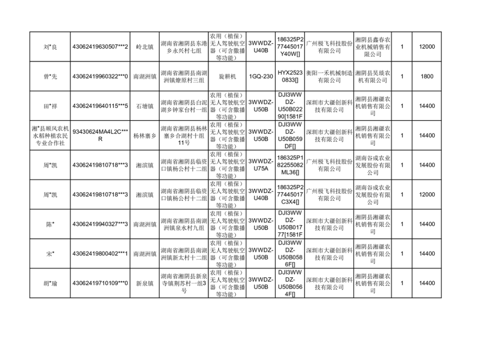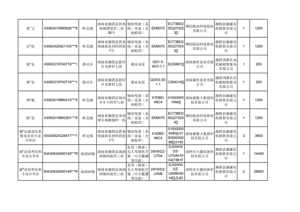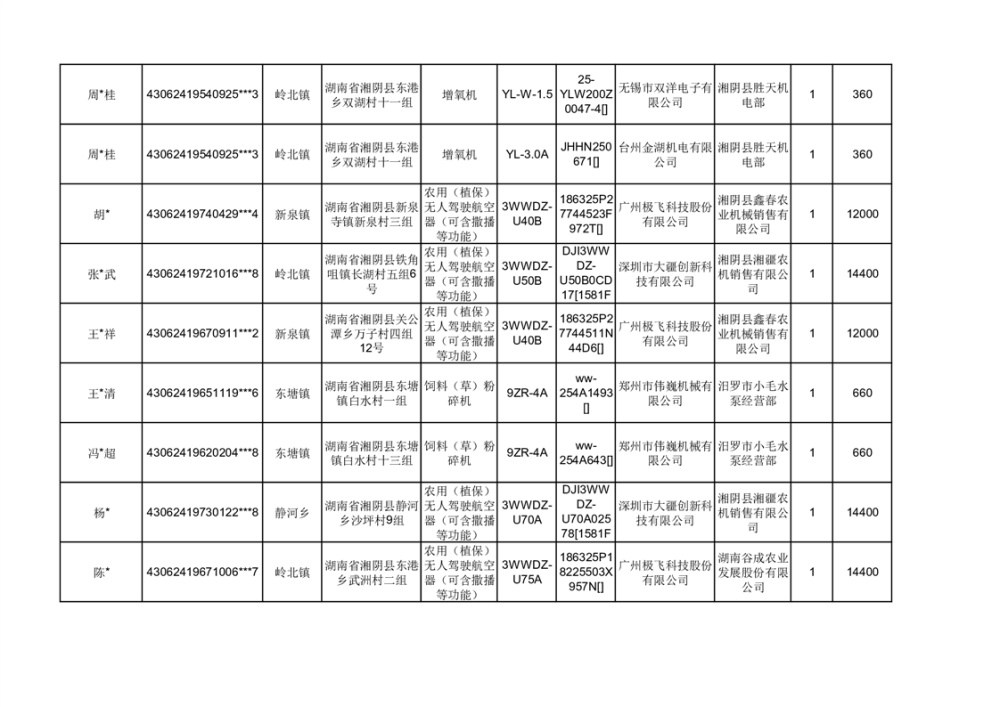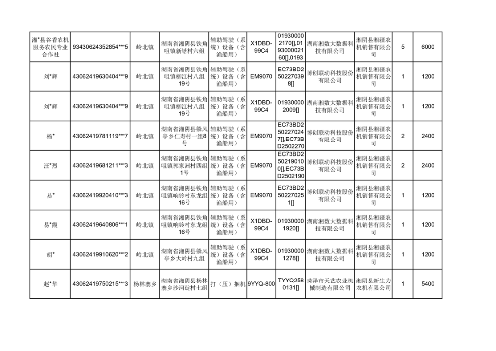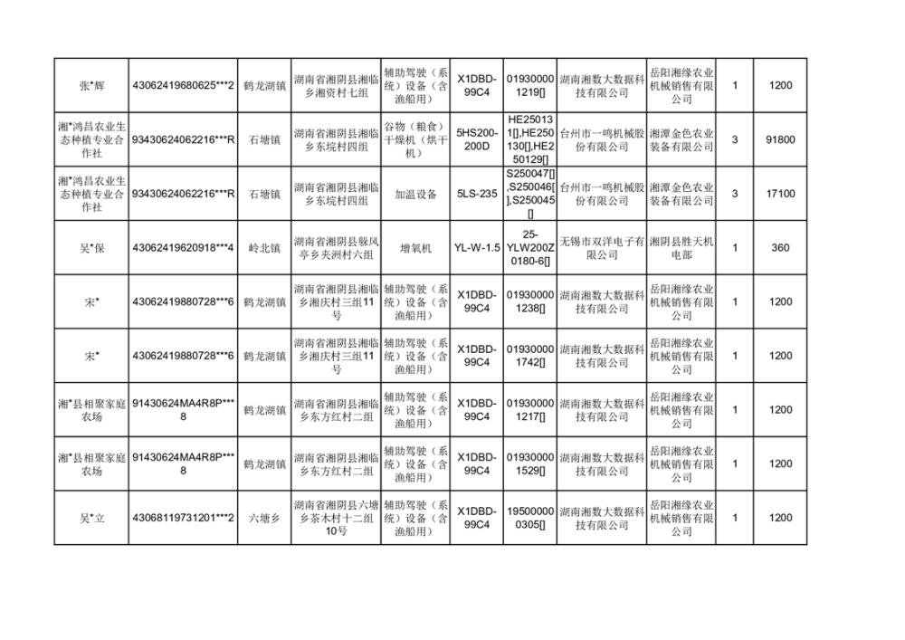 2025年湘阴县农机购置补贴资金公示(第二批)