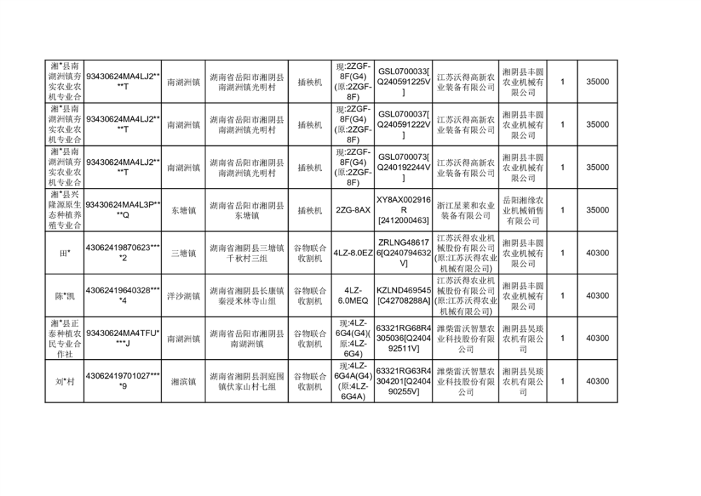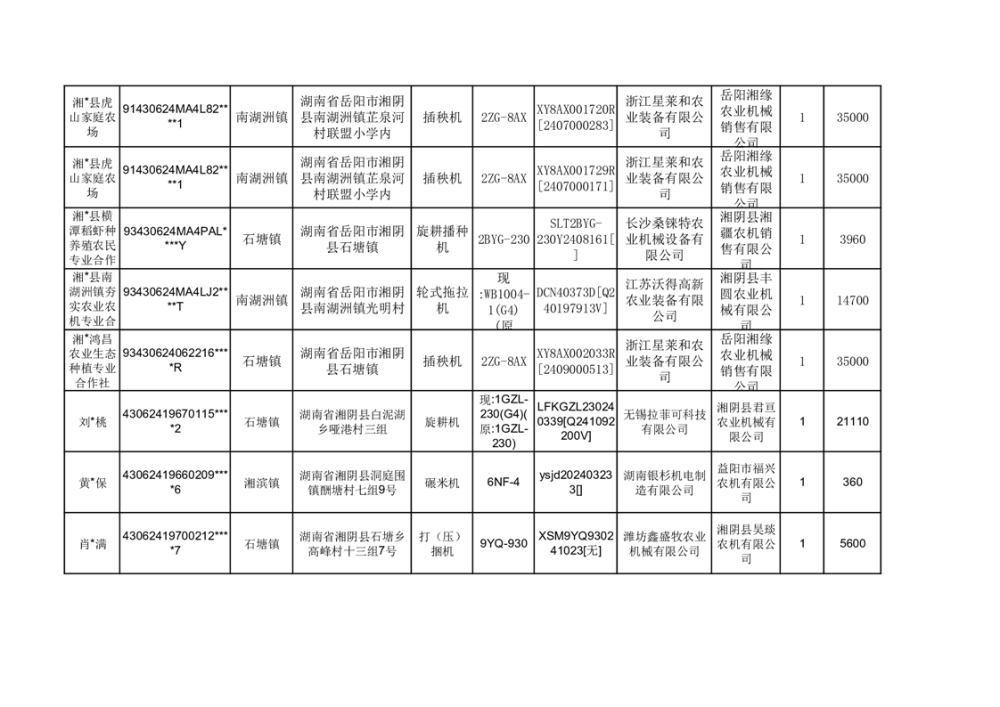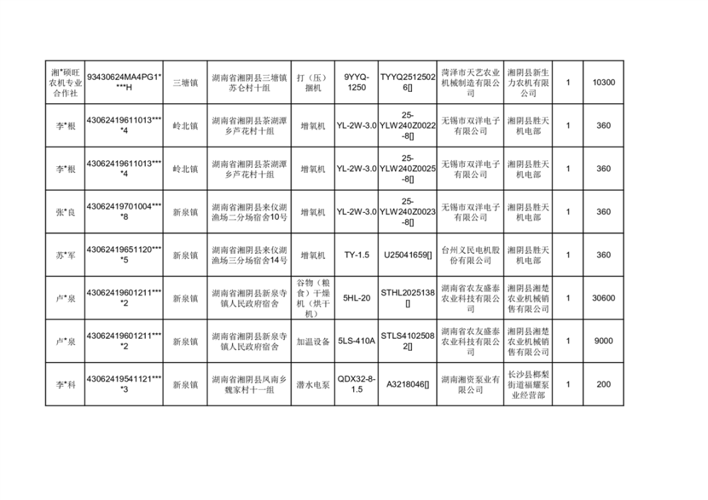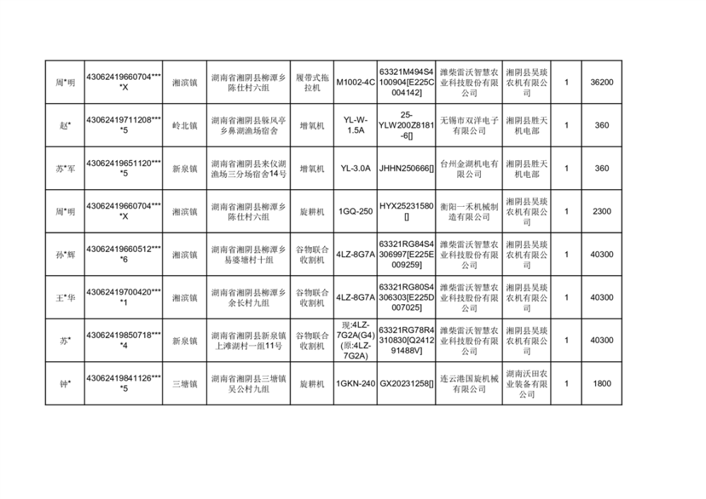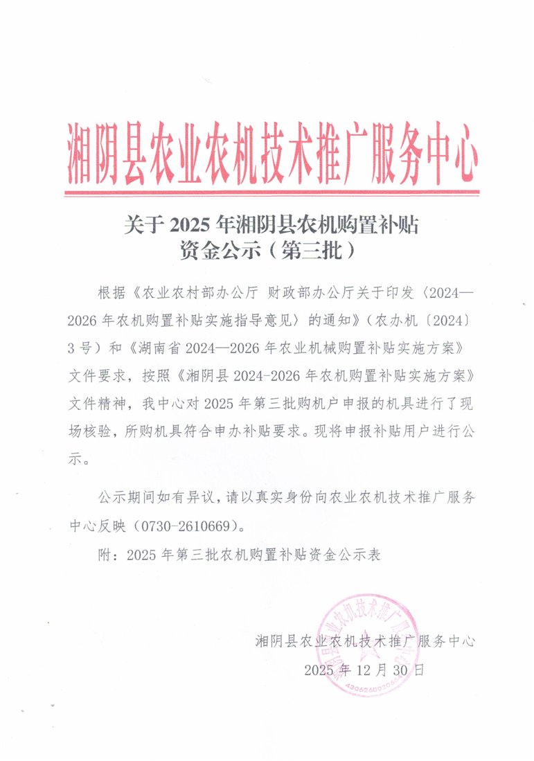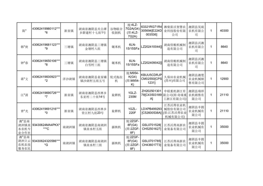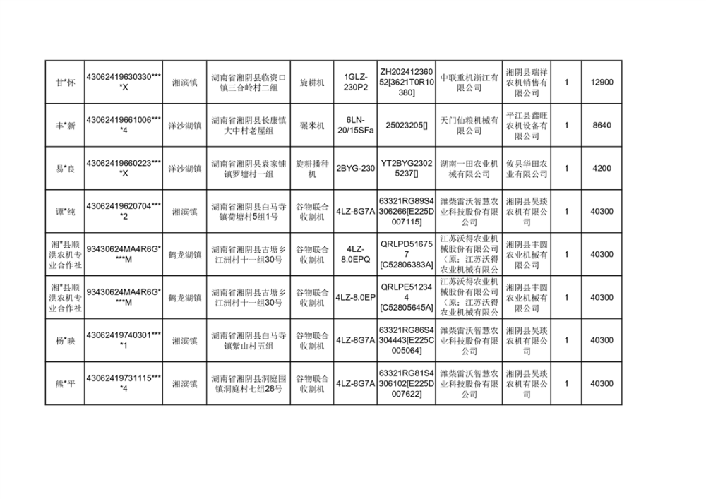 关于2025年湘阴县农机购置补贴资金公示(第三批)
