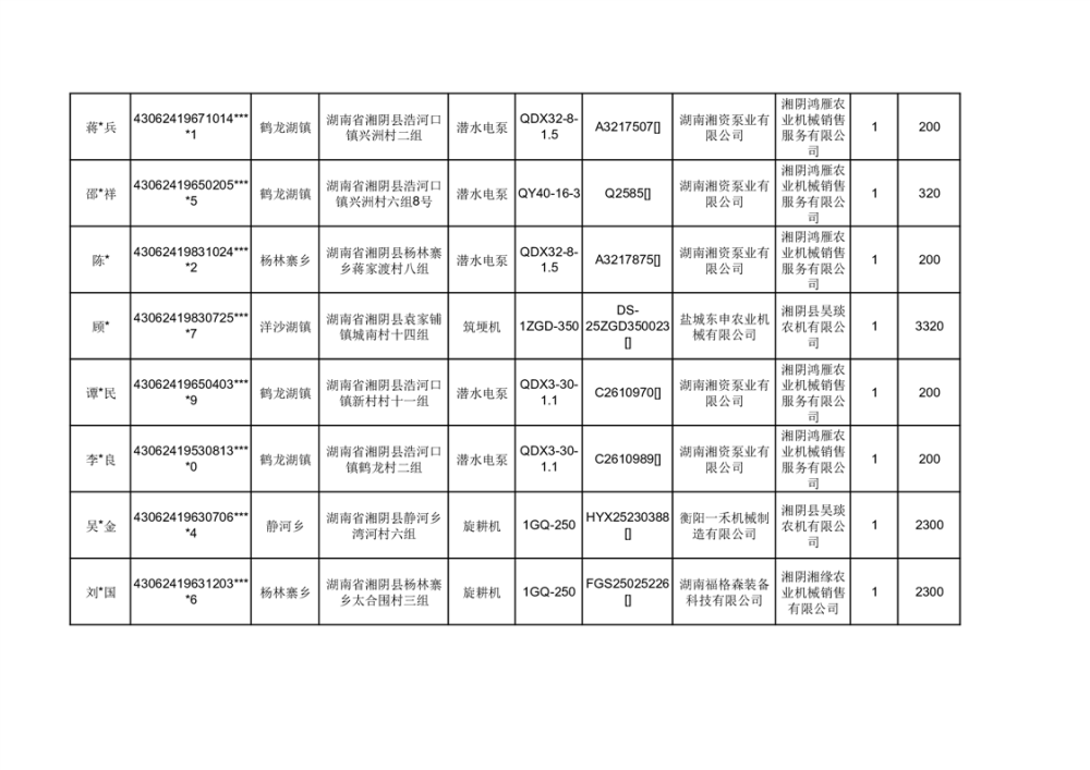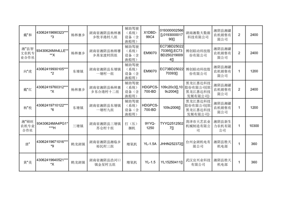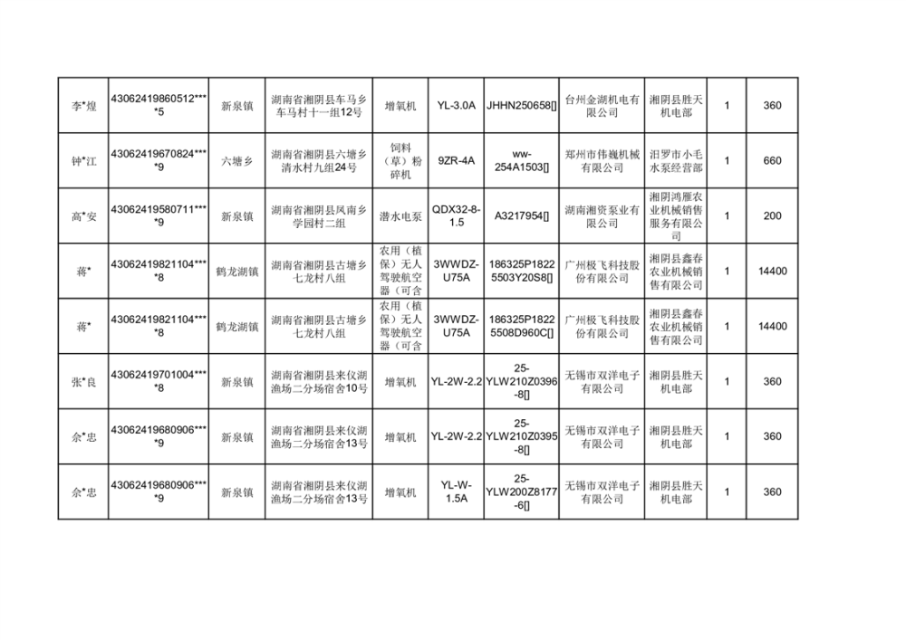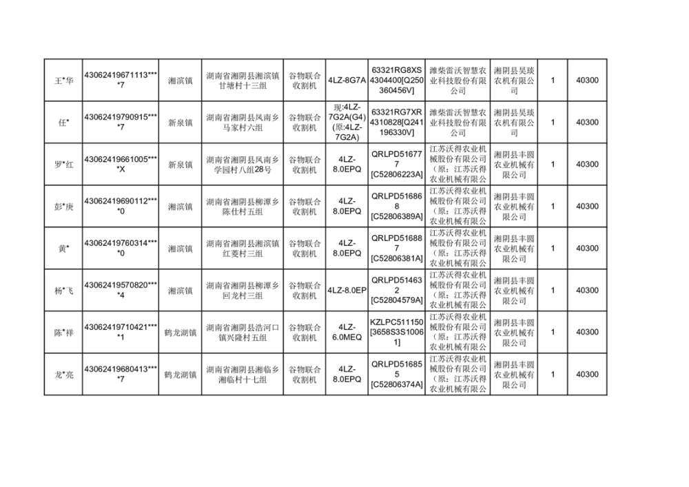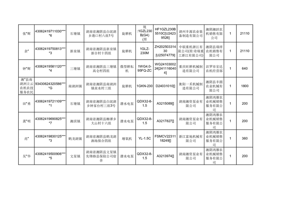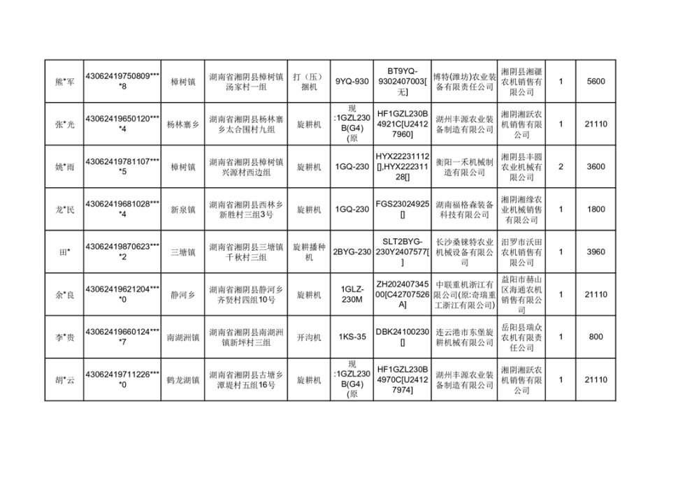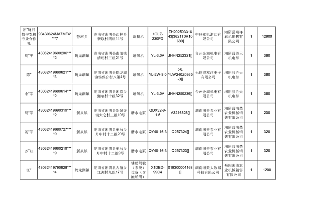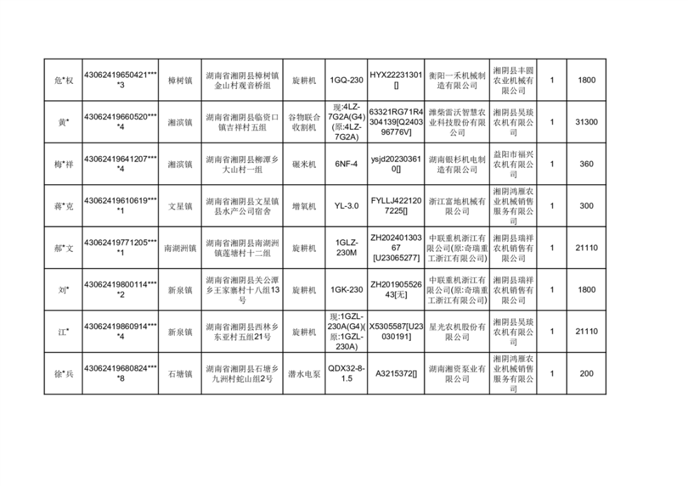 关于2025年湘阴县农机购置补贴资金公示(第三批)
