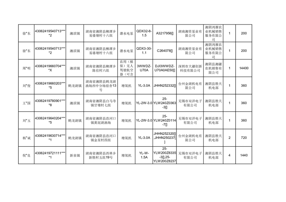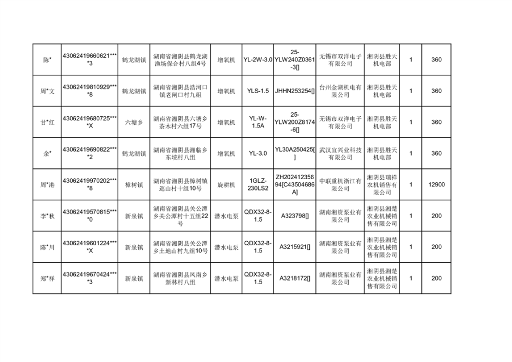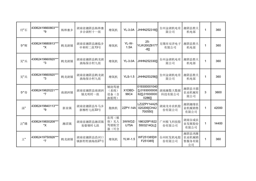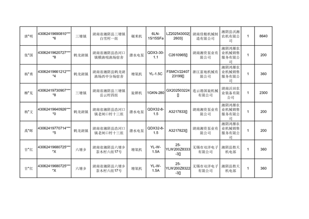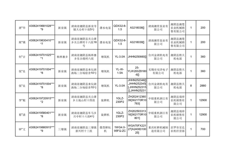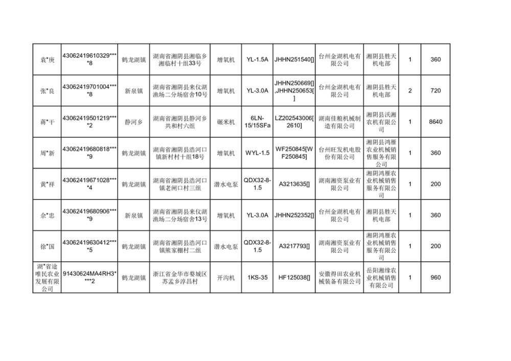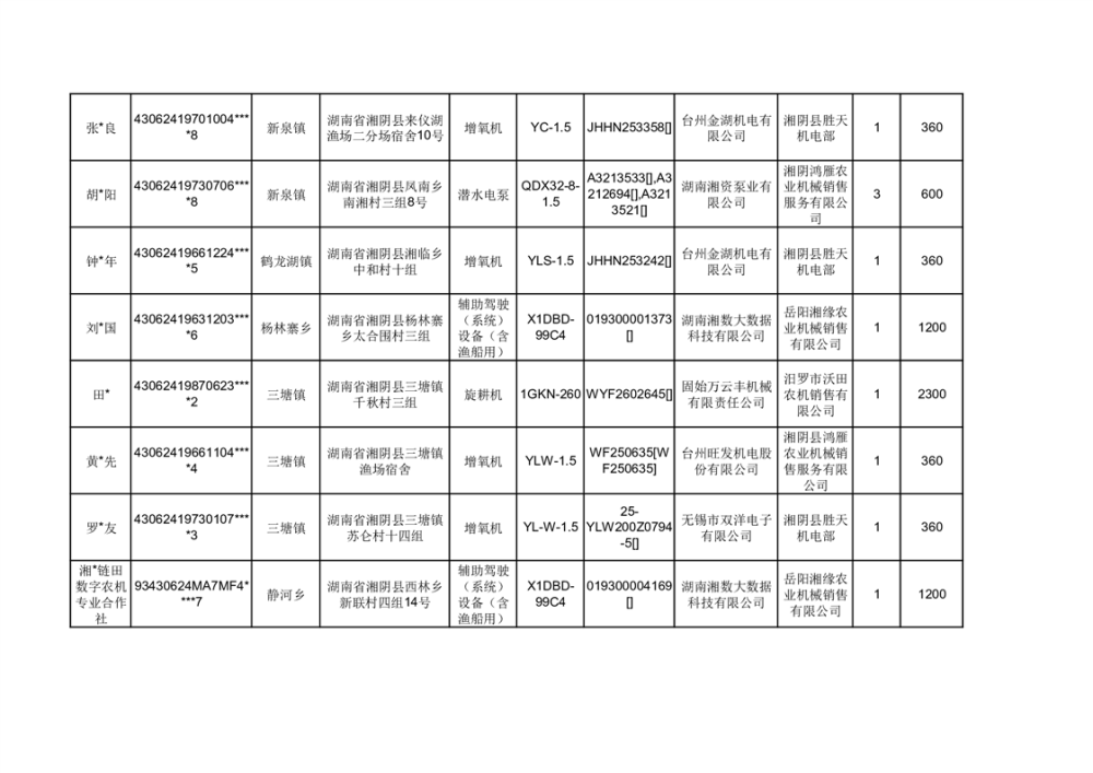 关于2025年湘阴县农机购置补贴资金公示(第三批)