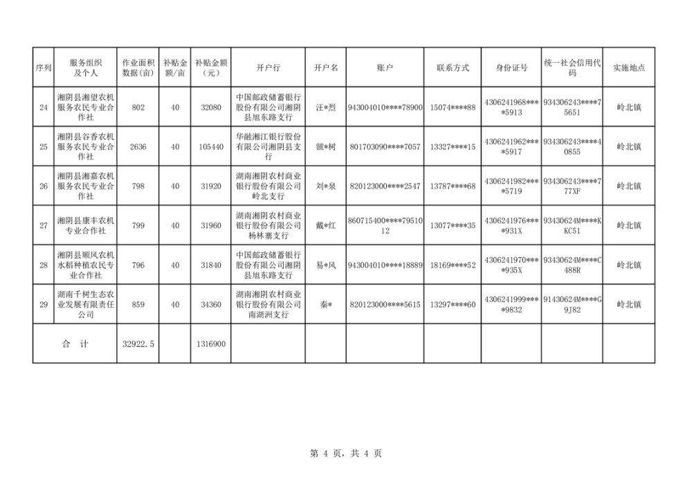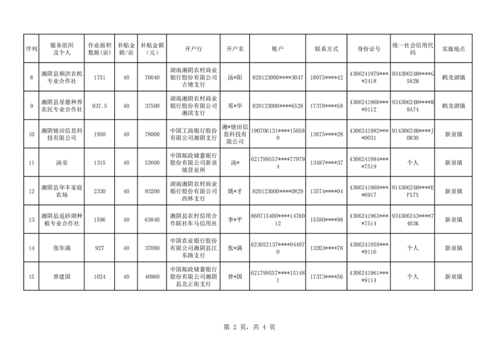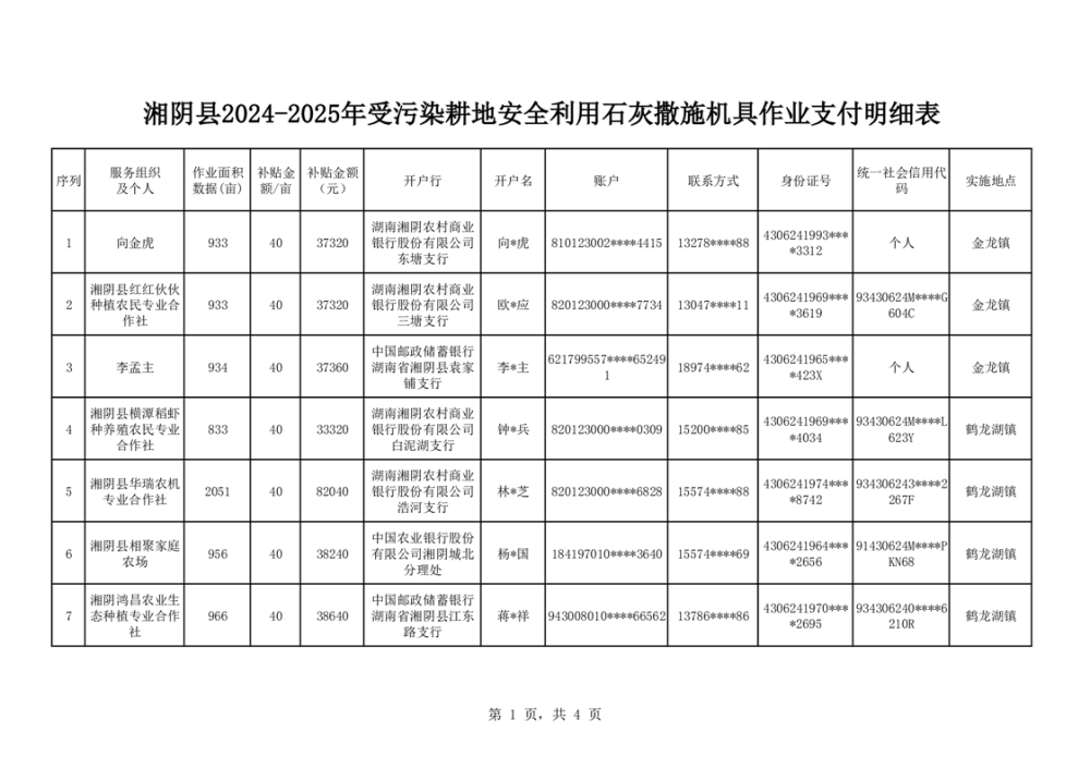 湘阴县2024—2025年受污染耕地安全利用石灰撒施机具作业补贴资金公示