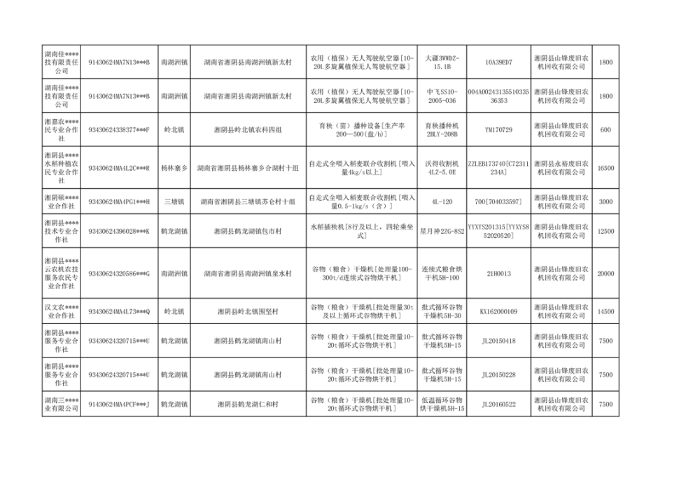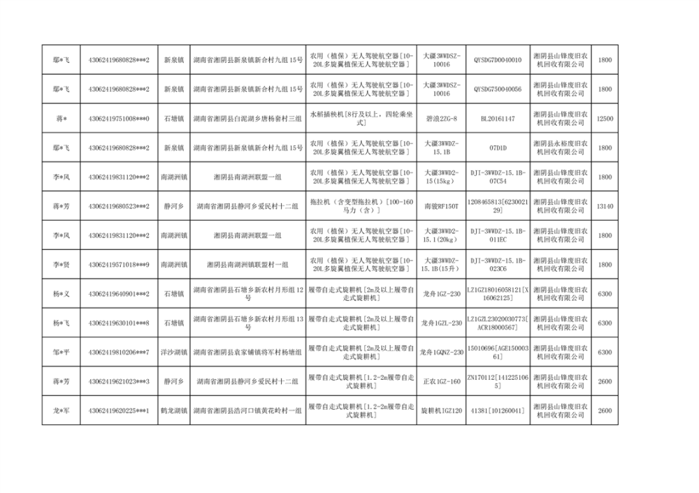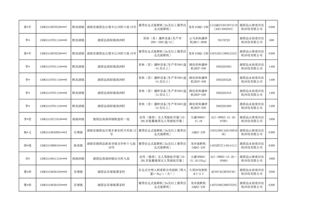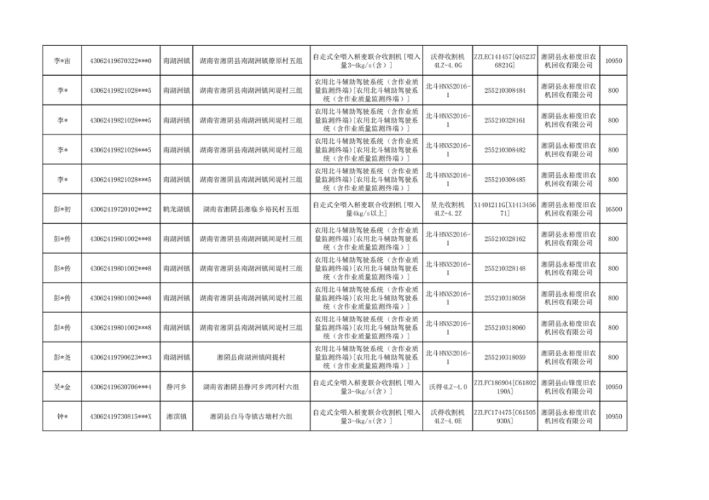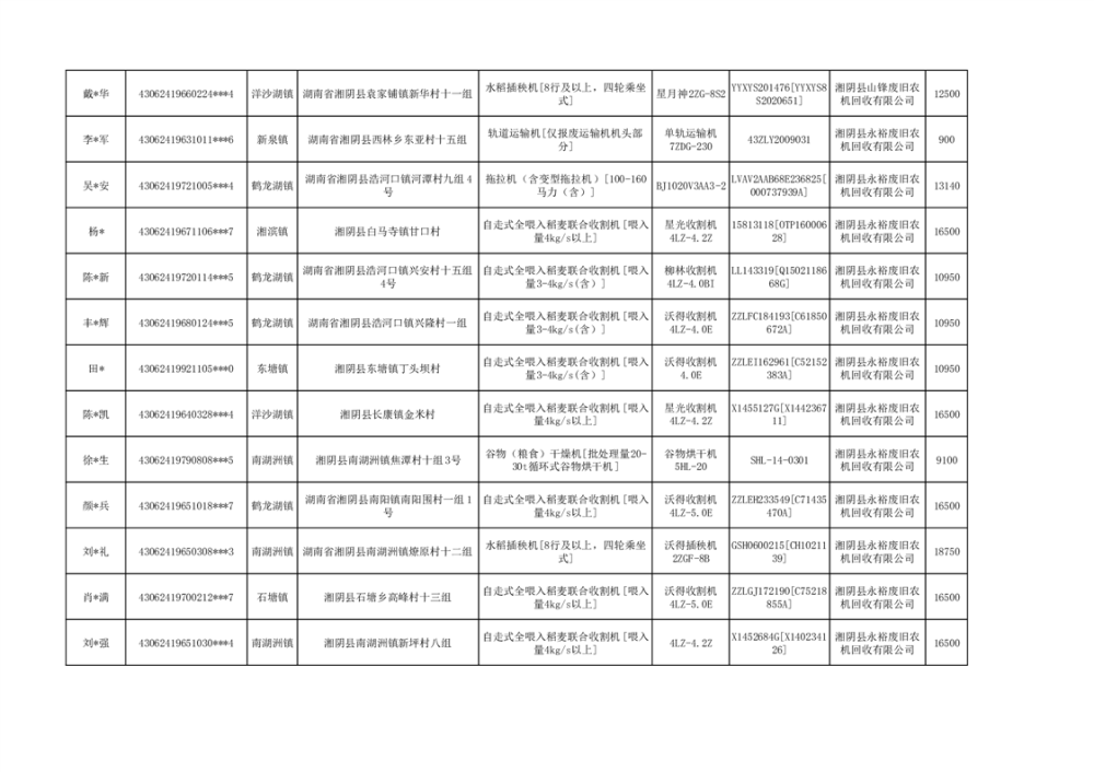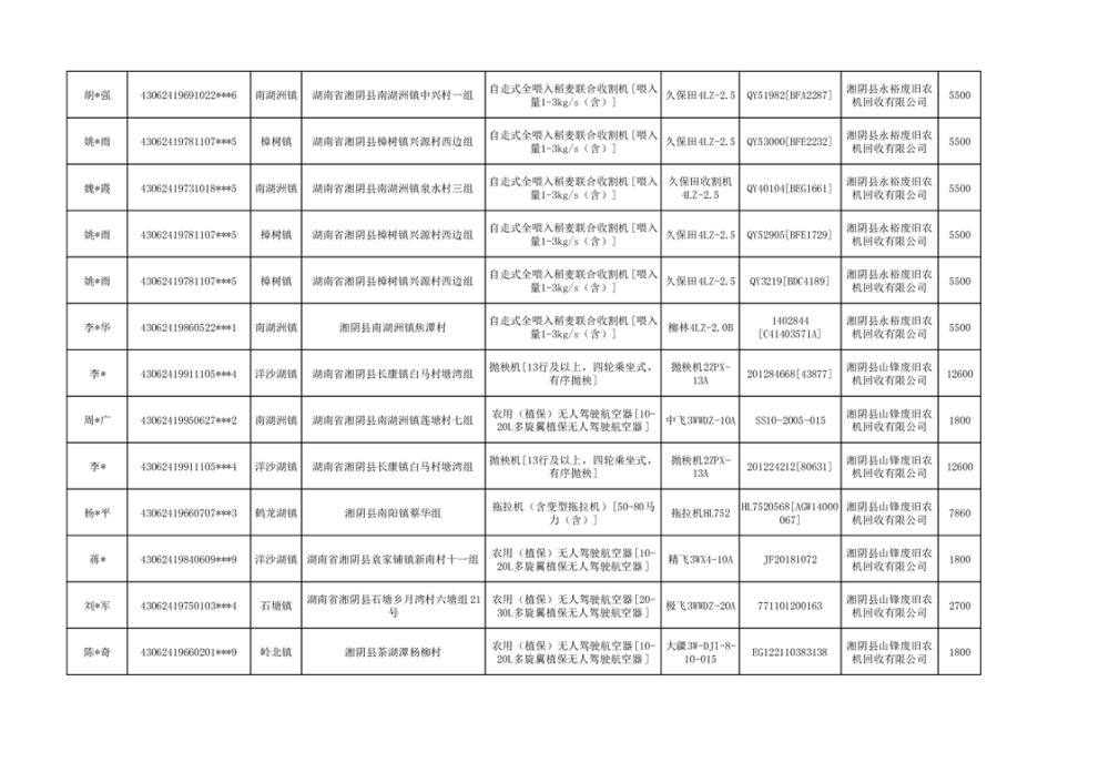 关于2024年湘阴县农机报废补贴资金公示(第五批)