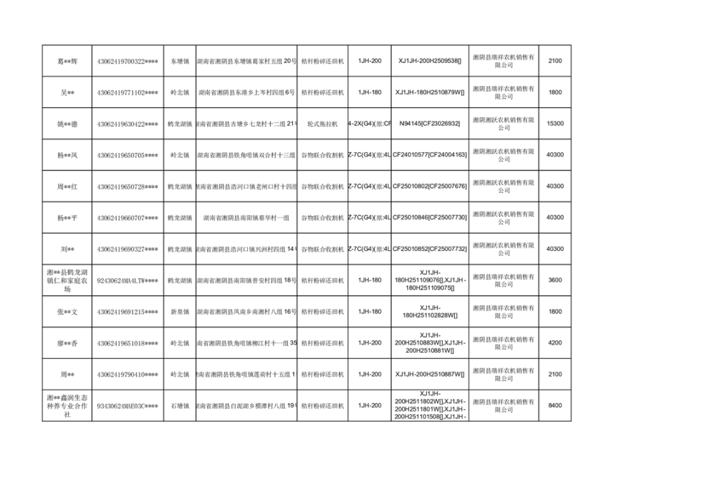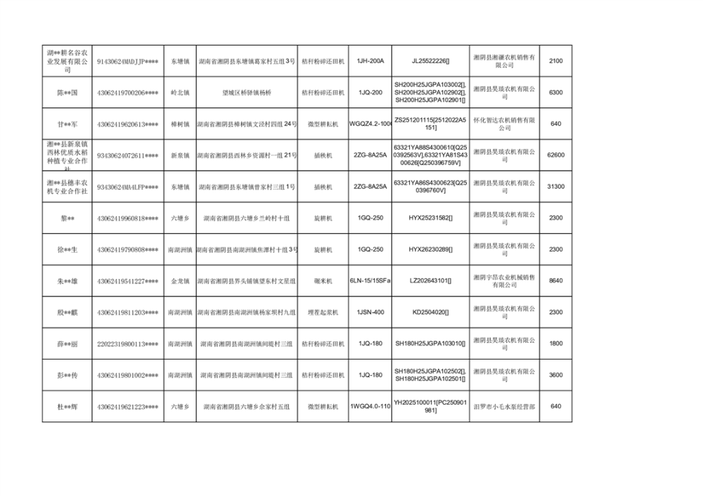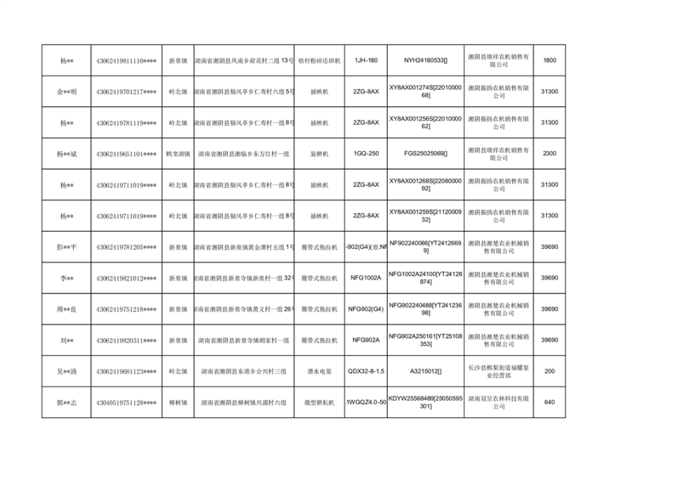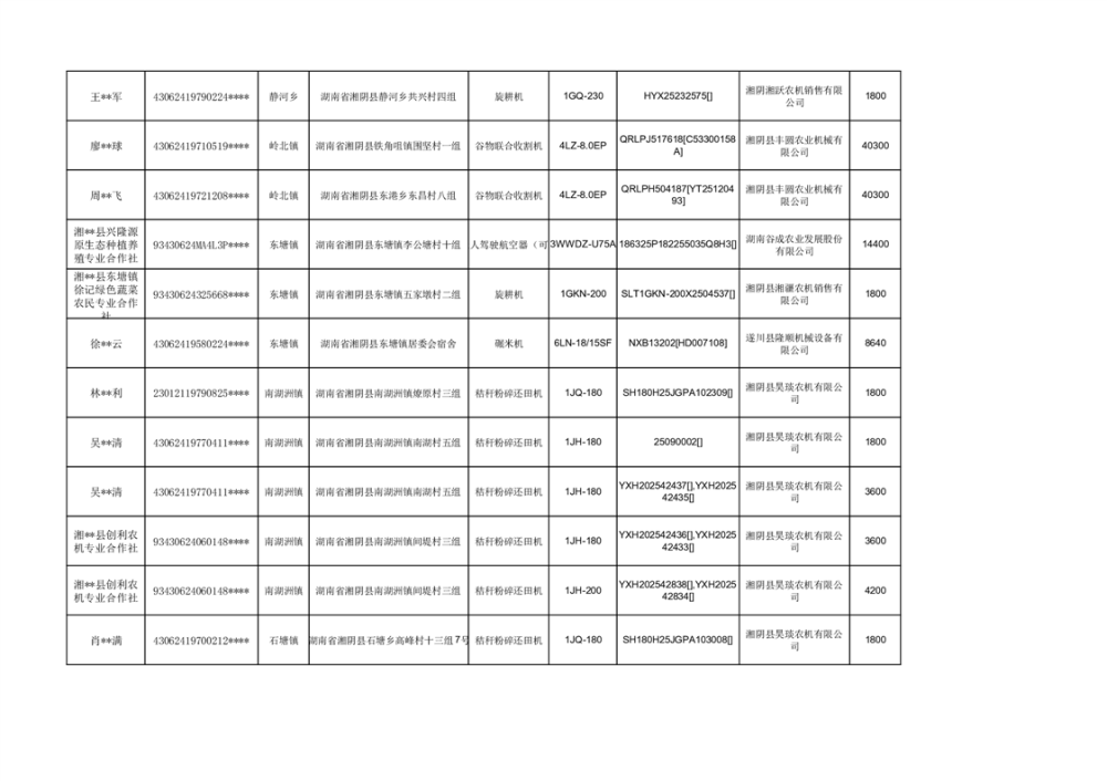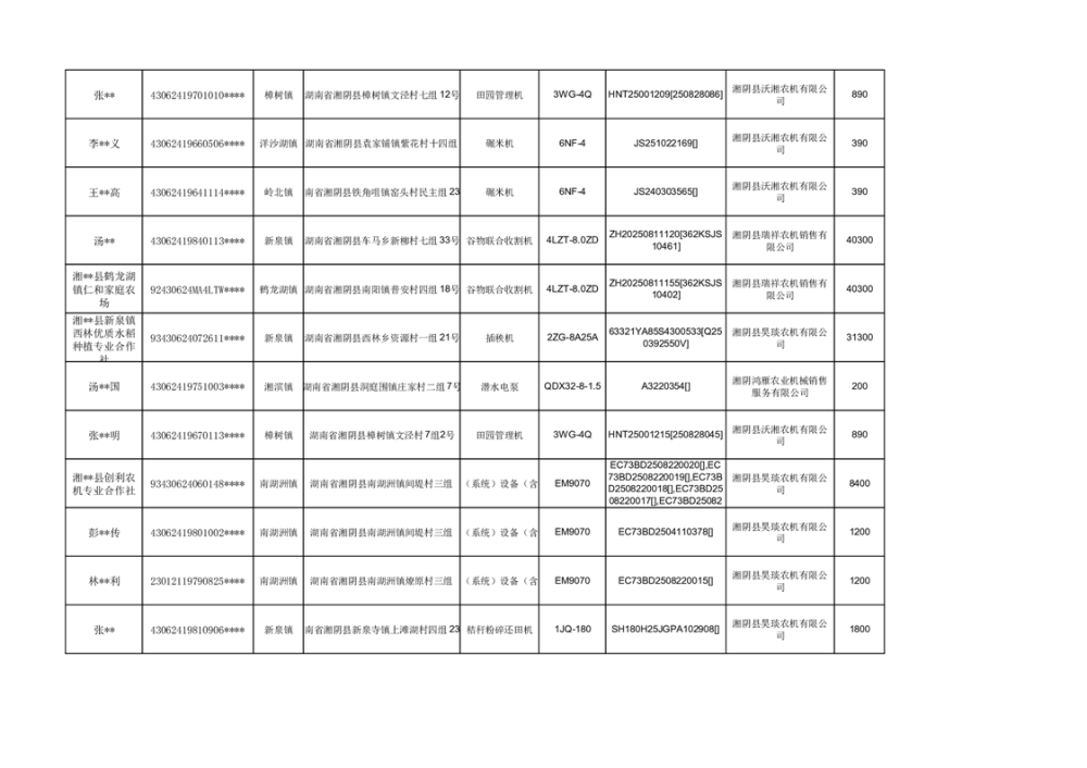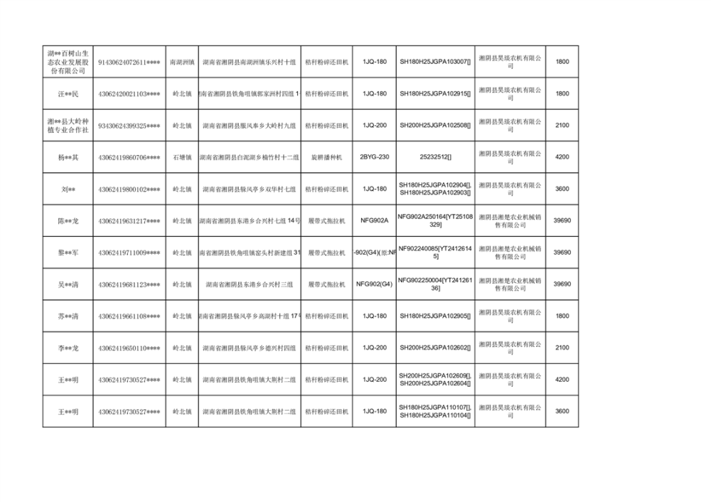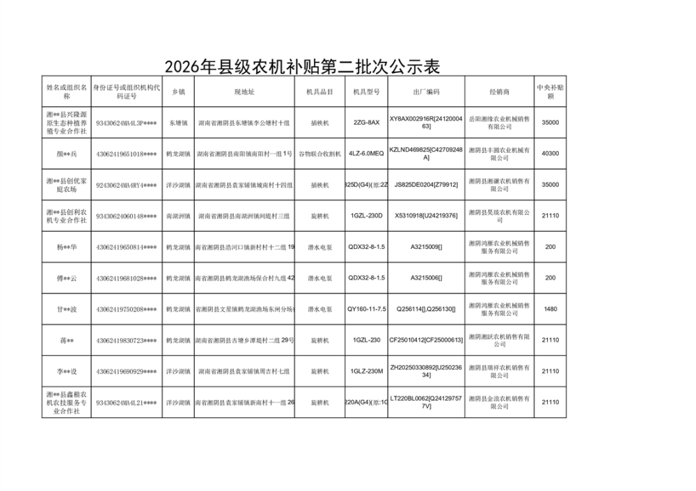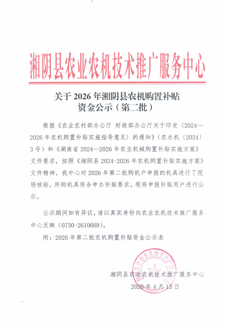 关于2026年湘阴县农机购置补贴资金公示(第二批)