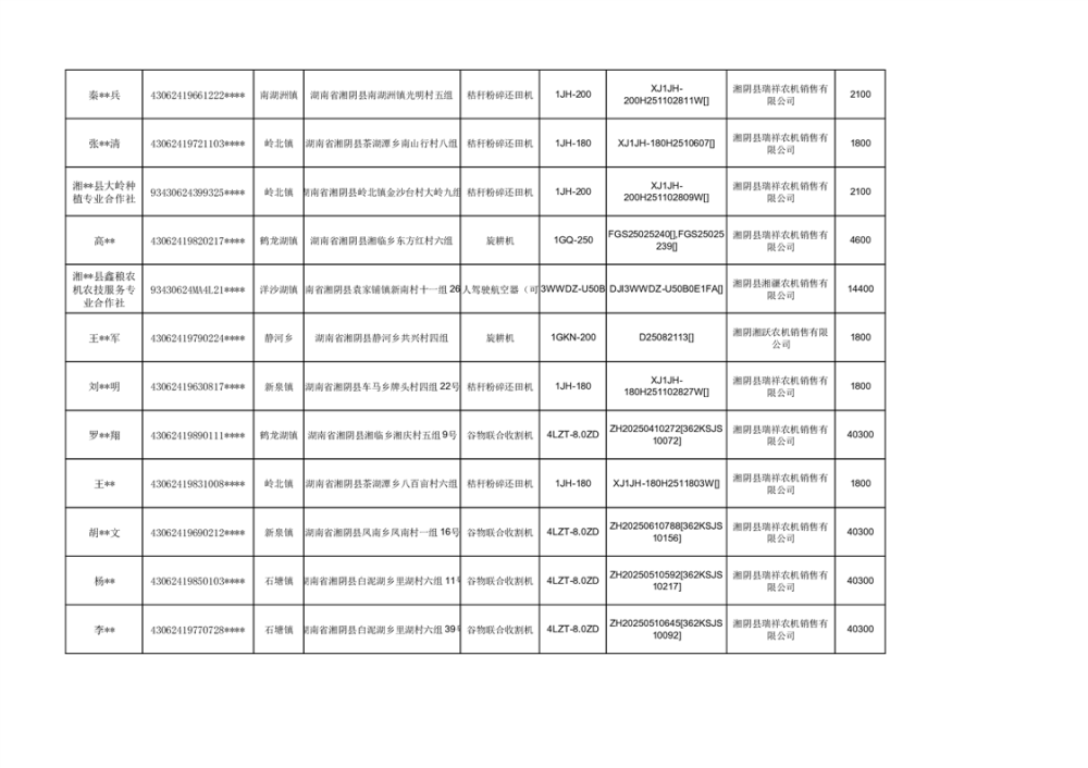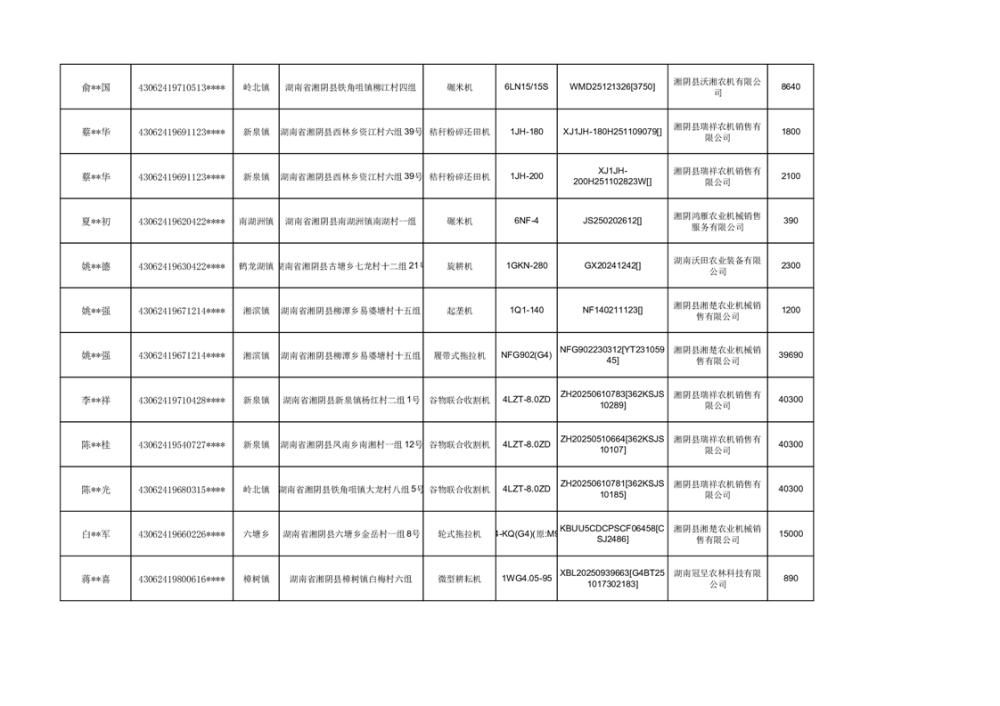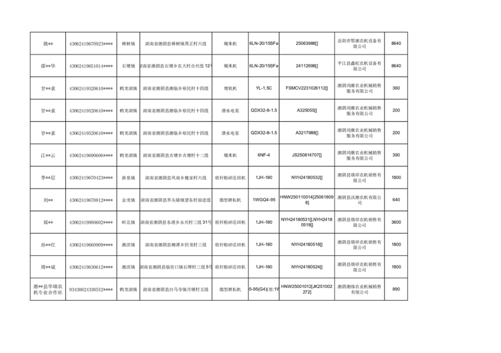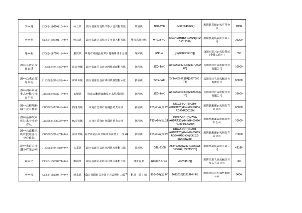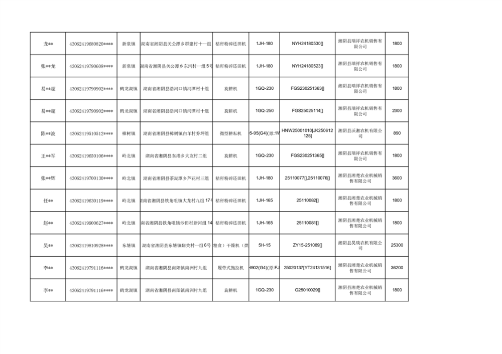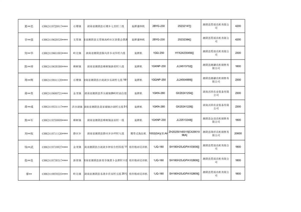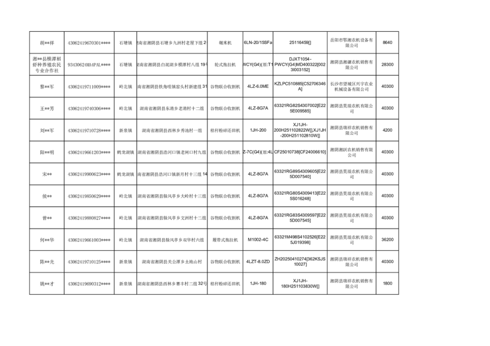 关于2026年湘阴县农机购置补贴资金公示(第二批)