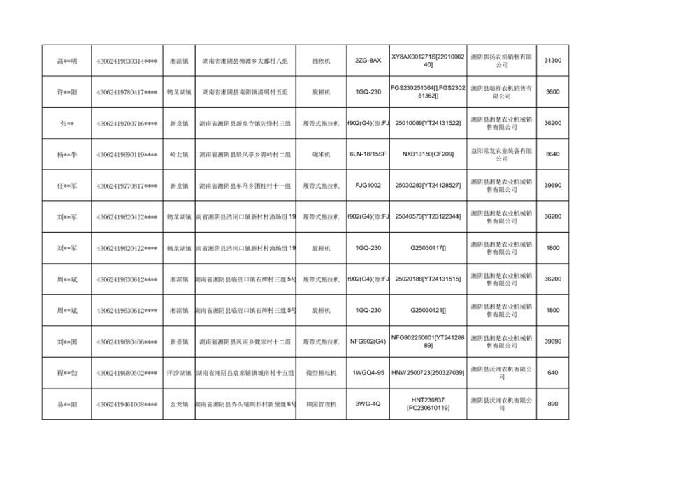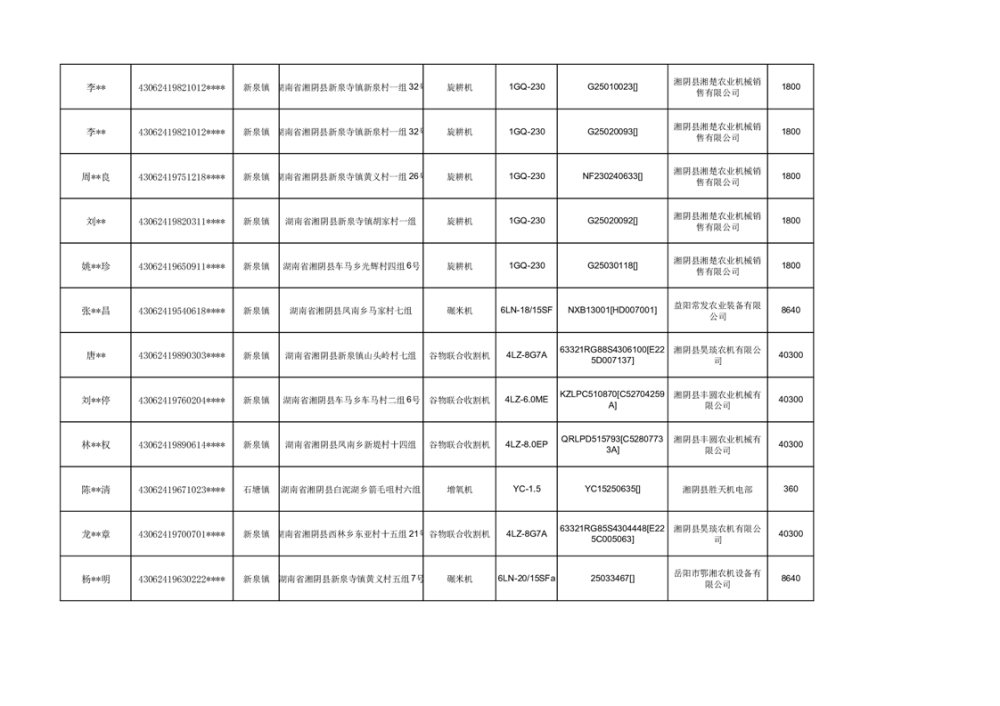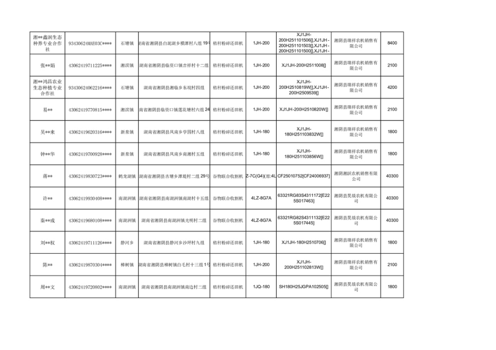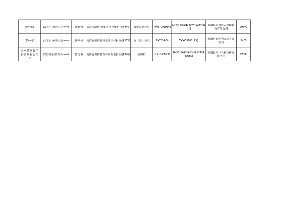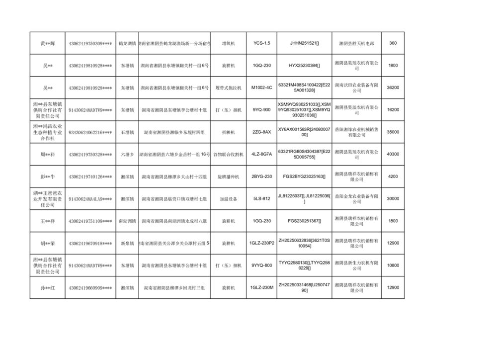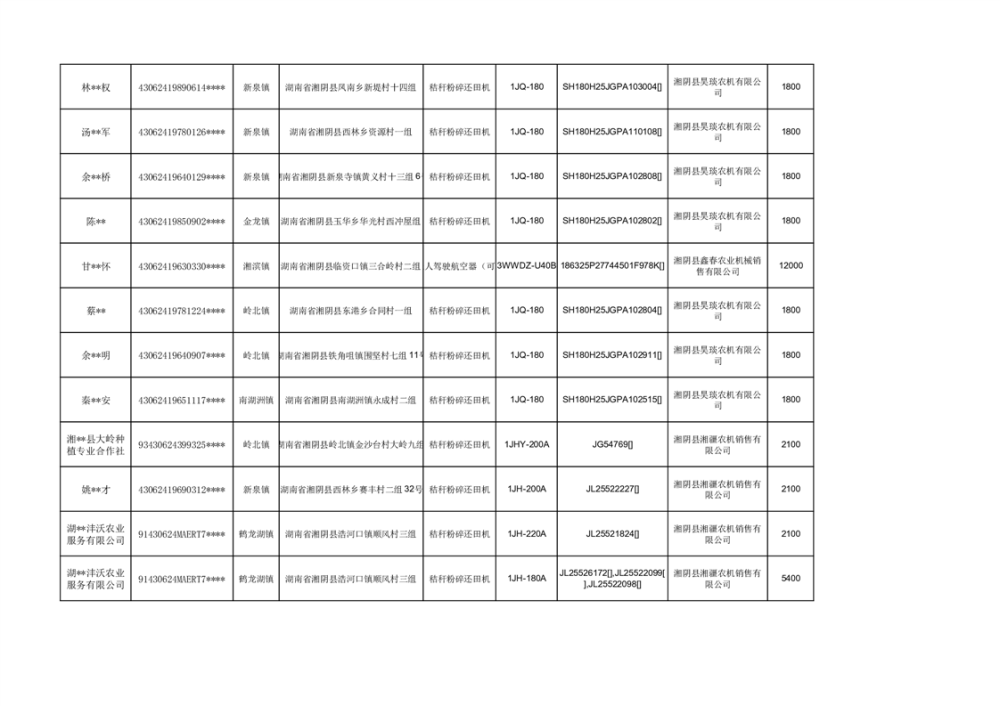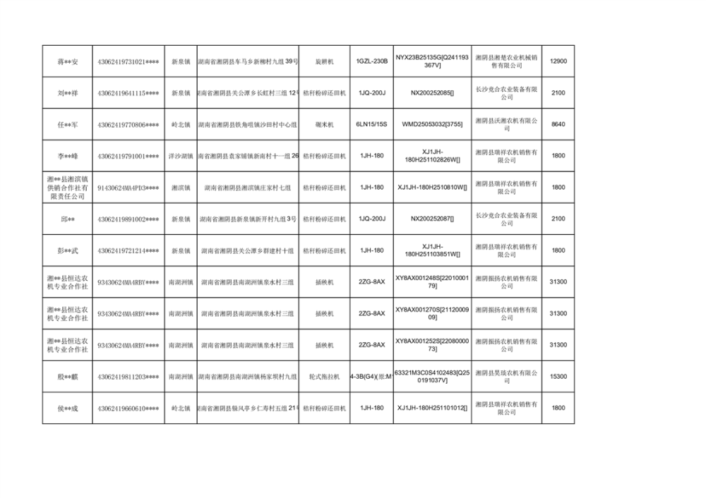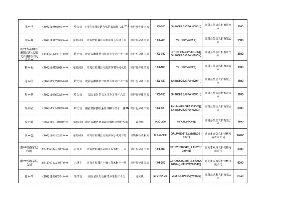 关于2026年湘阴县农机购置补贴资金公示(第二批)