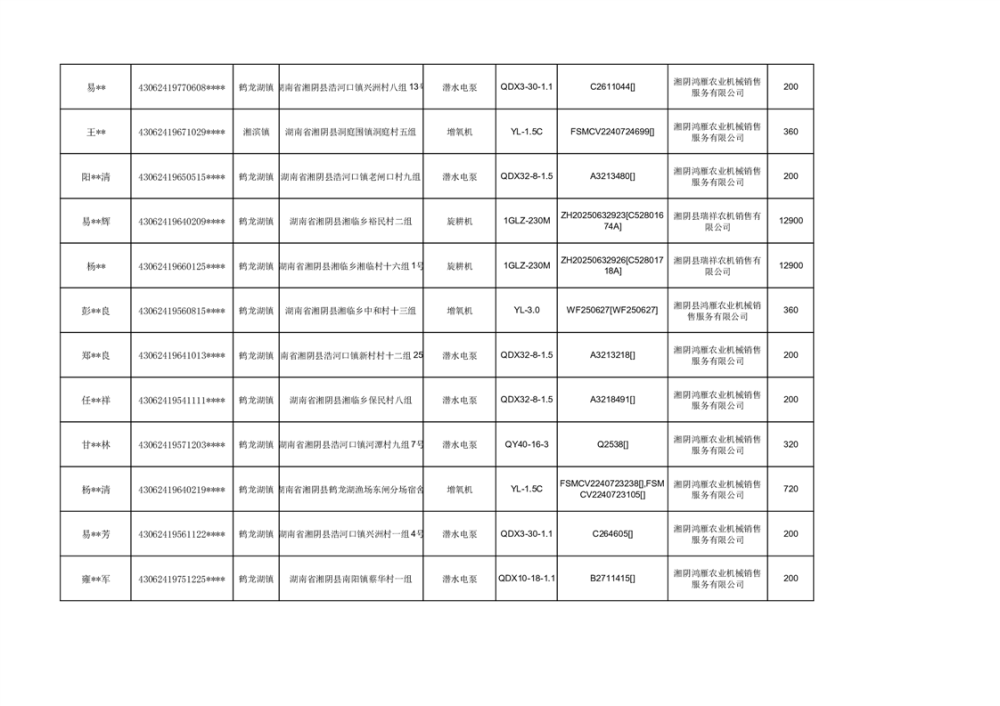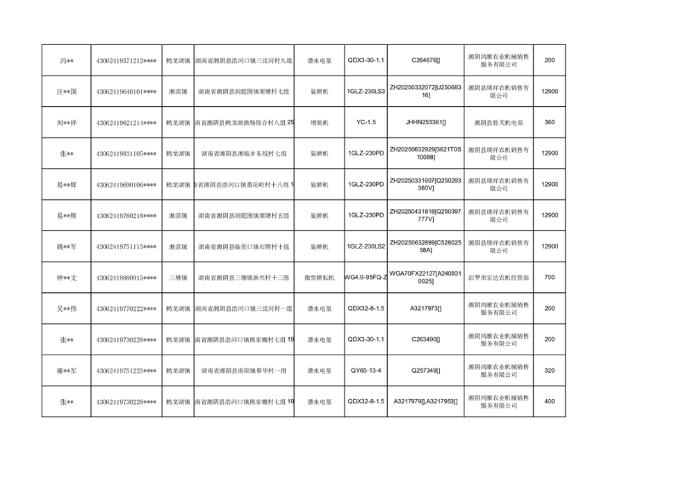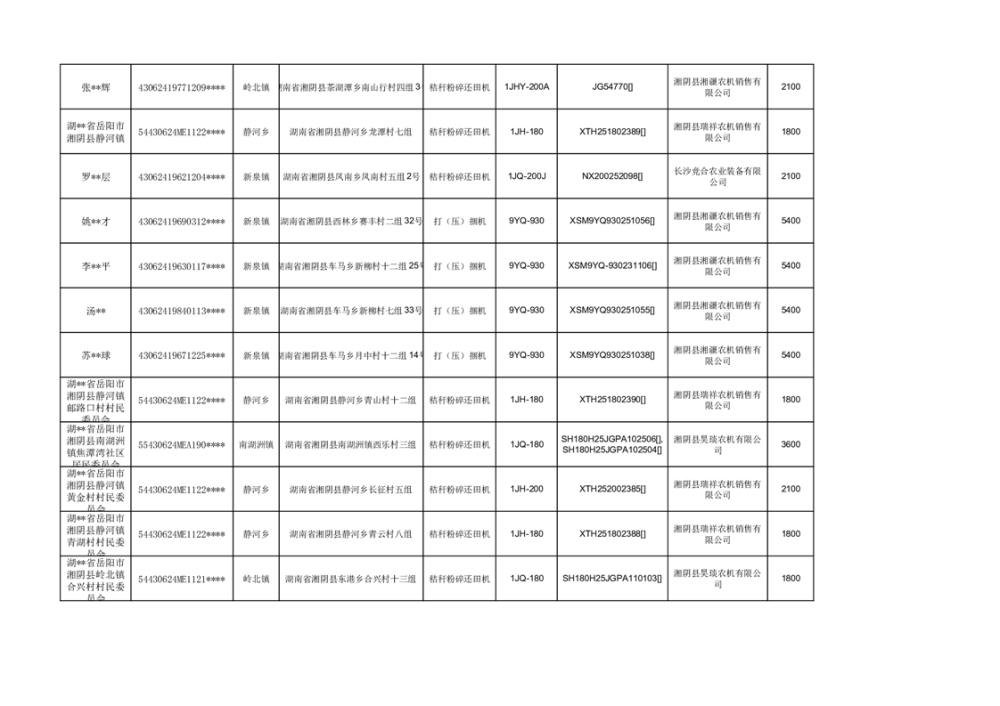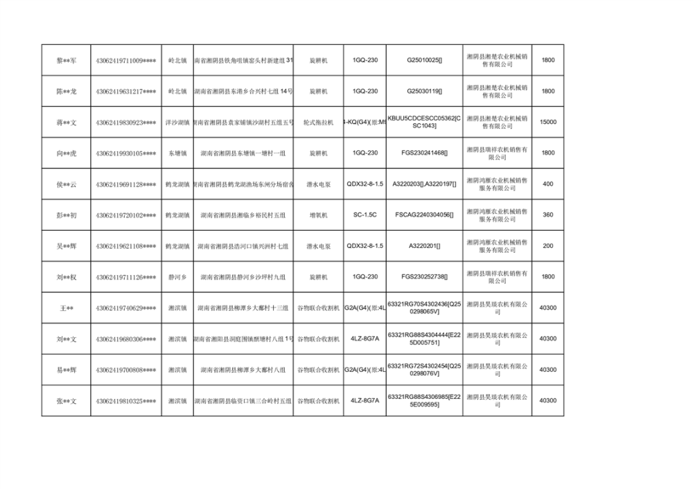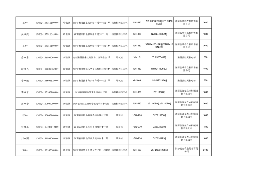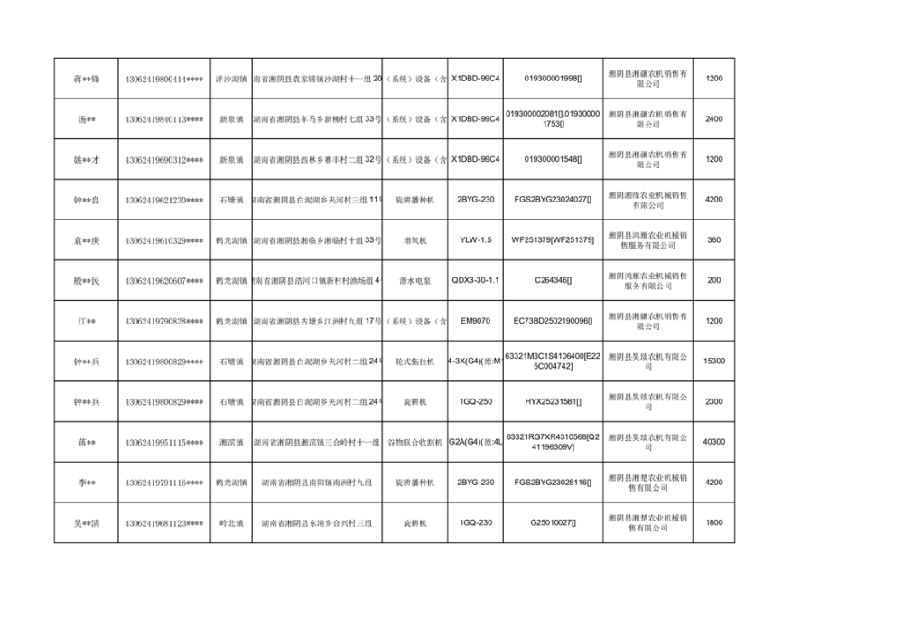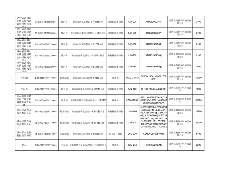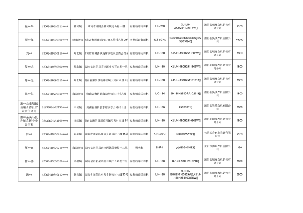 关于2026年湘阴县农机购置补贴资金公示(第二批)