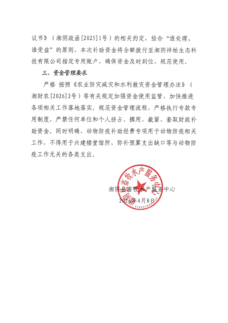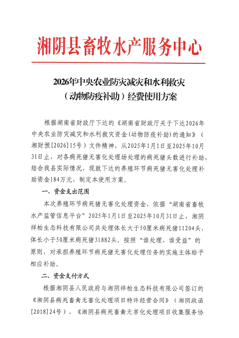 2026年中央农业防灾减灾和水利救灾(动物防疫补助)经费使用方案