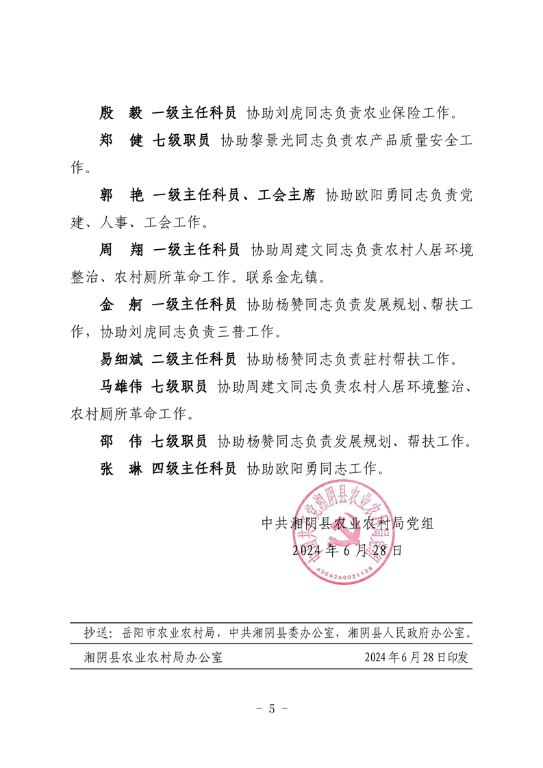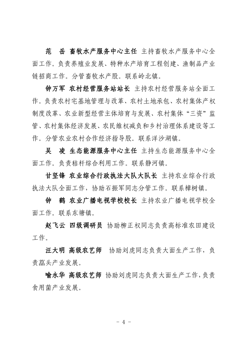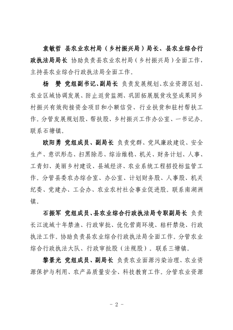 关于调整湘阴县农业农村局(乡村振兴局)负责干部分工的通知