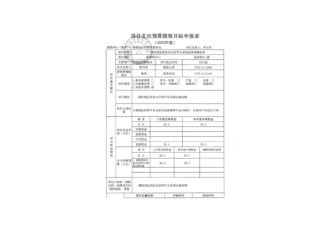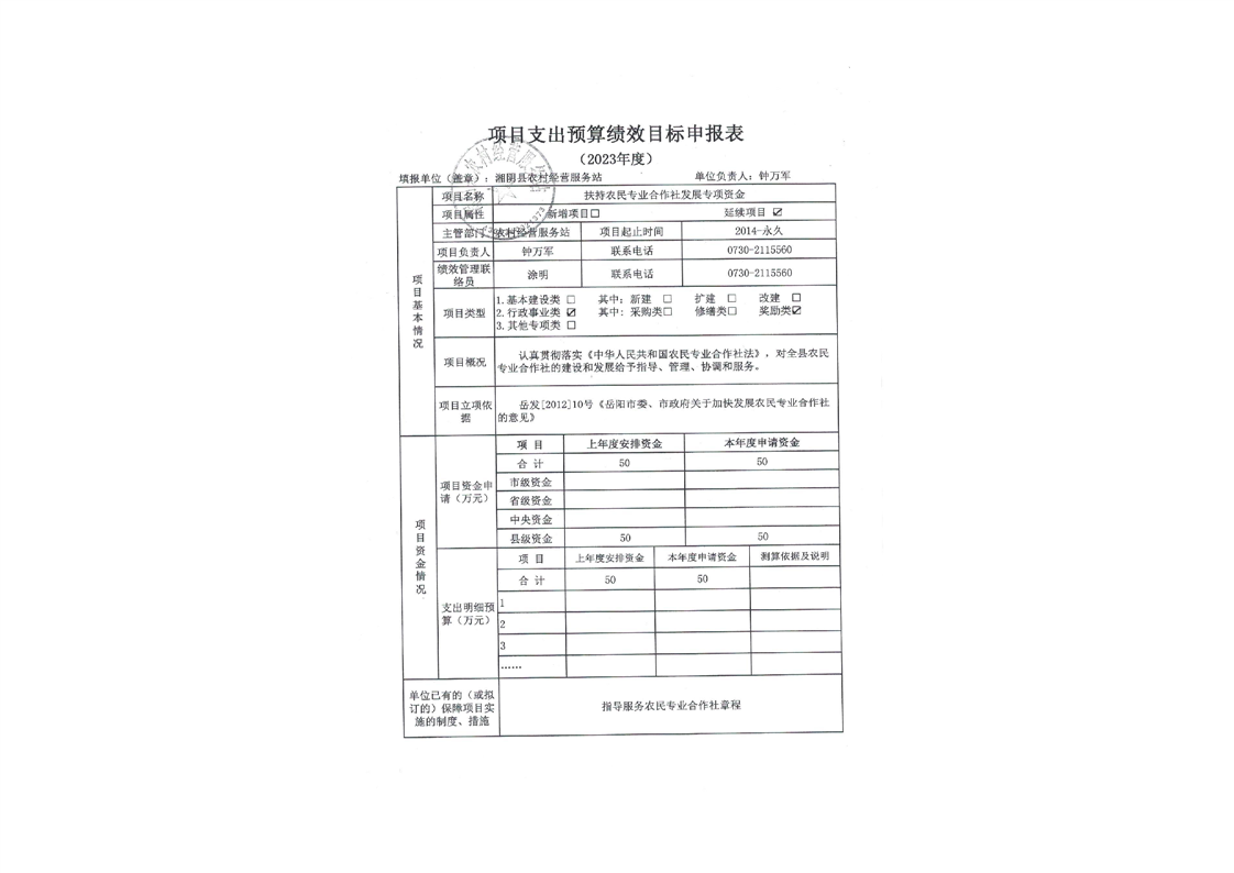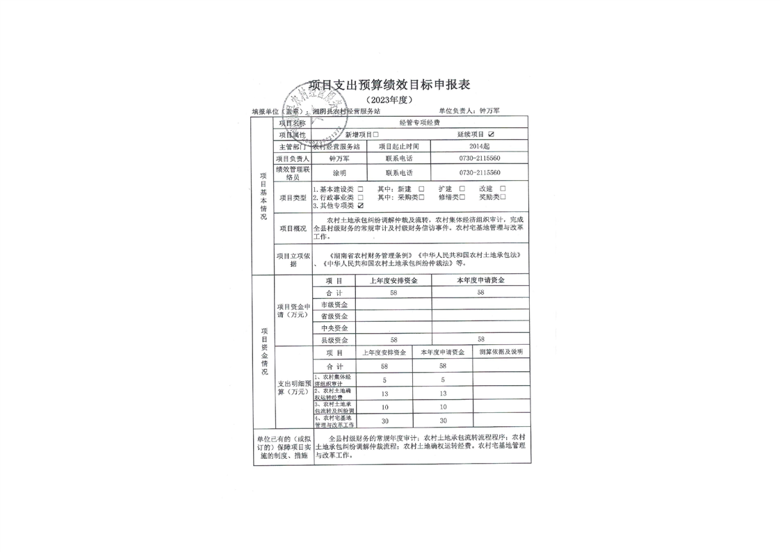 2023年度-湘阴县农村经营服务站-整体和项目支出预算绩效目标申报表