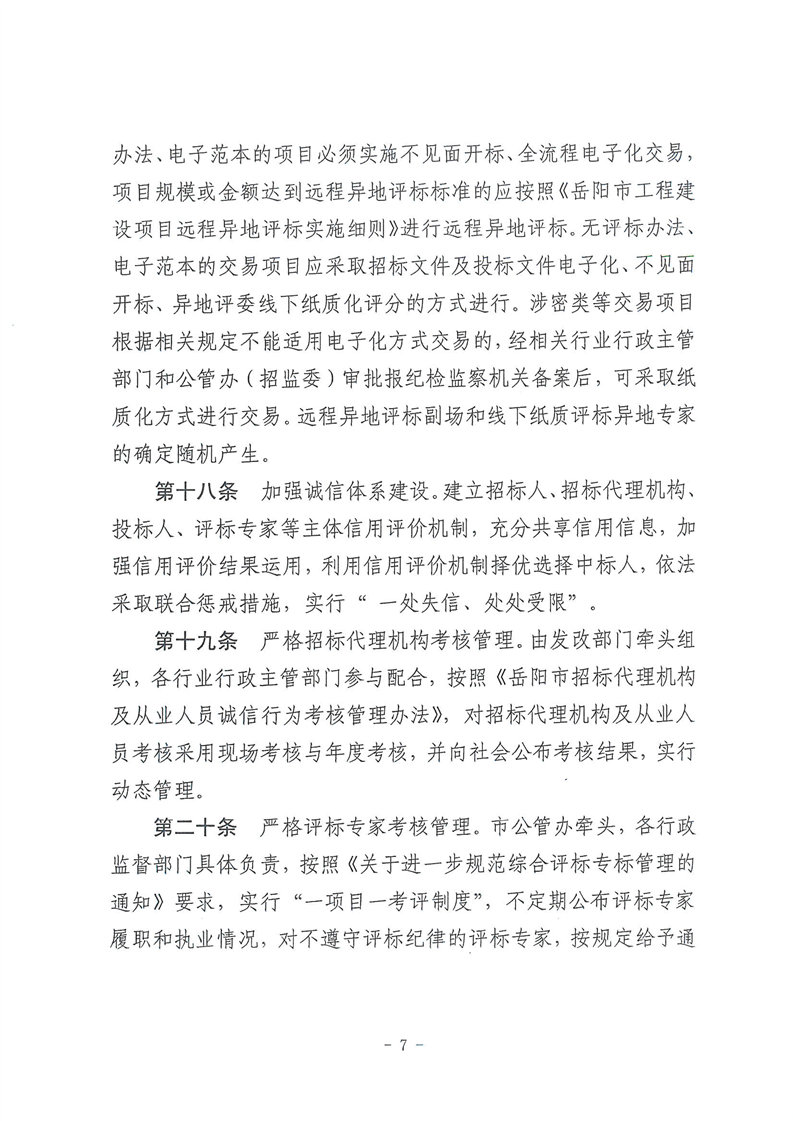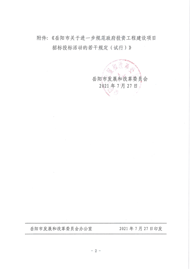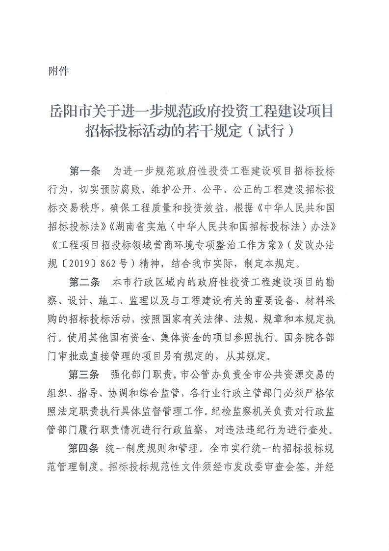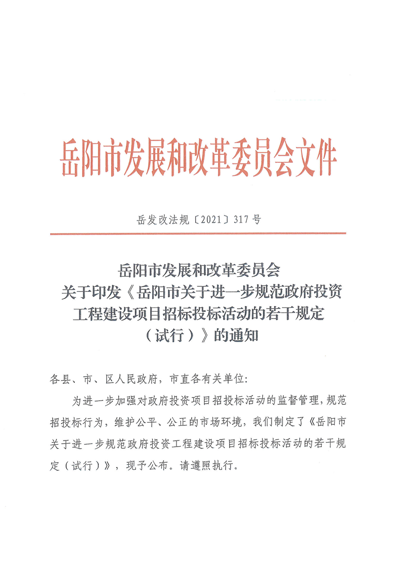关于印发《岳阳市关于进一步规范政府投资工程建设项目招投标活动的若干规定(试行)》的通知