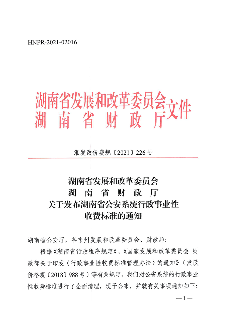 湖南省发展和改革委员会湖南省财政厅关于发布湖南省公安系统行政事业性收费标准的通知