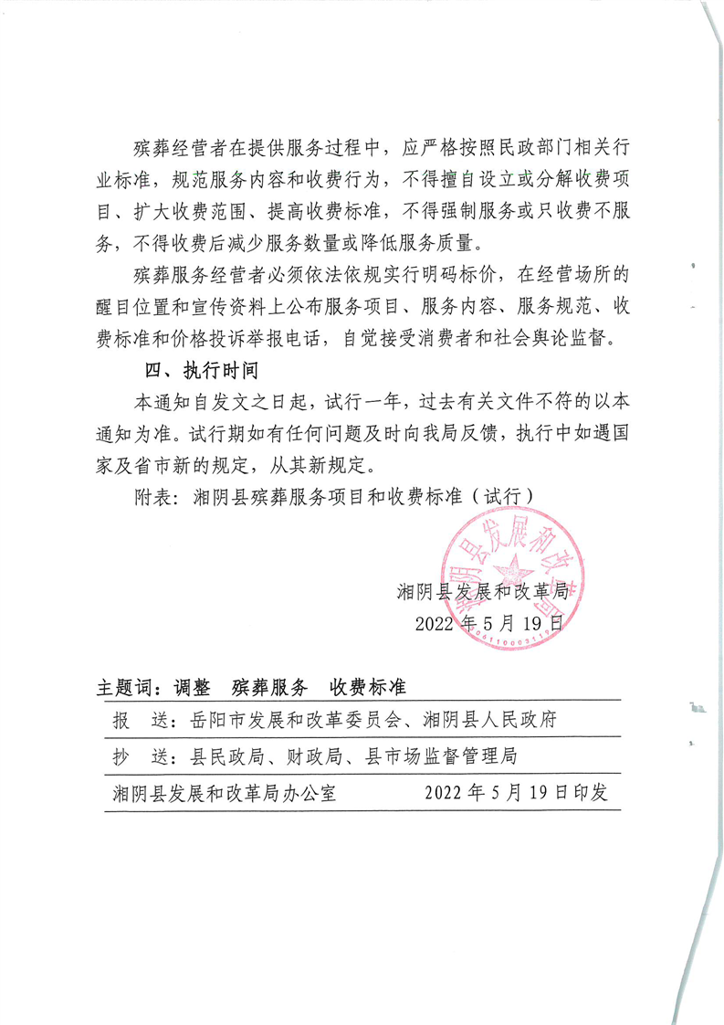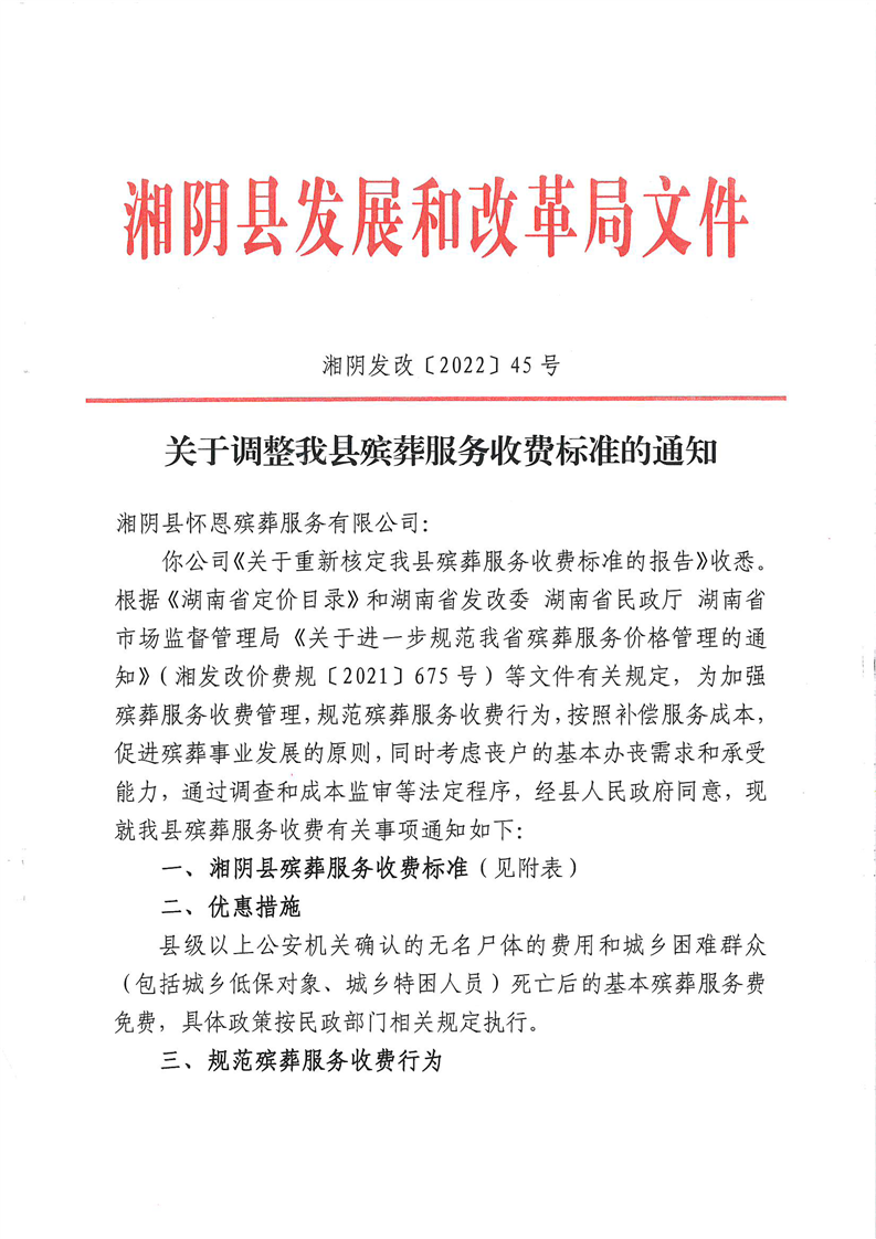 湘阴发改〔2022〕45号 关于调整我县殡葬服务收费标准的通知