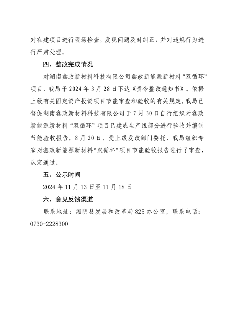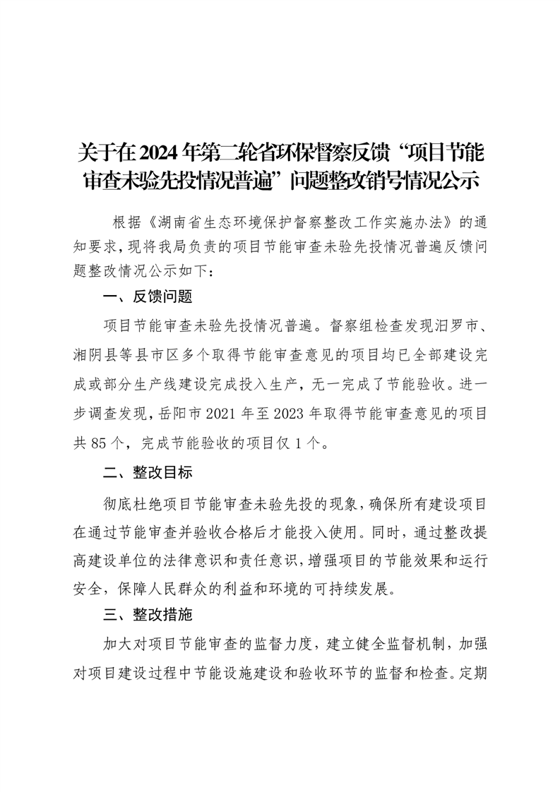 关于在2024年第二轮省环保督察反馈“项目节能审查未验先投情况普遍”问题整改销号情况公示