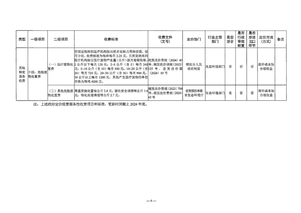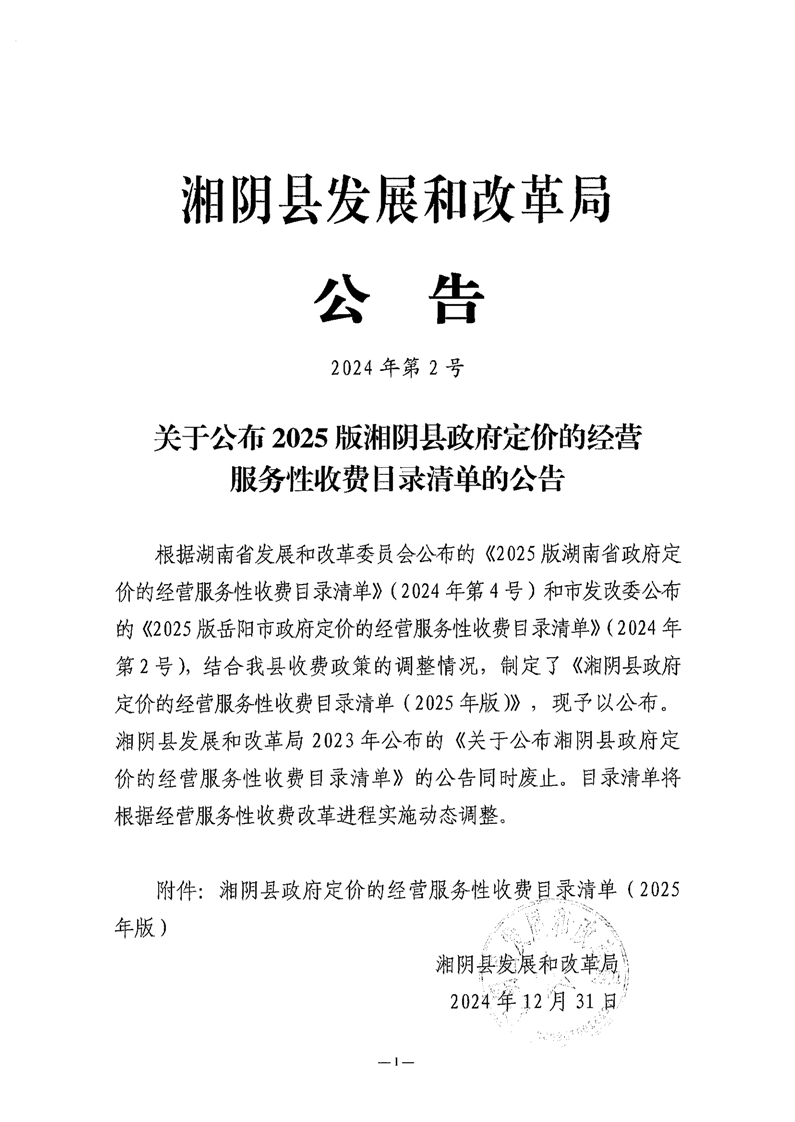 关于公布2025版湘阴县政府定价的经营服务性收费目录清单的公告