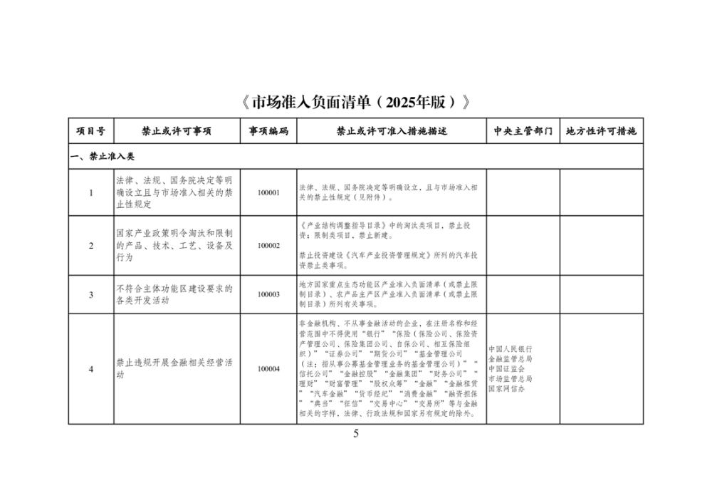 《市场准入负面清单(2025年版)》已经党中央、国务院批准,自即日起印发实施,请结合实际认真贯彻落实。2022年3月12日发布的《市场准入负面清单(2022年版)》(发改体改规〔2022〕397号)同时废止