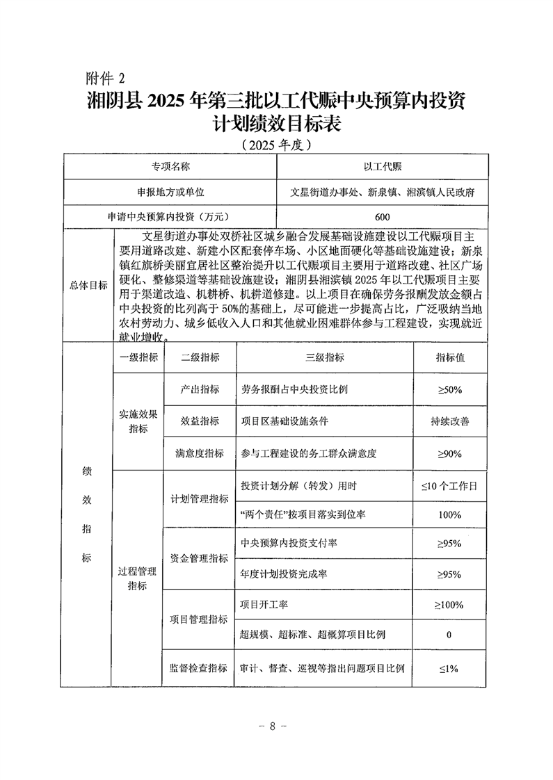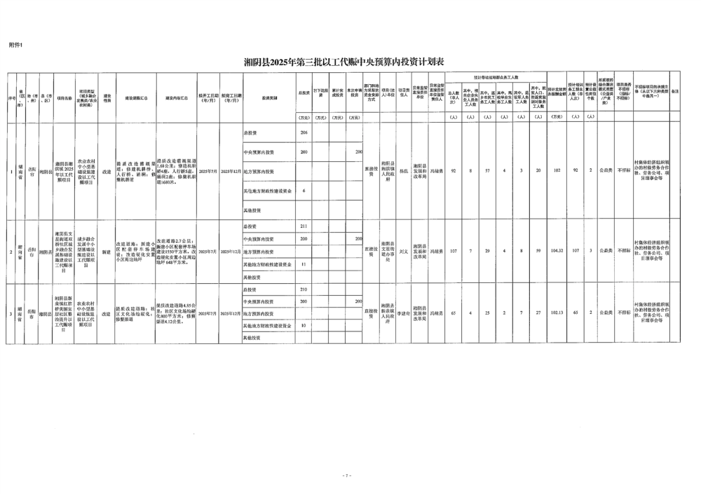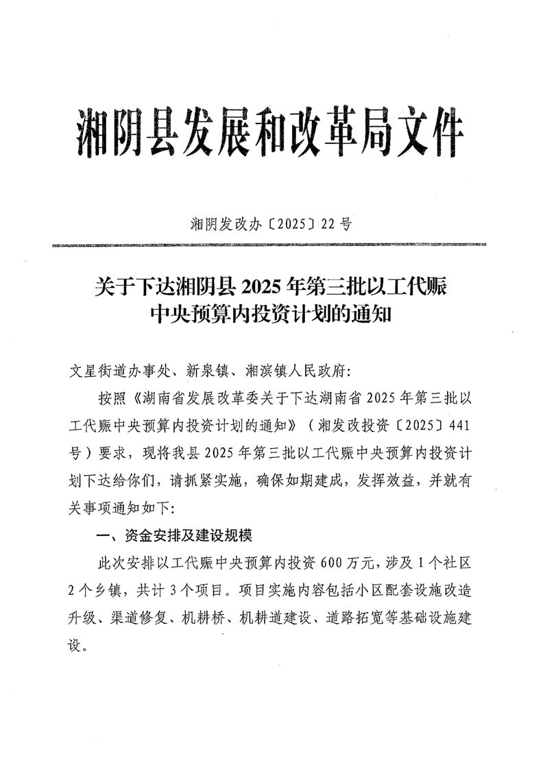 关于下达湘阴县2025年第三批以工代赈中央预算内投资计划的通知(湘阴发改办〔2025〕22号 )