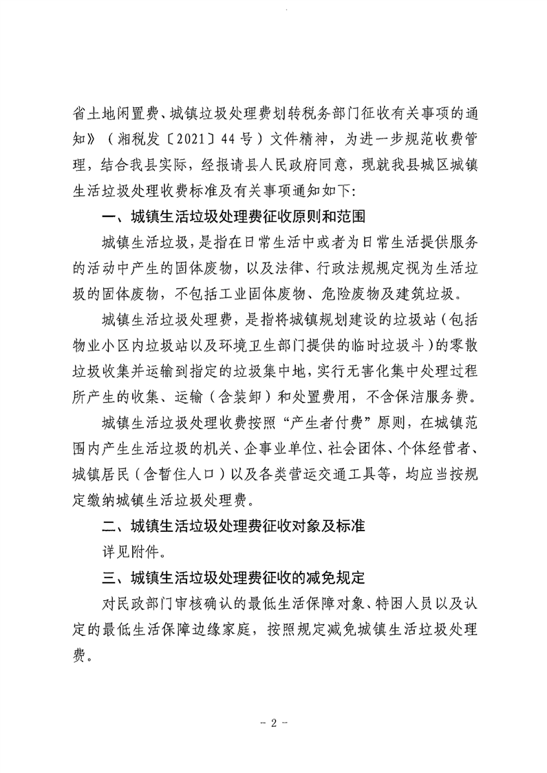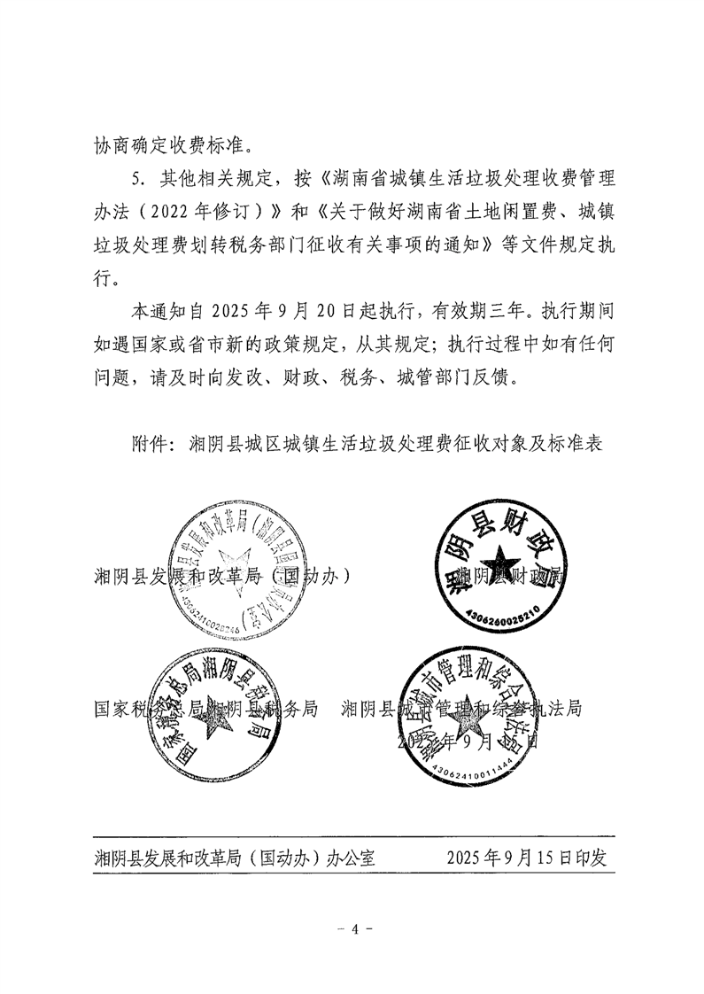 湘阴县发展和改革局 湘阴县财政局 国家税务总局湘阴县税务局 湘阴县城市管理和综合执法局 关于我县城区城镇生活垃圾处理收费标准及有关事项的通知(湘阴发改价〔2025〕10号)