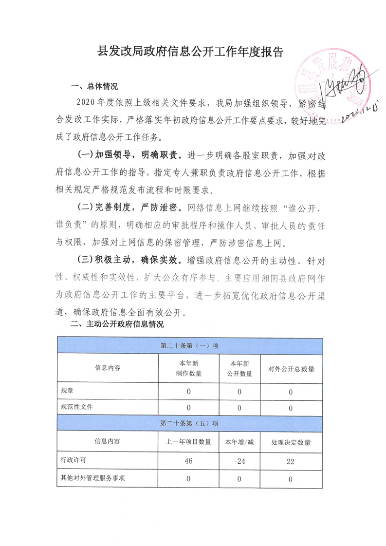 湘阴县发展和改革局2020年政府信息公开工作年度报告